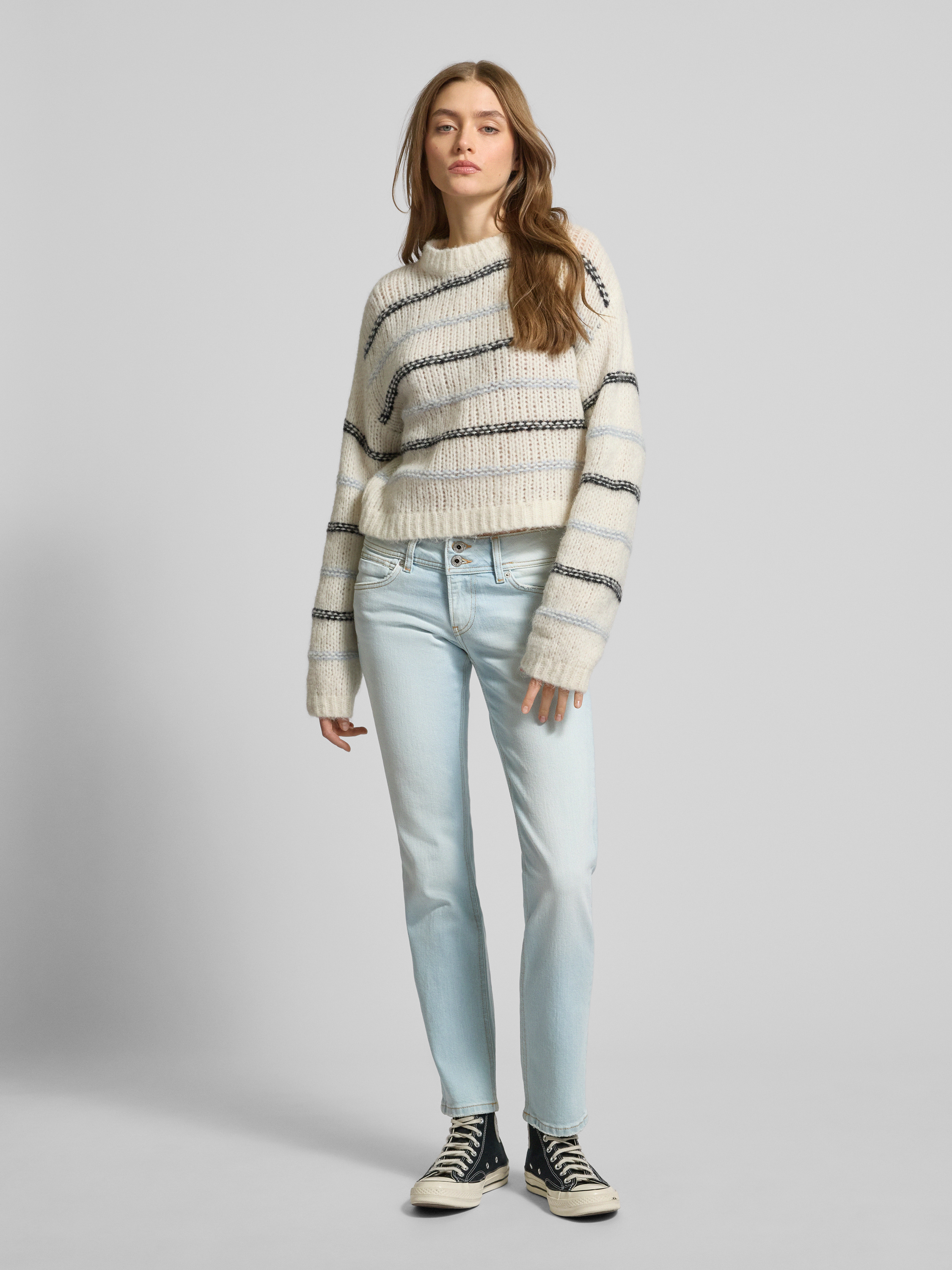 Die Straight Fit Jeans mit 5-Pocket-Design von Pepe Jeans setzt auf einen geraden Schnitt, der vielseitige Kombinationsmöglichkeiten eröffnet und Bewegungsfreiheit schafft. Der Baumwoll-Elasthan-Mix sorgt für angenehmen Tragekomfort und eine dezente Flexibilität im Alltag. Durch das klassische Taschenkonzept bleibt alles Wesentliche stets griffbereit.