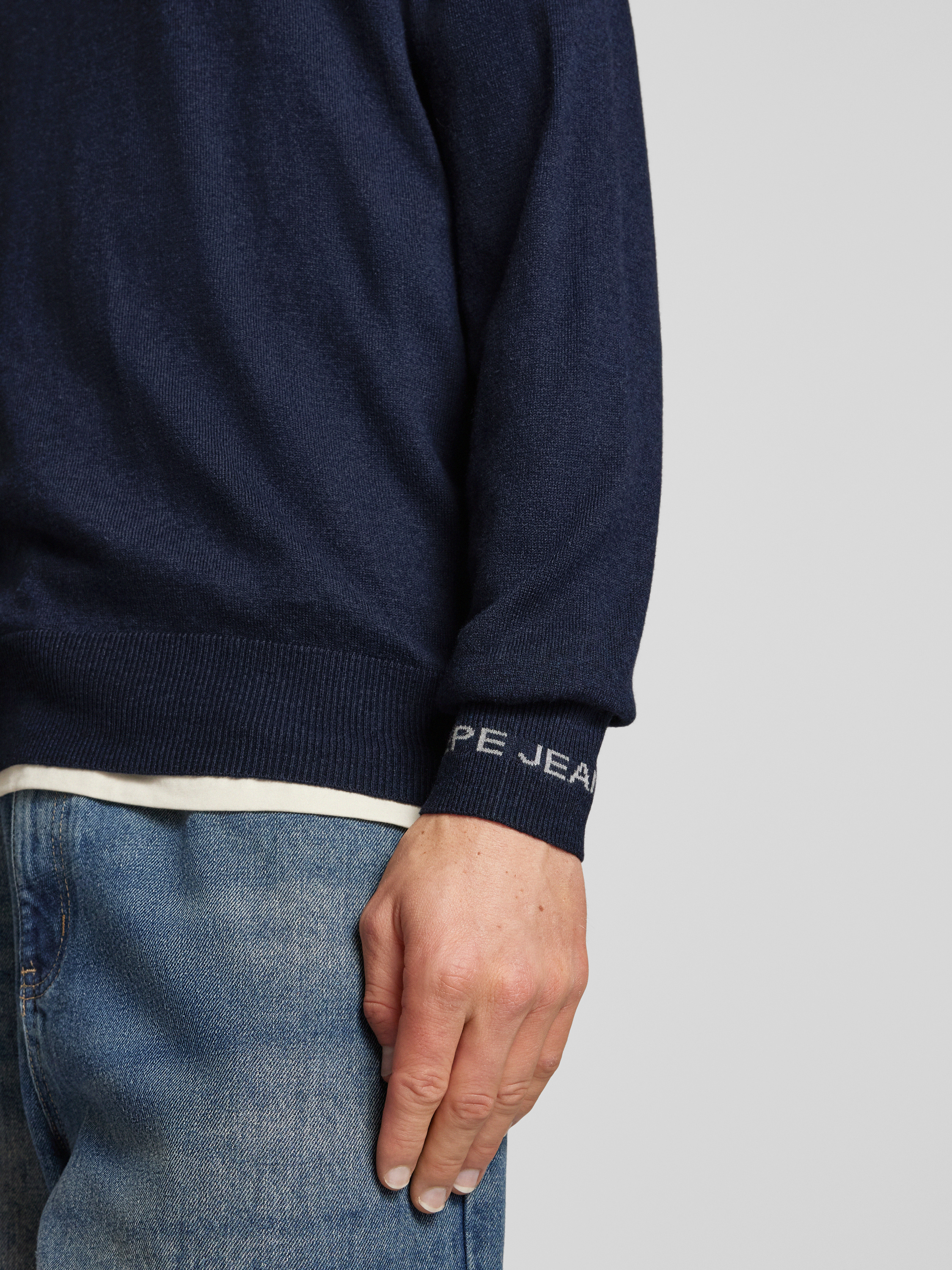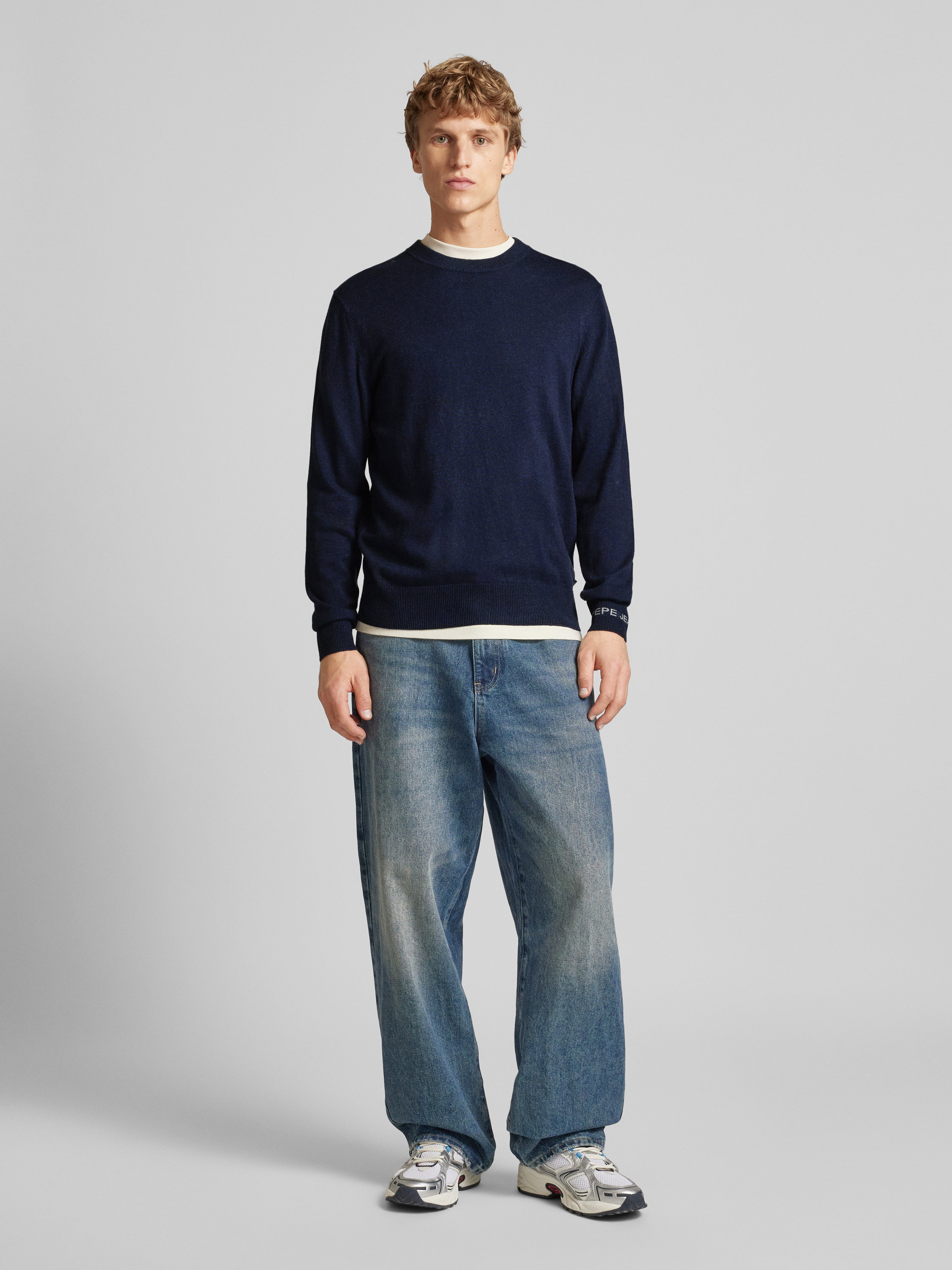 Pepe JeansStrickpullover aus Baumwoll-Woll-Mix mit Kaschmir-Anteil Modell 'Andre' in blau