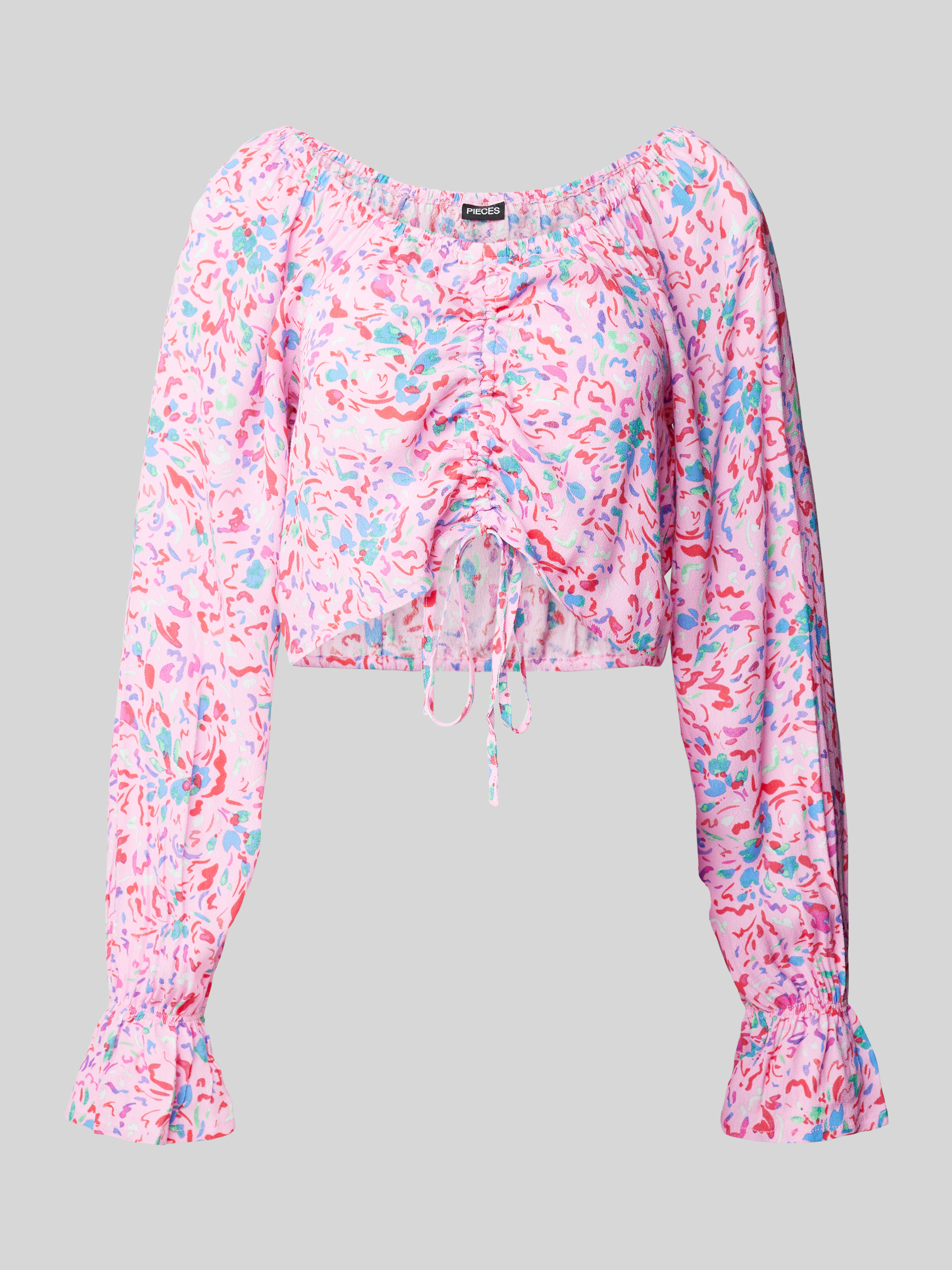PiecesCropped Blusentop mit Allover-Muster in rosa