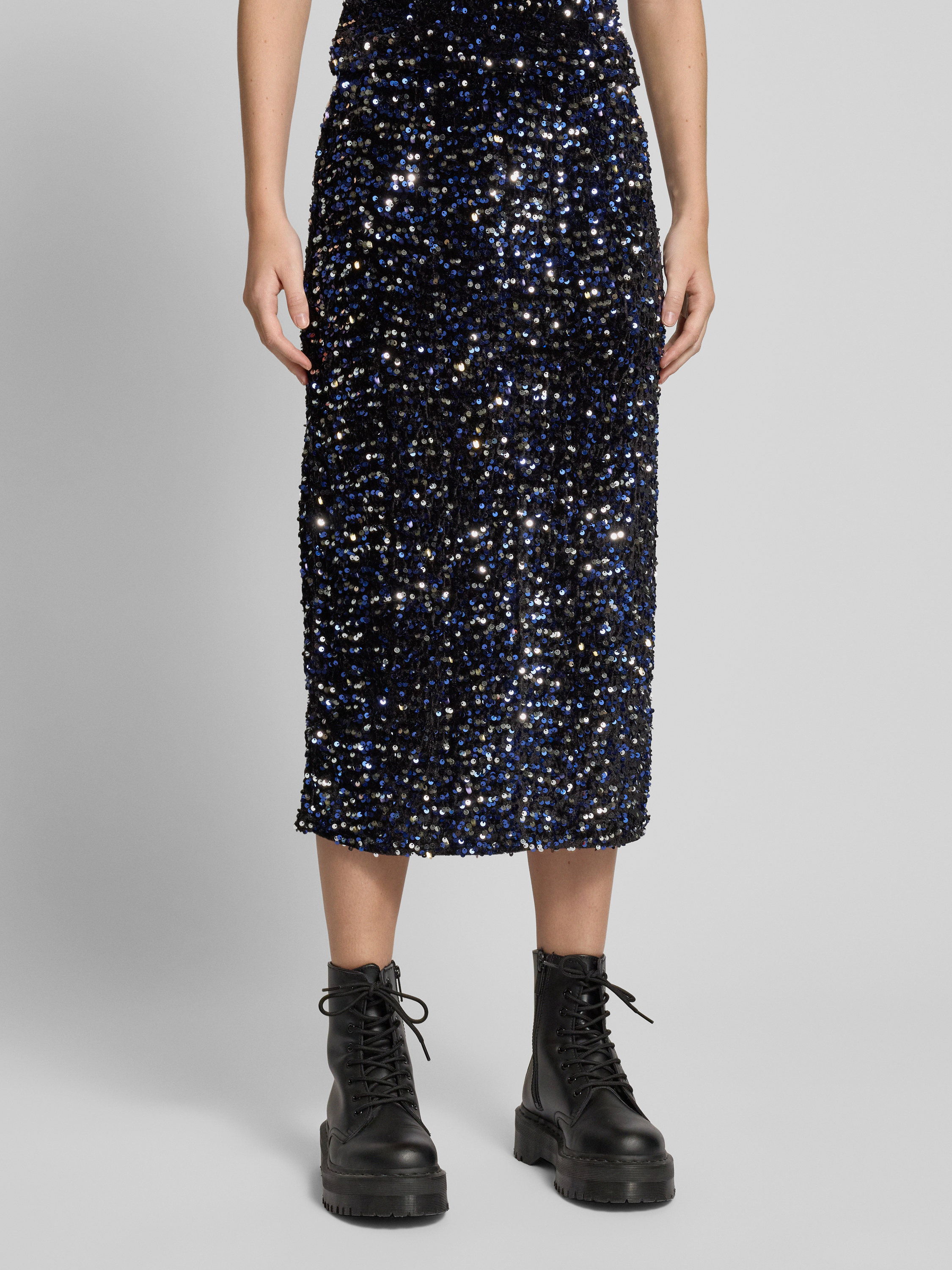 PiecesFigurbetonter Midi-Rock mit Pailletten Modell 'KAM' in black