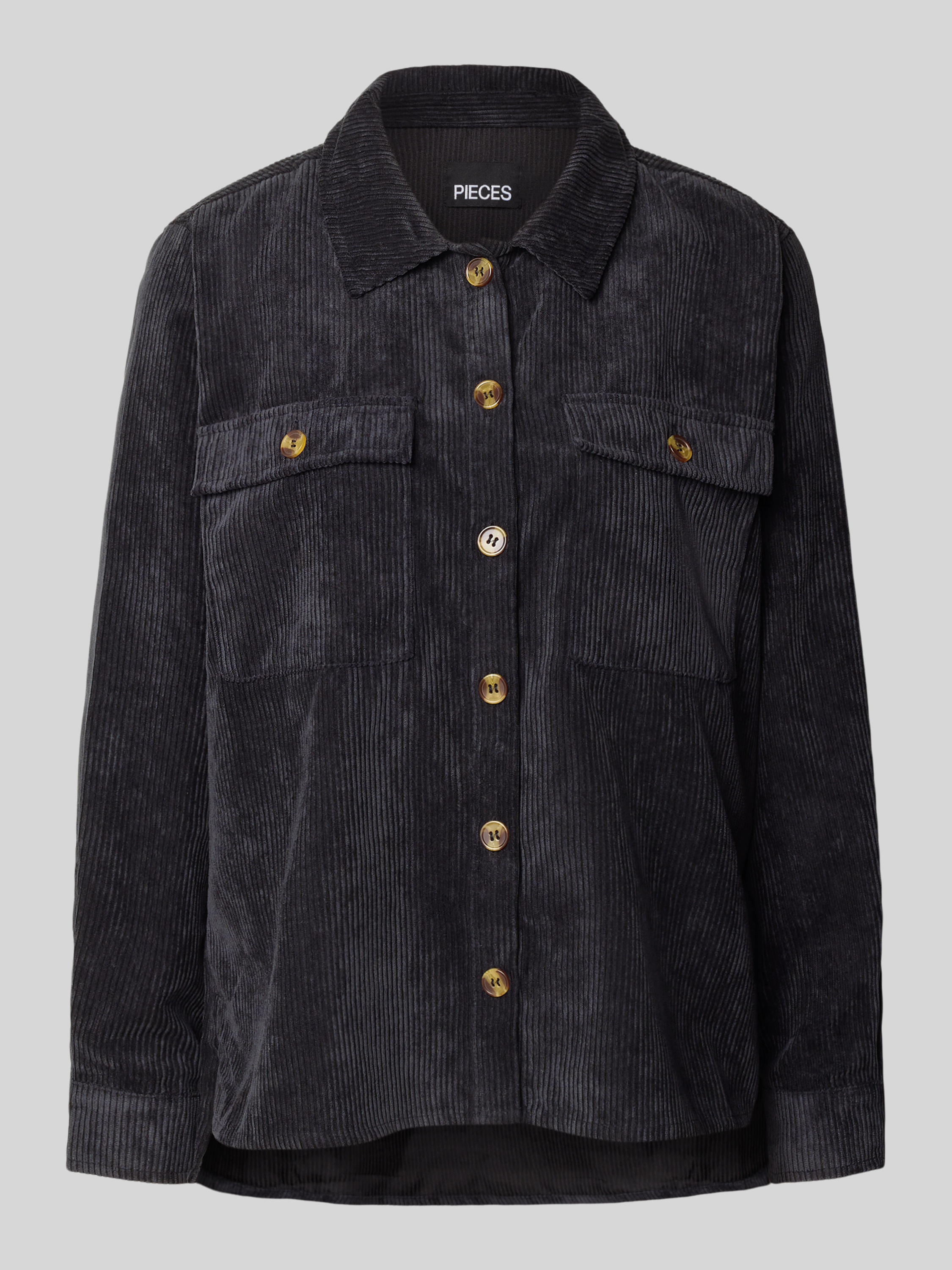 PiecesLoose Fit Hemdbluse in Cord Optik Modell 'EFFI' in black
