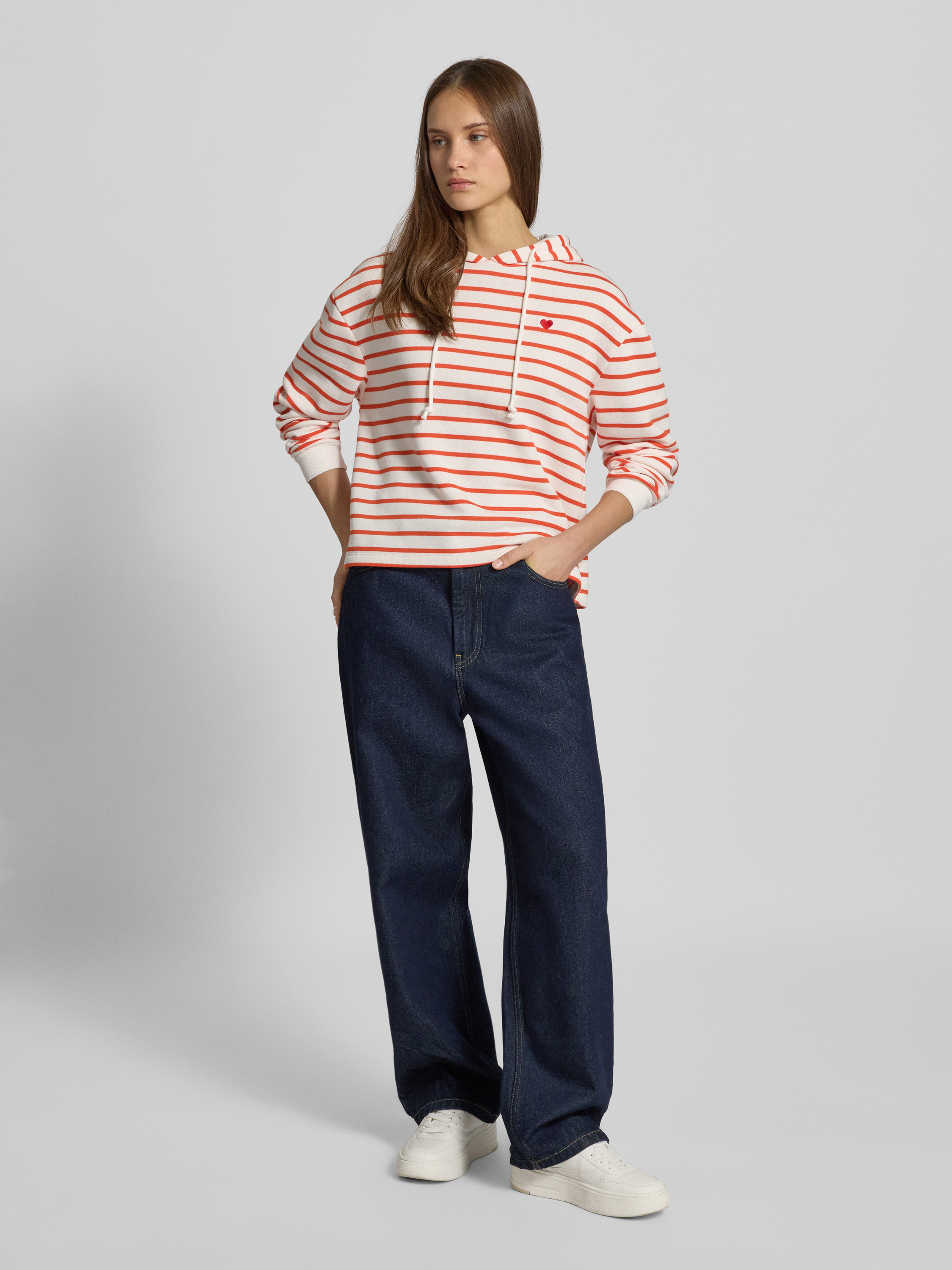 Der Damen Hoodie von Pieces, Modell Chilli, fällt durch das gestreifte Allover-Muster und das dekorative Motiv-Stitching ins Auge. Der bequeme Loose Fit und die weiche Sweat-Verarbeitung sorgen für angenehmen Tragekomfort, während die Kapuze mit Stehkragen vielseitige Kombinationsmöglichkeiten eröffnet. So lässt sich unkompliziert ein lässiger Look gestalten.