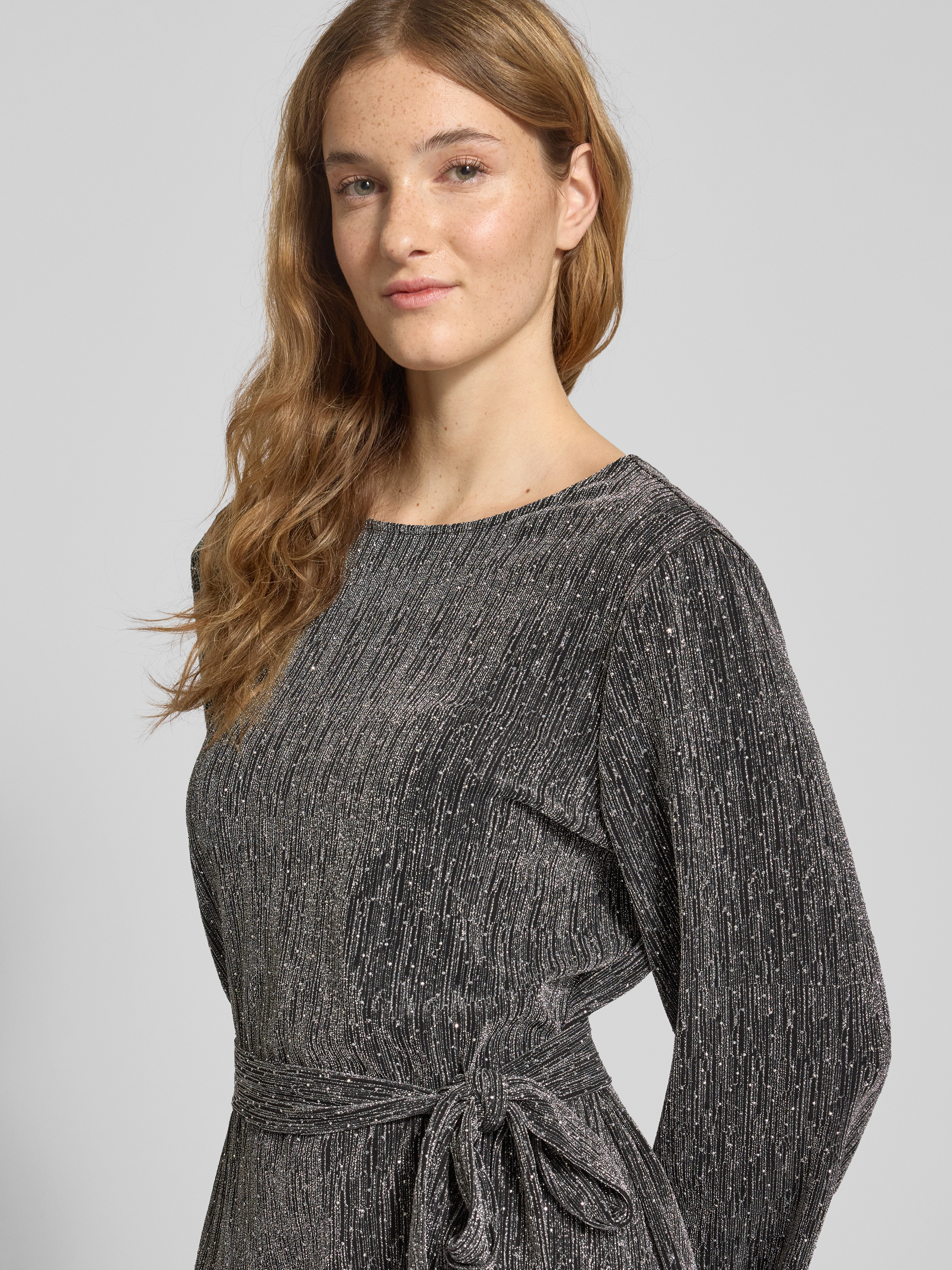 Das Damen Minikleid von Pieces, Modell 'Maeve', fällt durch seine glitzernde Optik und den lockeren Loose Fit angenehm auf. Der U-Boot-Ausschnitt, lange Ärmel und ein tiefer Rückenausschnitt sorgen für eine moderne Silhouette, während Strasssteine und Effektgarn spannende Akzente setzen. Durch die Mini-Länge und den Taillengürtel entsteht ein vielseitiger Look, der Bewegungsfreiheit mit stilvollem Auftreten verbindet.