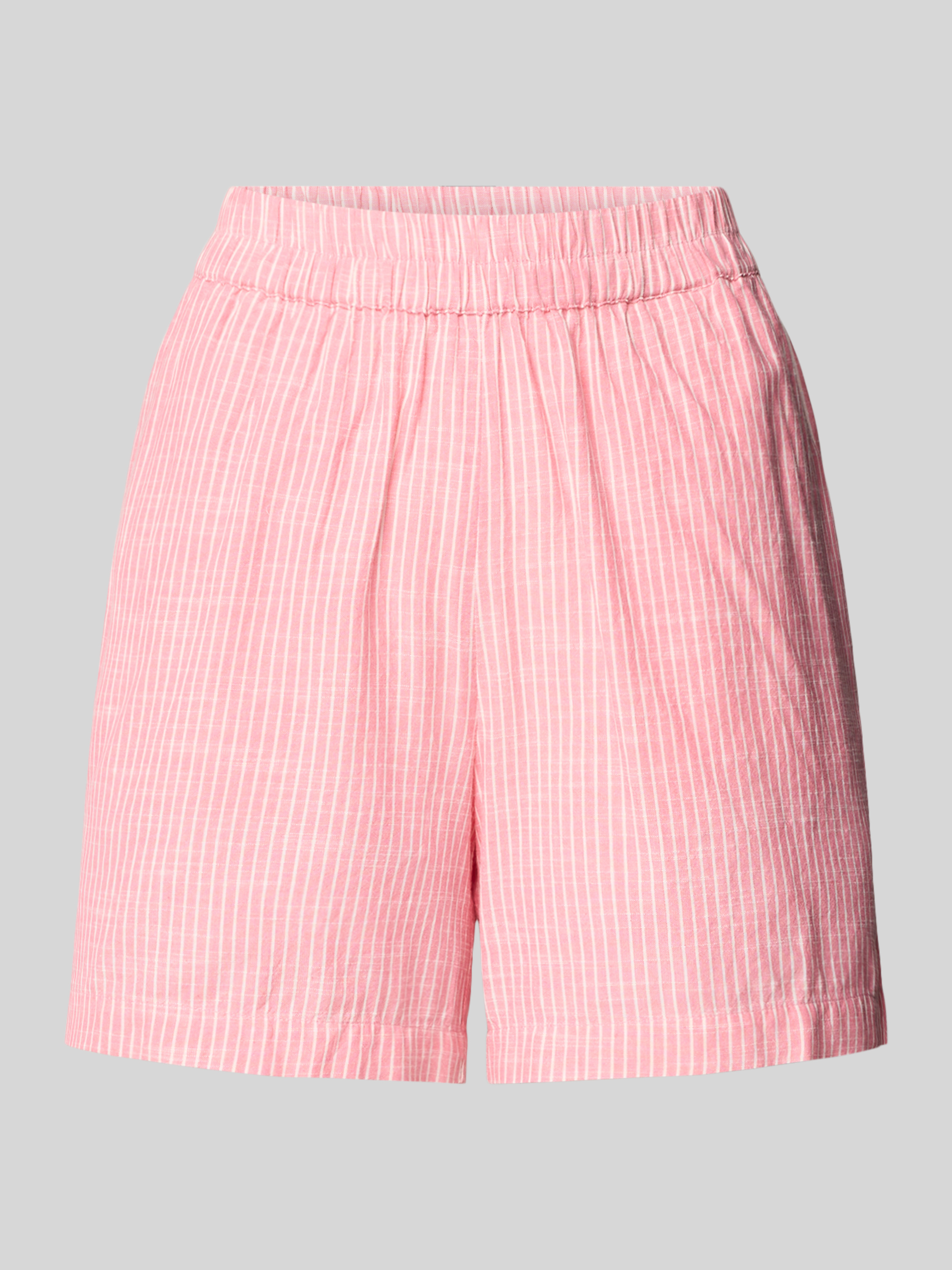 Die Loose Fit Shorts aus dem Modell 'Apia' von Pieces überzeugen durch ihren entspannten Schnitt und das leichte Baumwoll-Leinen-Material, das für ein angenehmes Tragegefühl sorgt. Das gestreifte Allover-Muster verleiht der Shorts einen lässigen Look. Ideal für warme Tage.