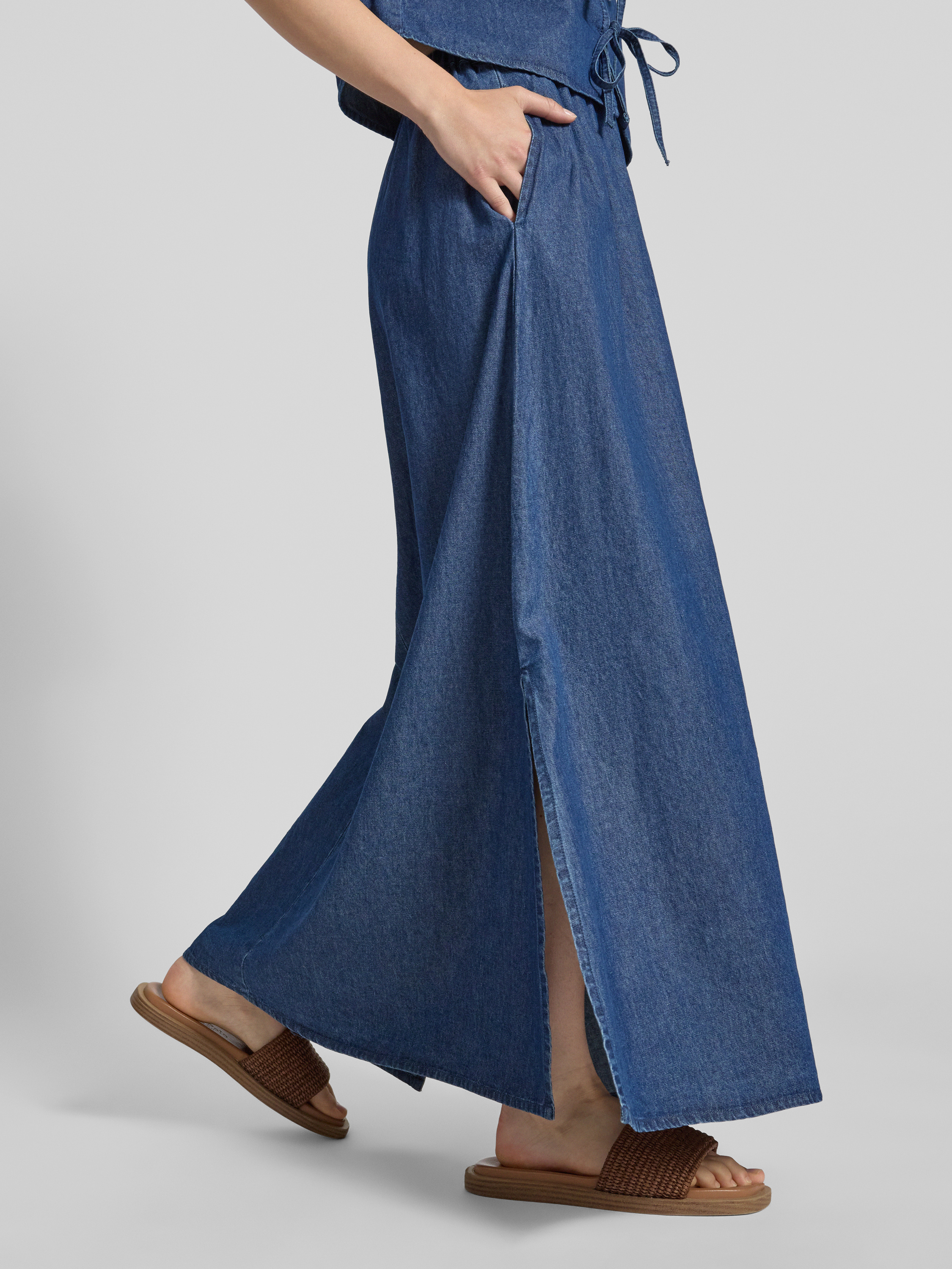 Der Maxi-Rock von Pieces, Modell 'Tenim', vereint eine ausgestellte Passform mit einem eleganten Melange-Look. Aus reiner Baumwolle gefertigt, sorgt er für ein angenehmes Tragegefühl. Seitliche Eingrifftaschen und ein Gehschlitz bieten praktische Details und Bewegungsfreiheit.