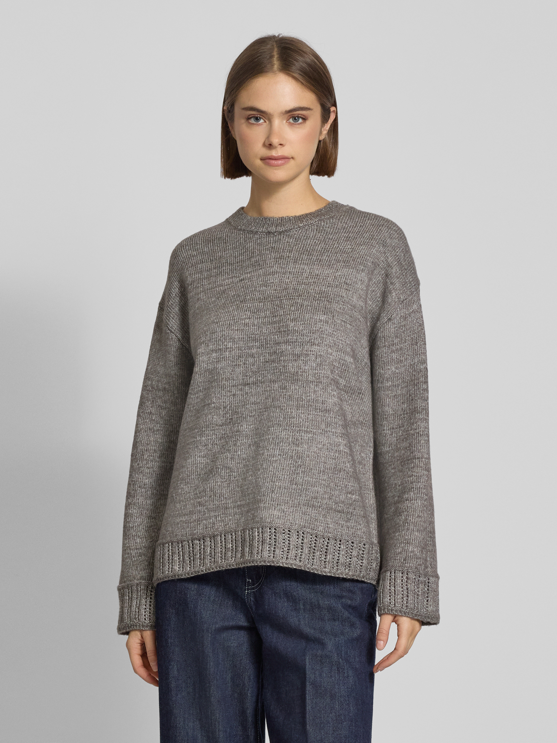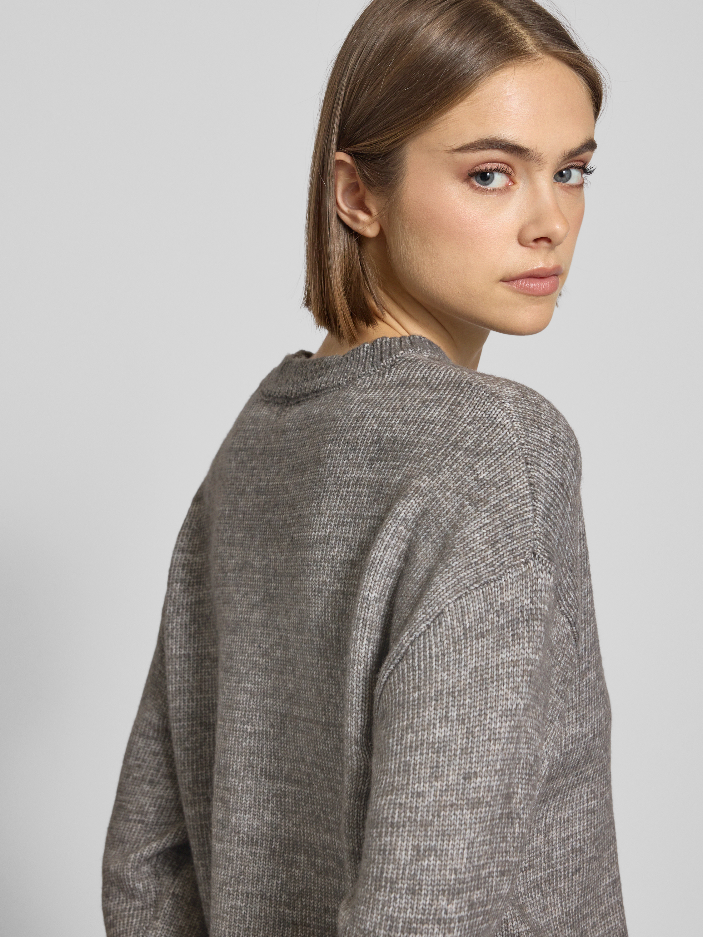 PiecesOversized Strickpullover mit Crew Neck Modell 'ORLY' in mittelgrau