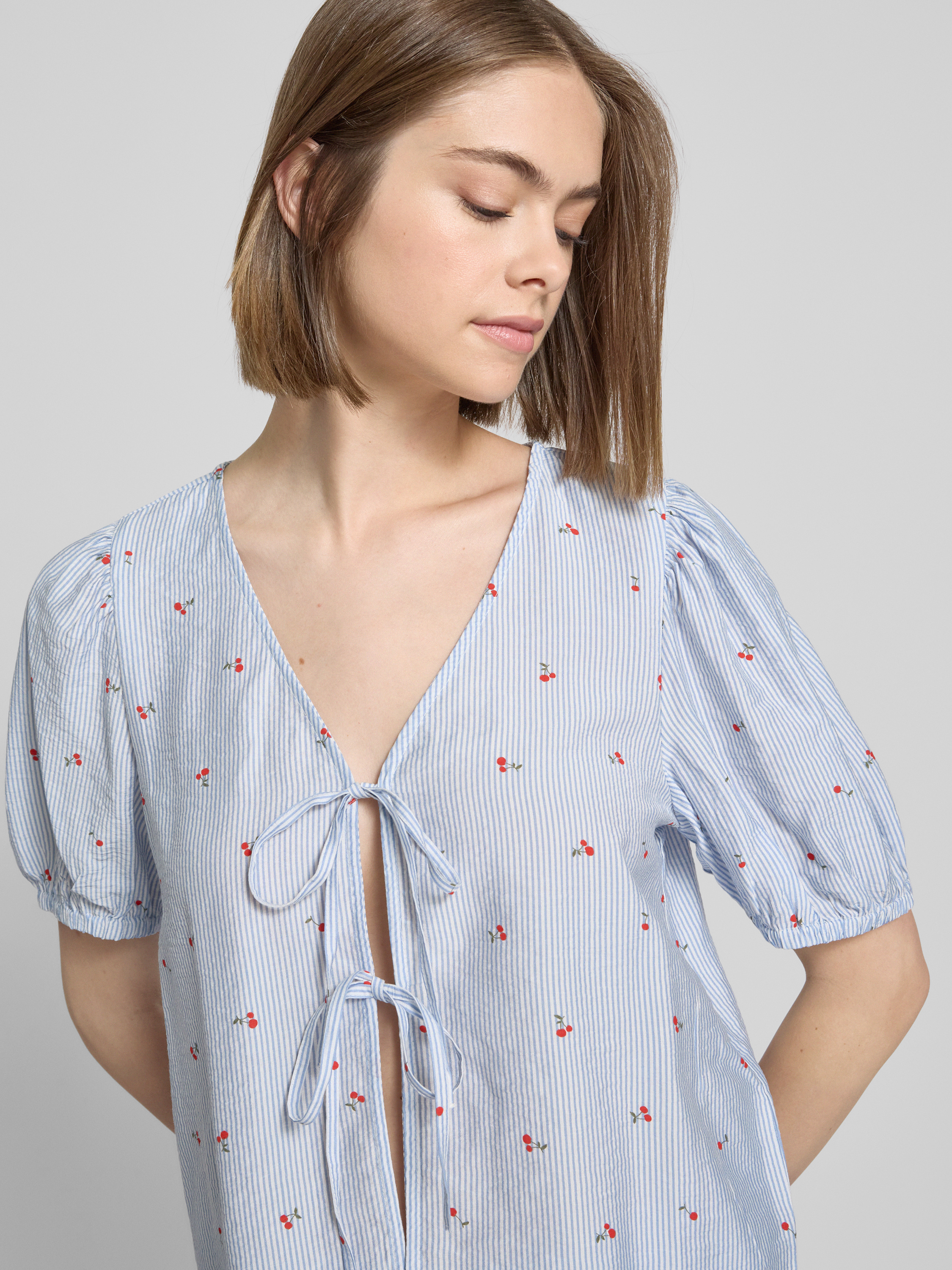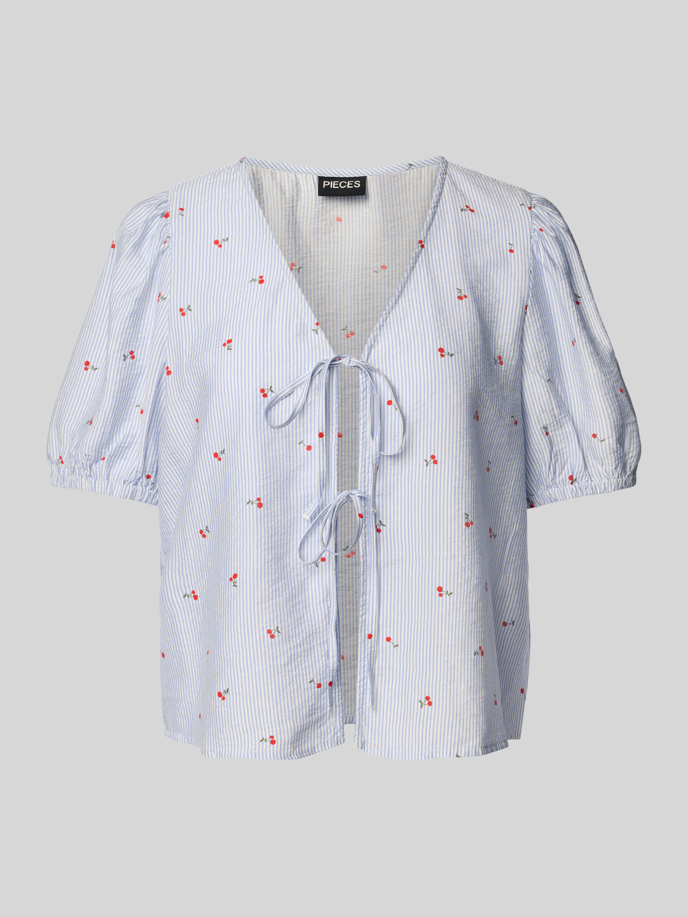 PiecesRegular Fit Blusenshirt mit Schnürverschluss Modell 'FIONNA' in hellblau