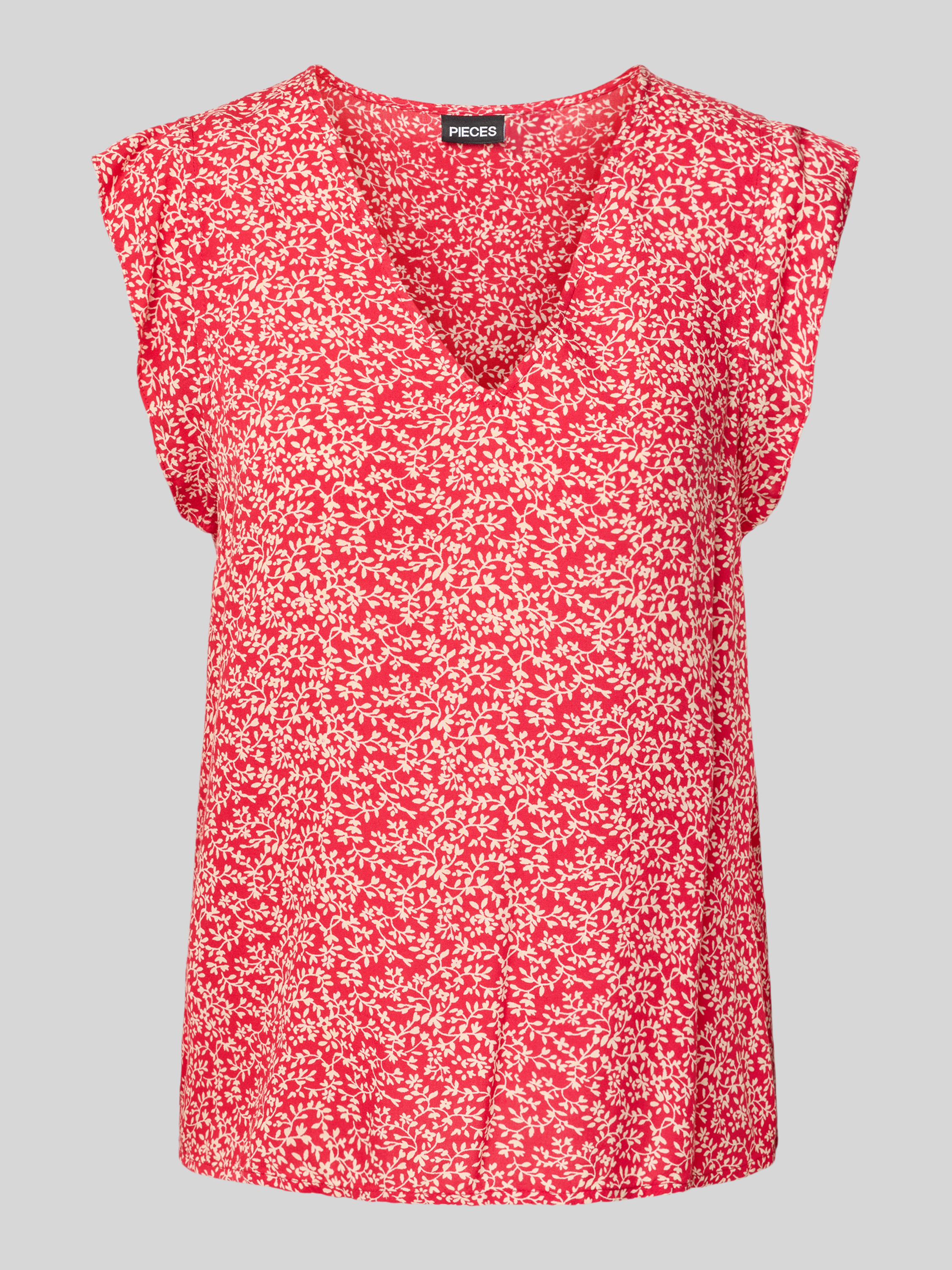 • Pieces Regular Fit Blusentop mit V-Ausschnitt Modell 'NYA' Rot