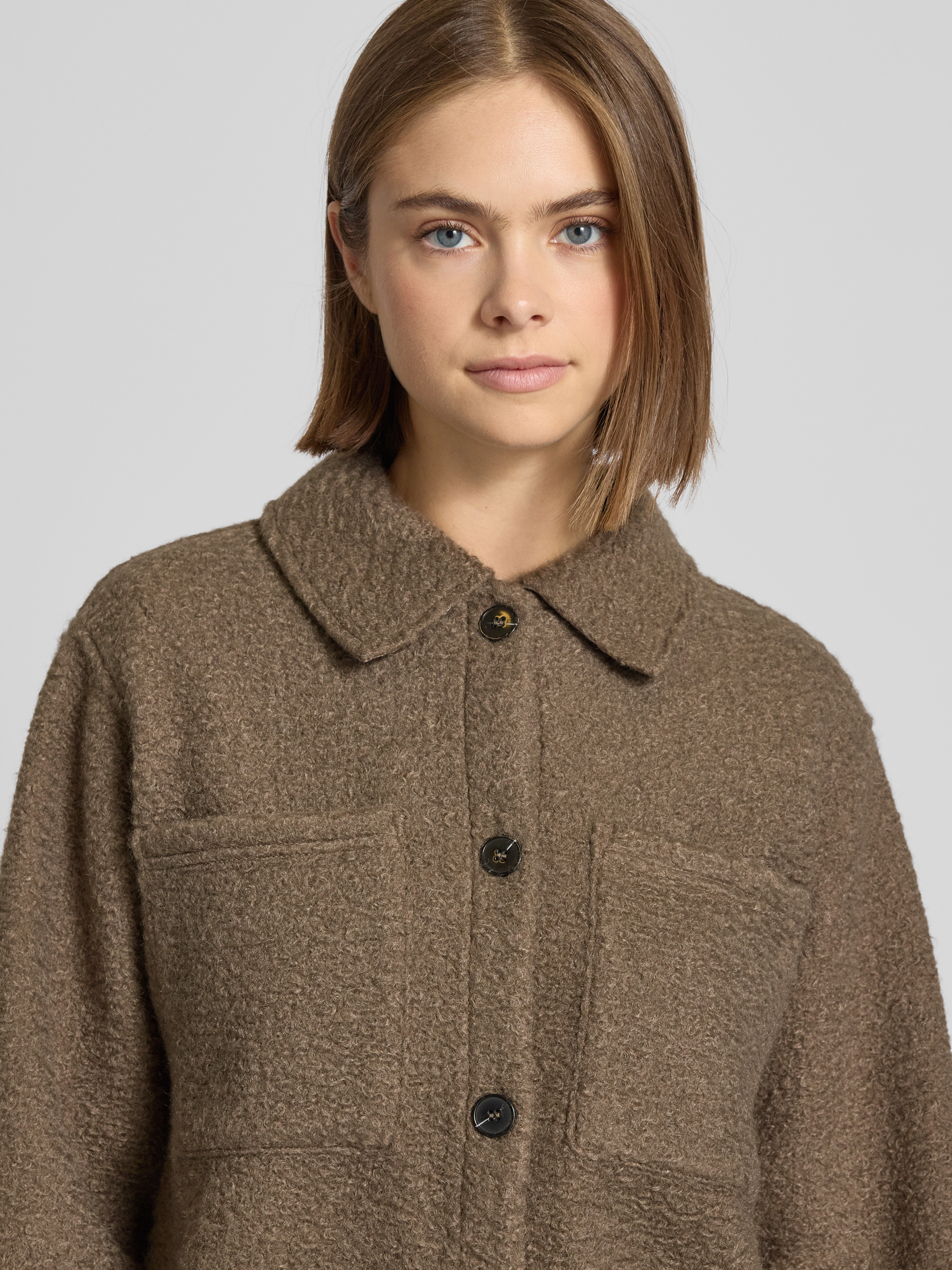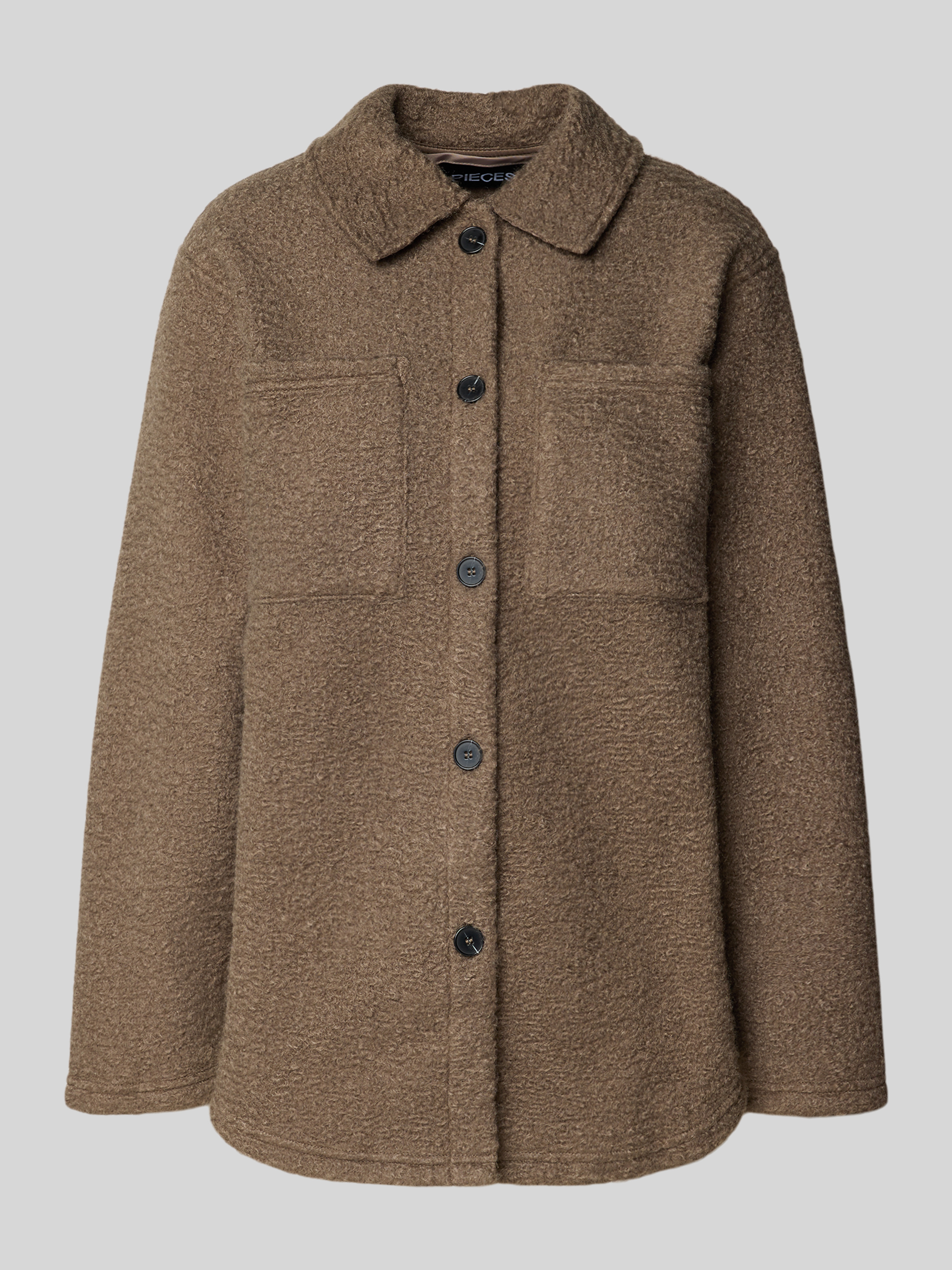 Die Regular Fit Jacke OLINE von Pieces zeigt sich in unifarbener Optik und bringt durch ihren Umlegekragen sowie die beiden Brusttaschen eine lässige Note ins Outfit. Der leicht abgerundete Rumpfabschluss sorgt für eine angenehme Silhouette. Dank der langen Ärmel eignet sich das Modell besonders für wechselhafte Tage.