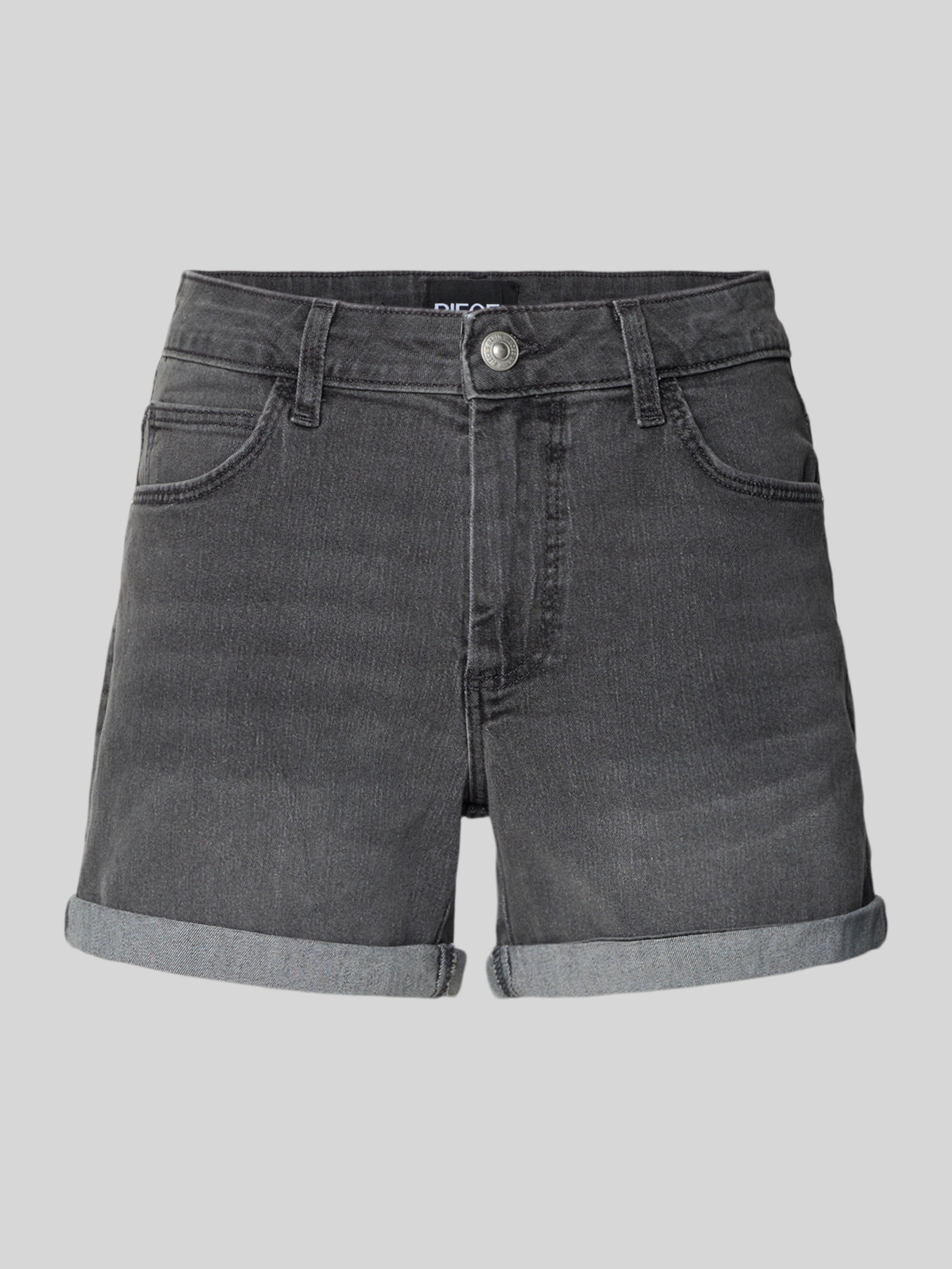 Die Regular Fit Jeansshorts von Pieces, Modell Peggy, sitzen angenehm und bieten durch den mittelhohen Bund eine entspannte Passform. Der Baumwoll-Mix sorgt für ein unkompliziertes Tragegefühl, während der fixierte Umschlag und das 5-Pocket-Design dem Look einen lässigen Akzent verleihen. Durch das melierte Denim-Material entsteht eine vielseitige Optik, die sich unkompliziert kombinieren lässt.