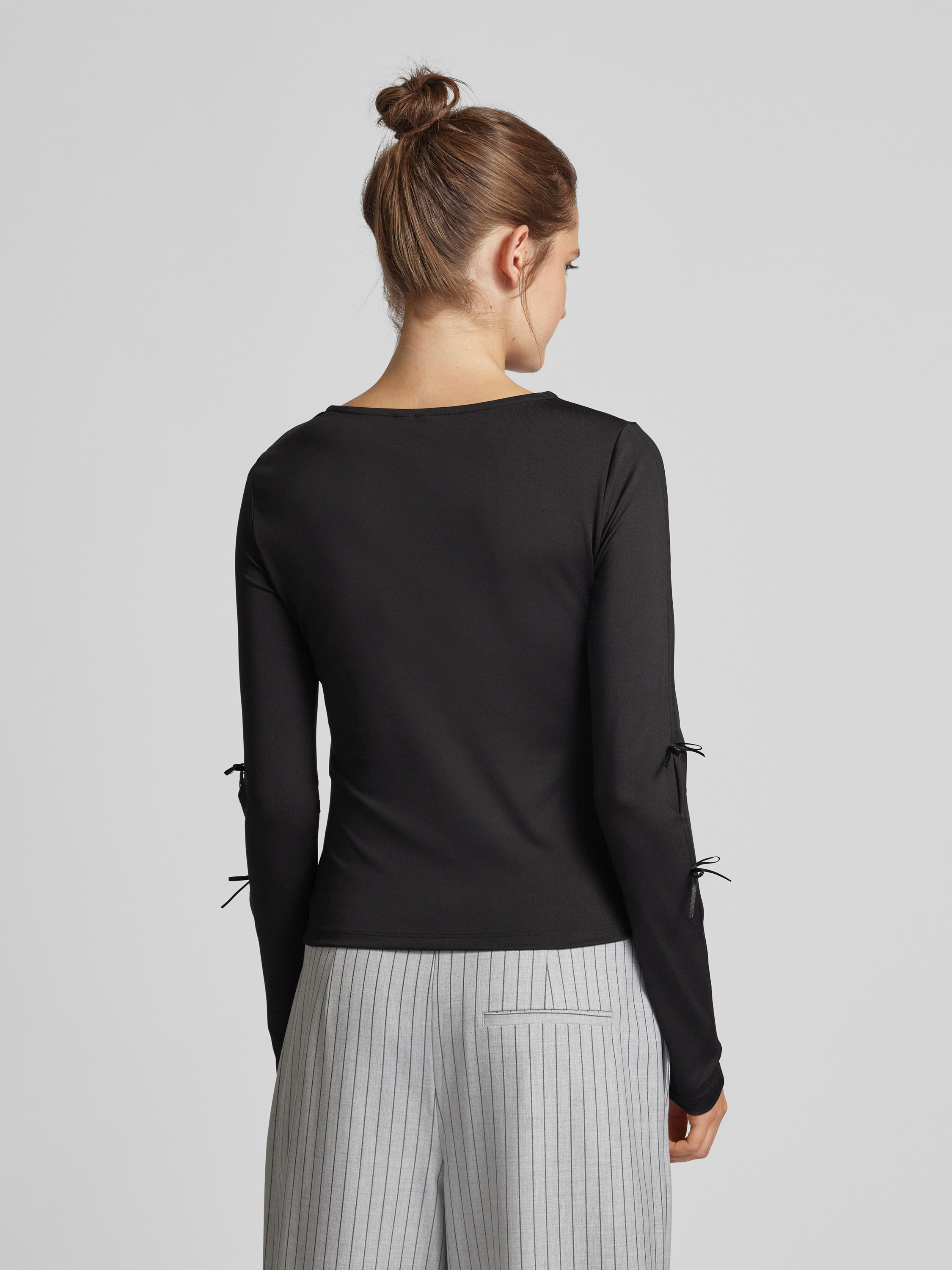PiecesRegular Fit Langarmshirt mit Schleifen Modell 'SELINA' in black