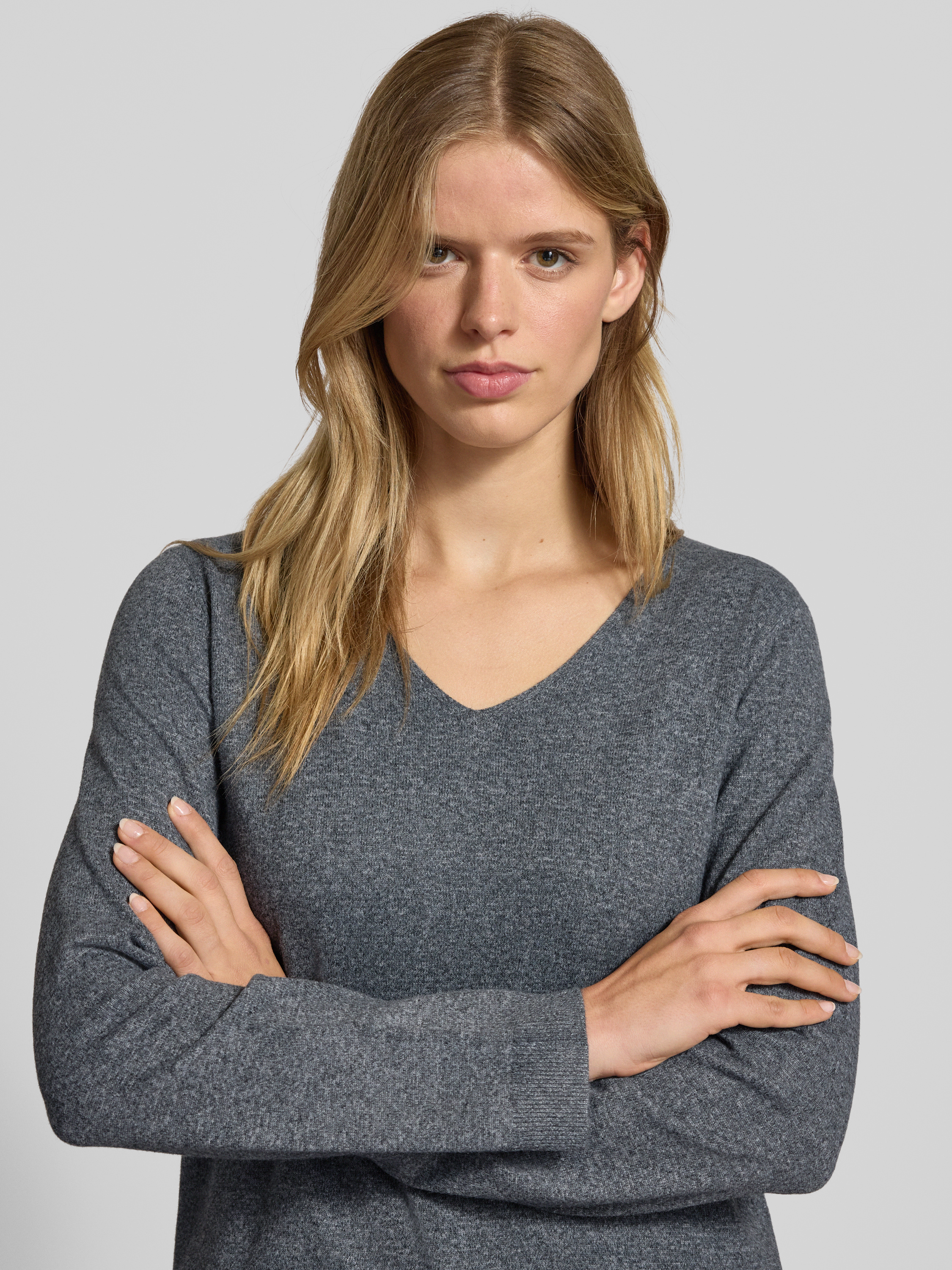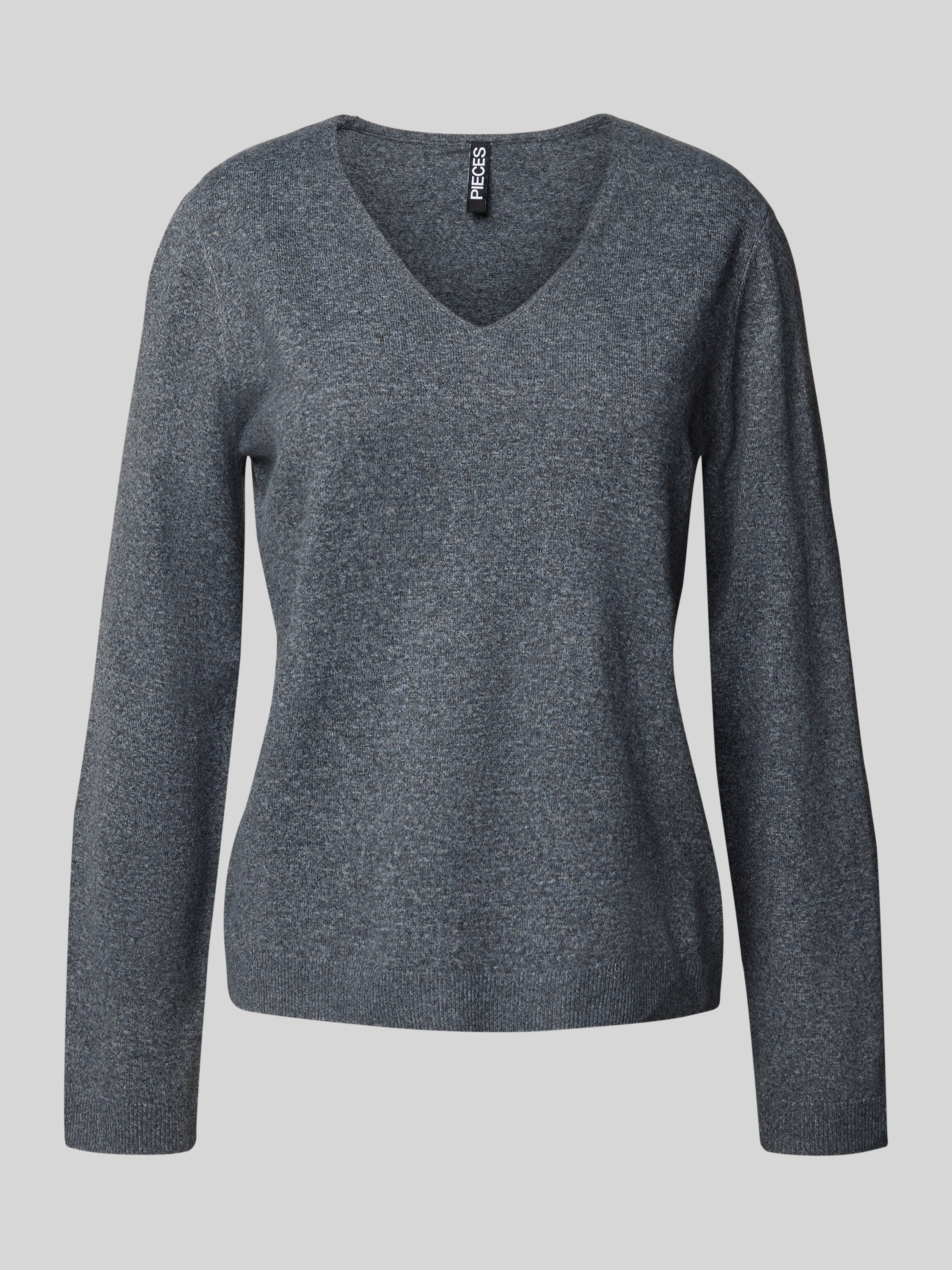 PiecesRegular Fit Pullover mit V-Ausschnitt Modell 'BREE' in dunkelgrau melange