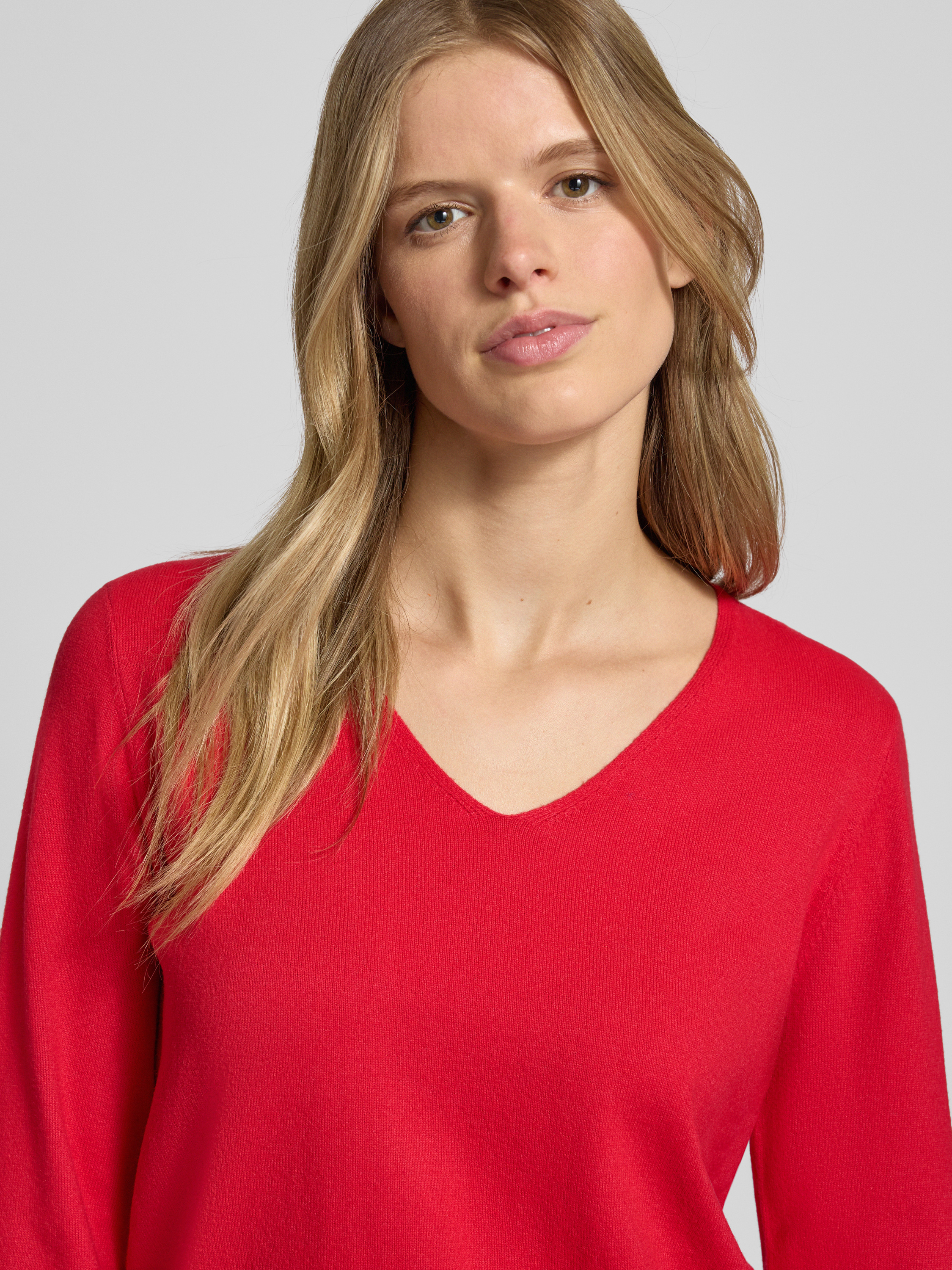 PiecesRegular Fit Pullover mit V-Ausschnitt Modell 'BREE' in rostrot melange
