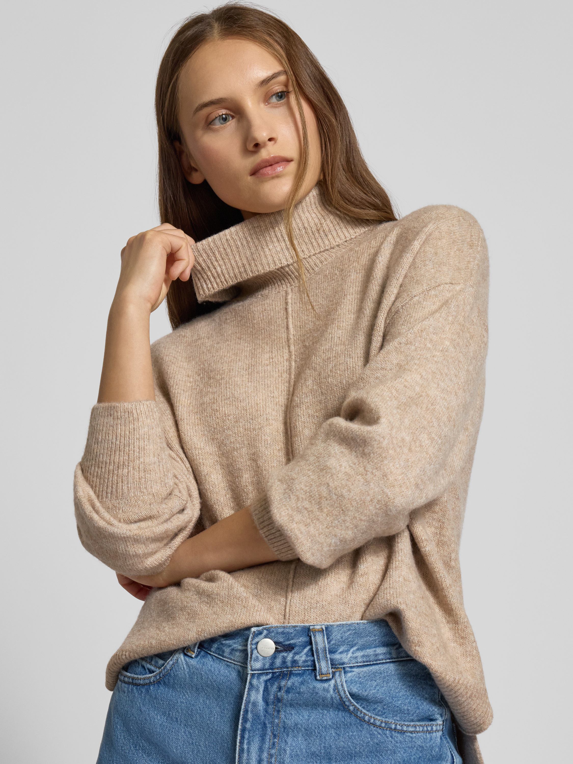 PiecesRegular Fit Rollkragenpullover mit Wollanteil Modell 'MALOU' in ecru