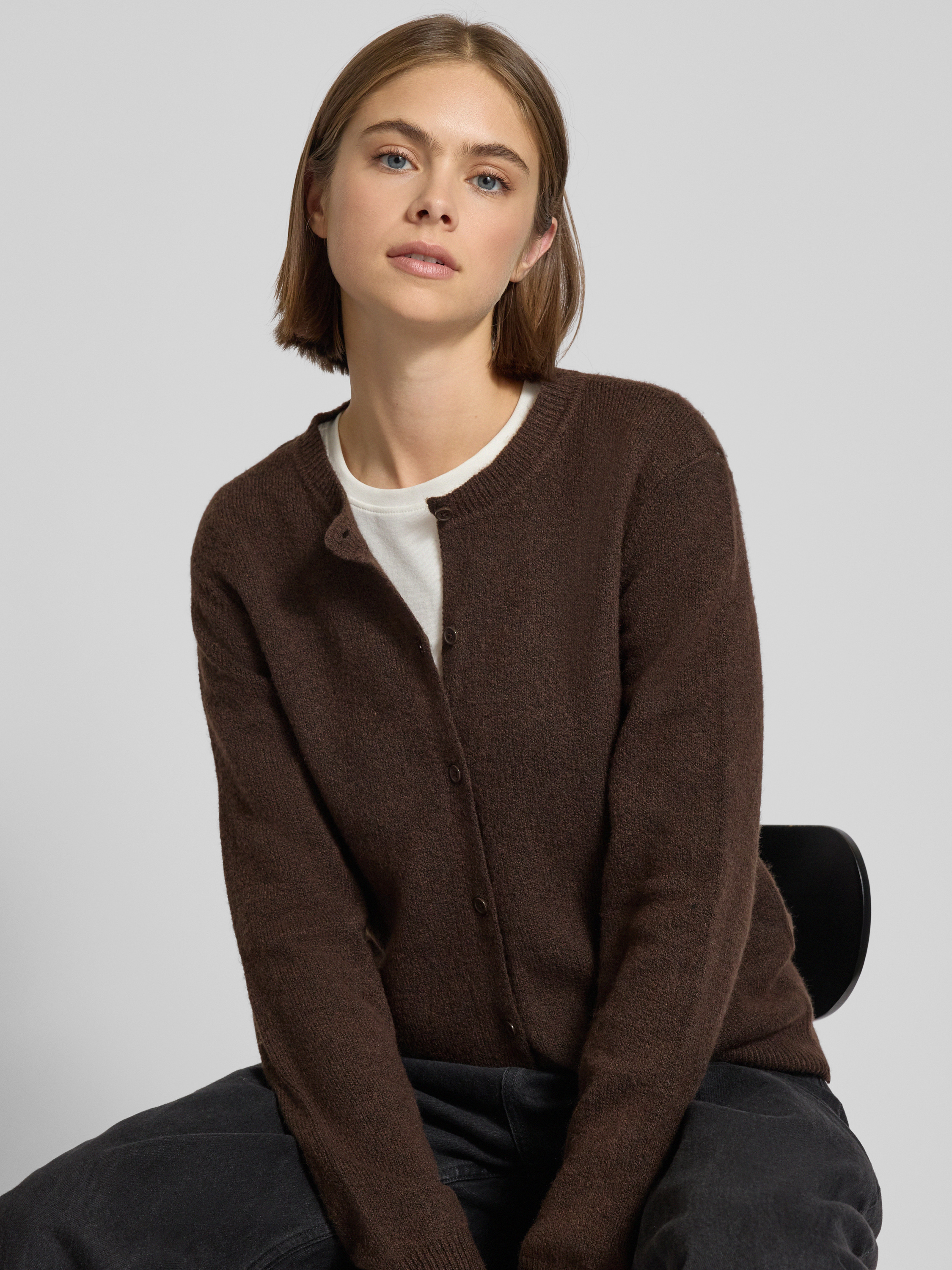 PiecesRegular Fit Strickjacke mit Woll-Anteil Modell 'MALOU' in schoko melange
