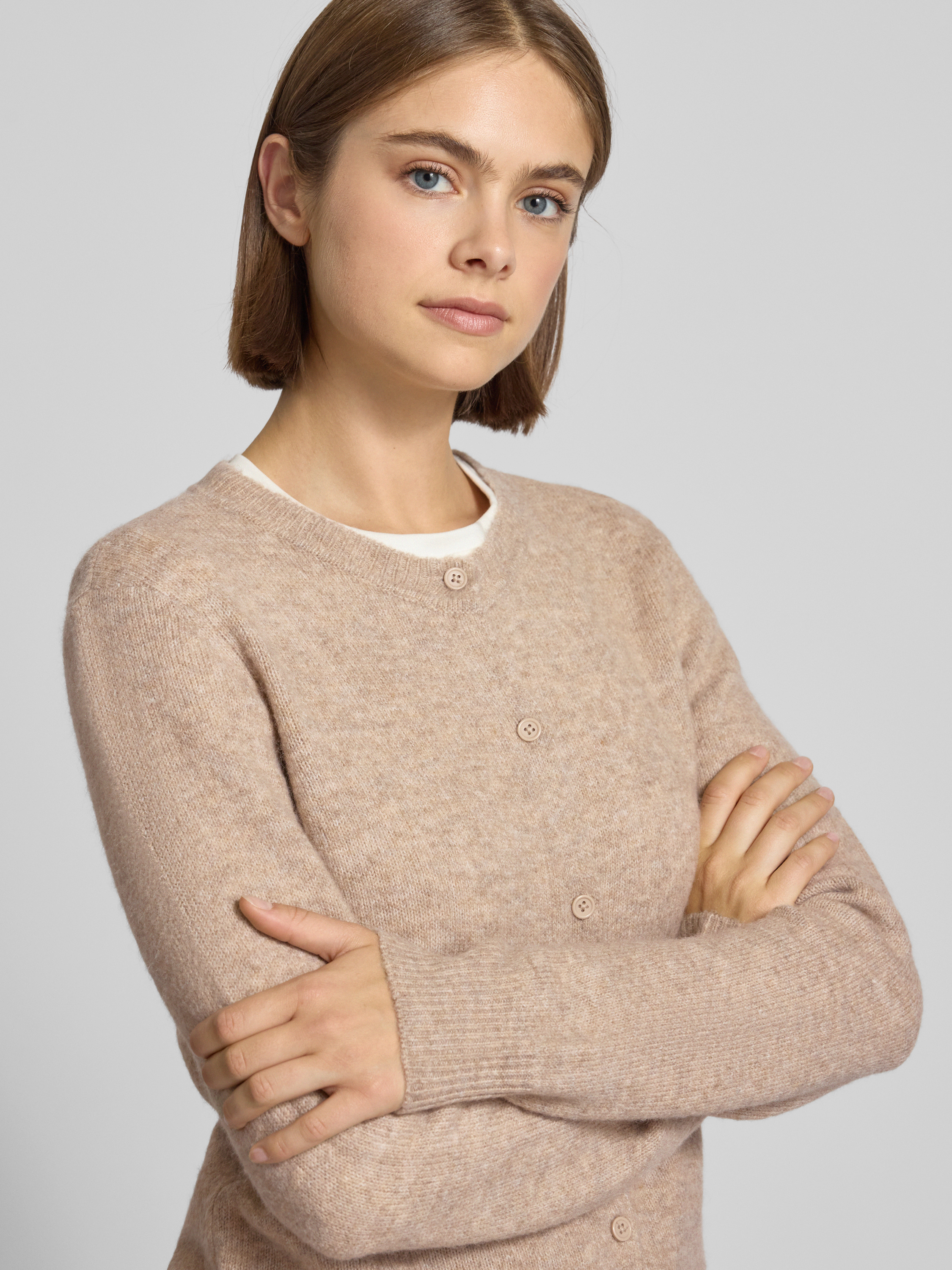 PiecesRegular Fit Strickjacke mit Woll-Anteil Modell 'MALOU' in taupe