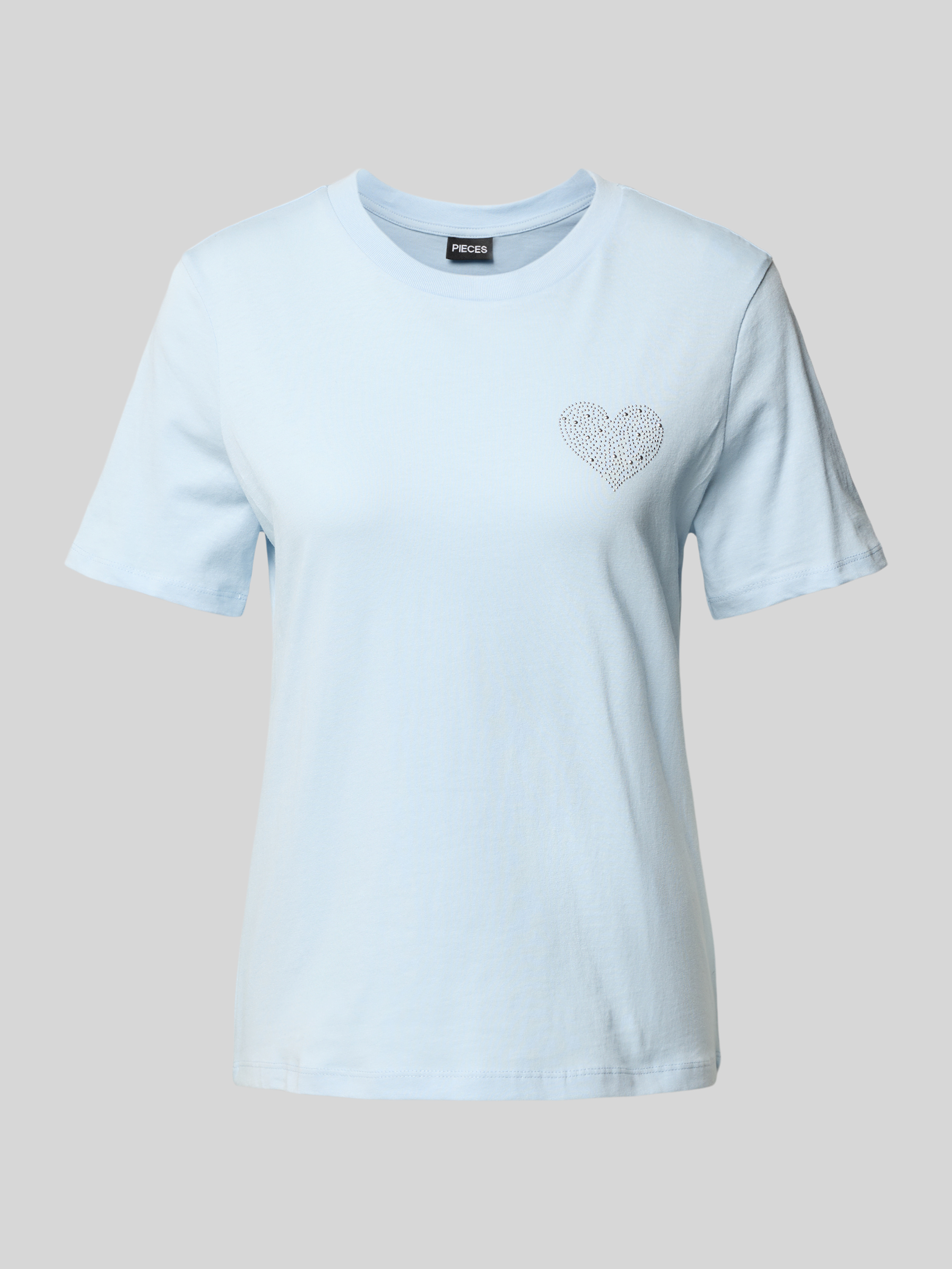 PiecesRegular Fit T-Shirt aus reiner Baumwolle Modell 'TARA' in hellblau