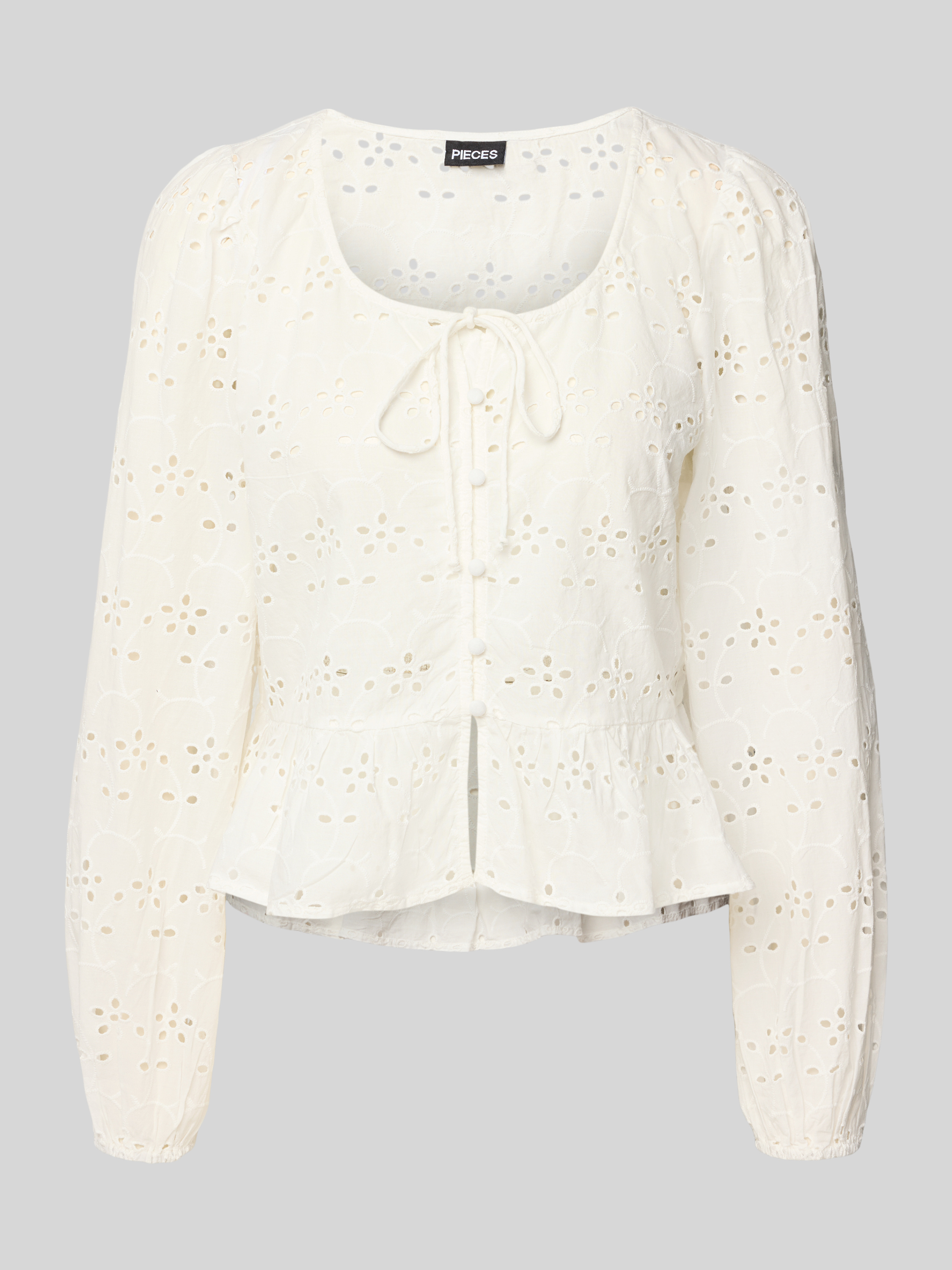 Die Langarmbluse 'Farmorine' von Pieces, gefertigt aus reiner Baumwolle, eignet sich ideal für entspannte Freizeitaktivitäten und feierliche Anlässe. Mit ihrem lockeren Schnitt und dem U-Ausschnitt bringt sie Komfort und Stil zusammen. Die Ballonärmel und der Volantabschluss verleihen dem Design eine besondere Note.