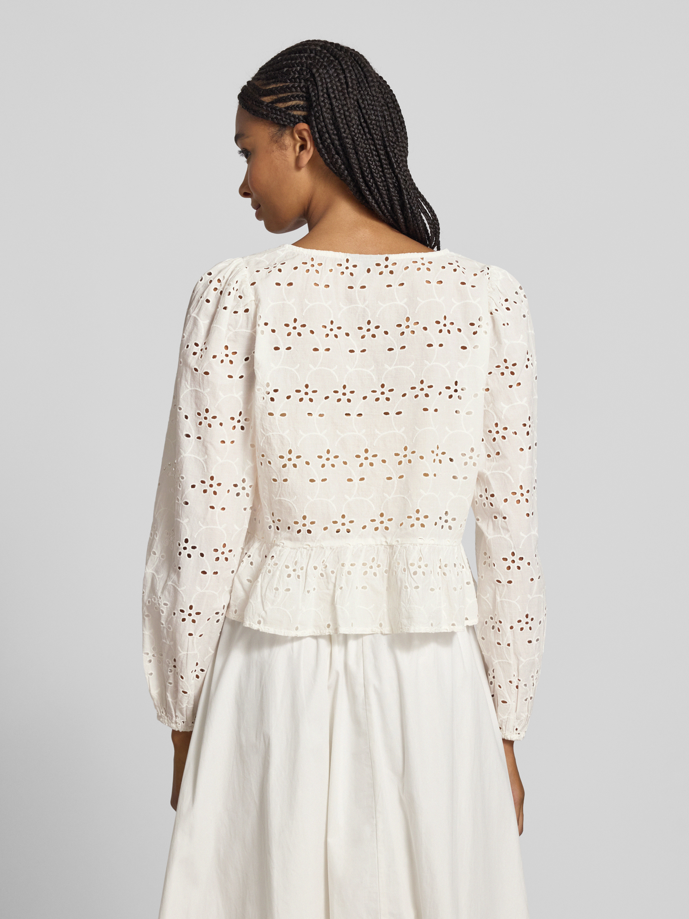 PiecesRelaxed Fit Langarmbluse aus reiner Baumwolle Modell 'FARMORINE' in offwhite