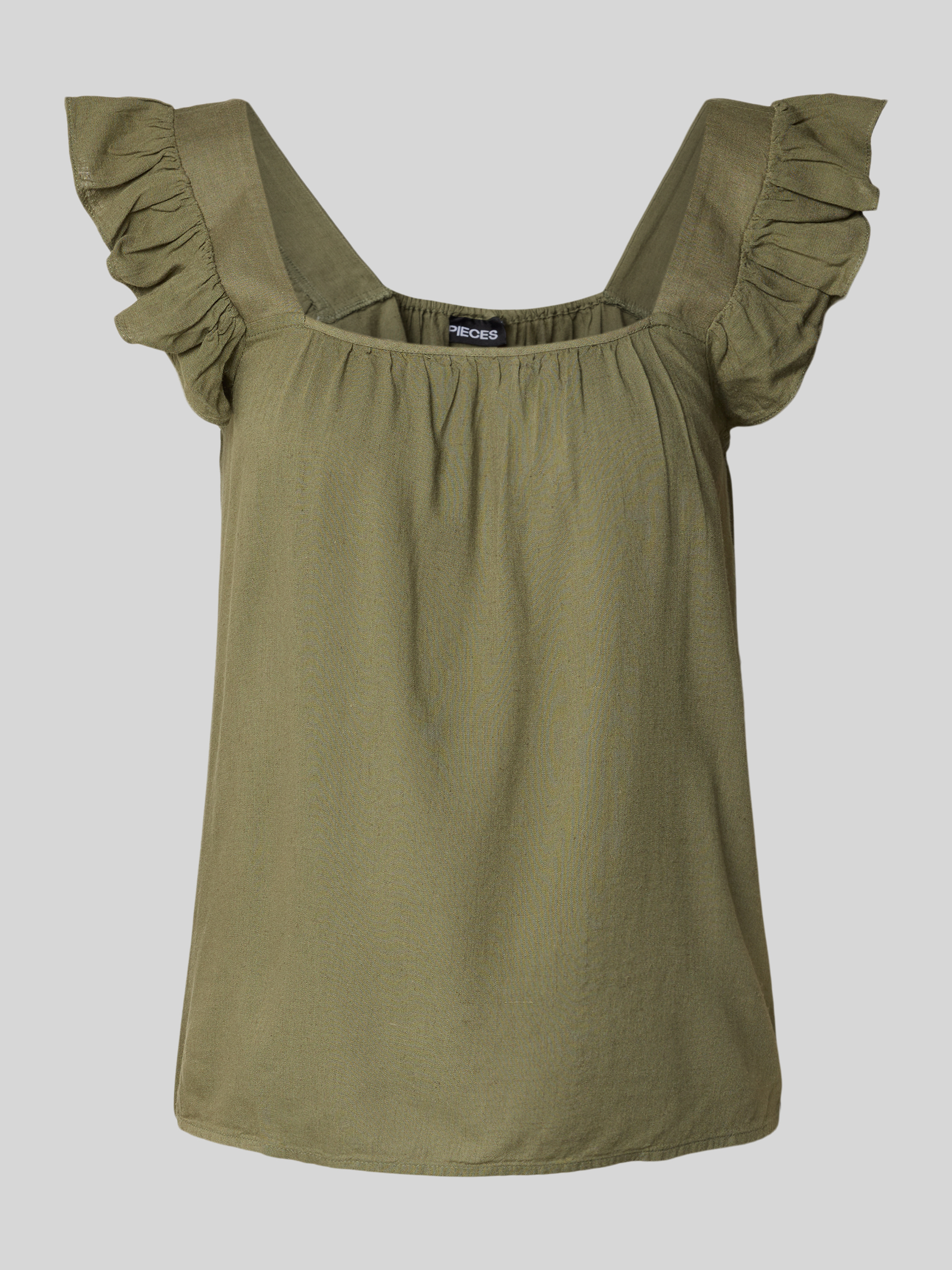 PiecesRelaxed Fit Top aus Viskose-Leinen-Mix Modell 'PIA' in oliv
