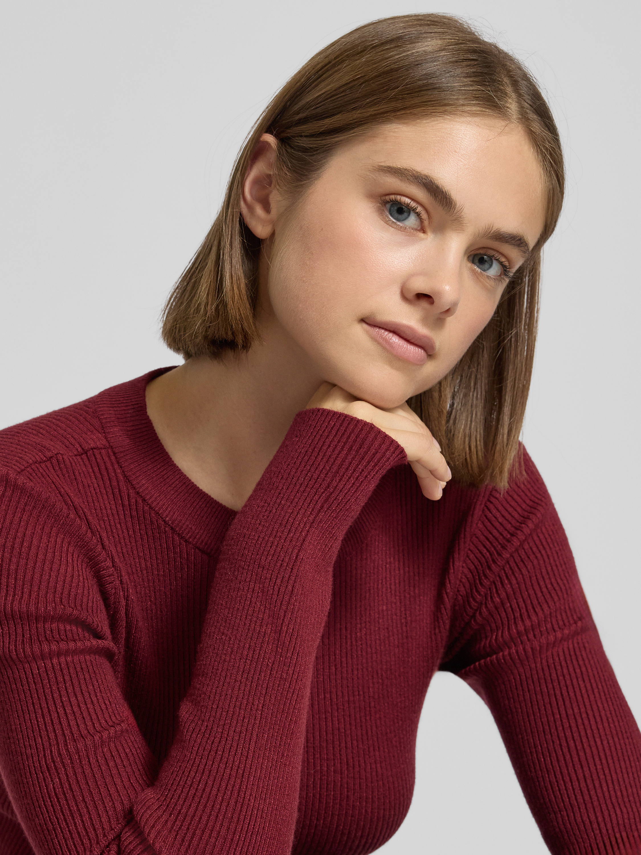 PiecesSlim Fit Strickpullover aus Viskose-Mix Modell 'MIRA' in dunkelrot