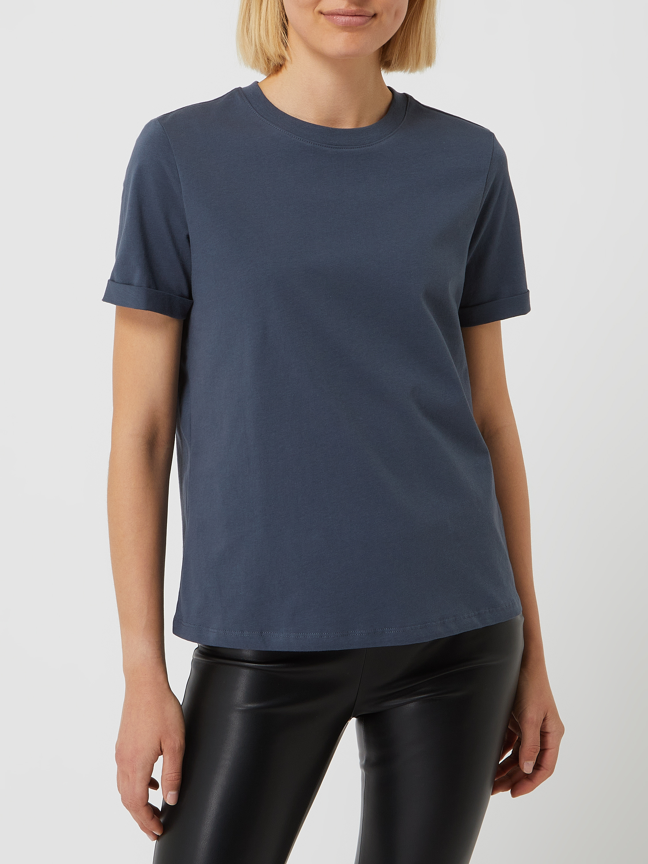T-Shirt mit fixierten Ärmelumschlägen in dunkelblau