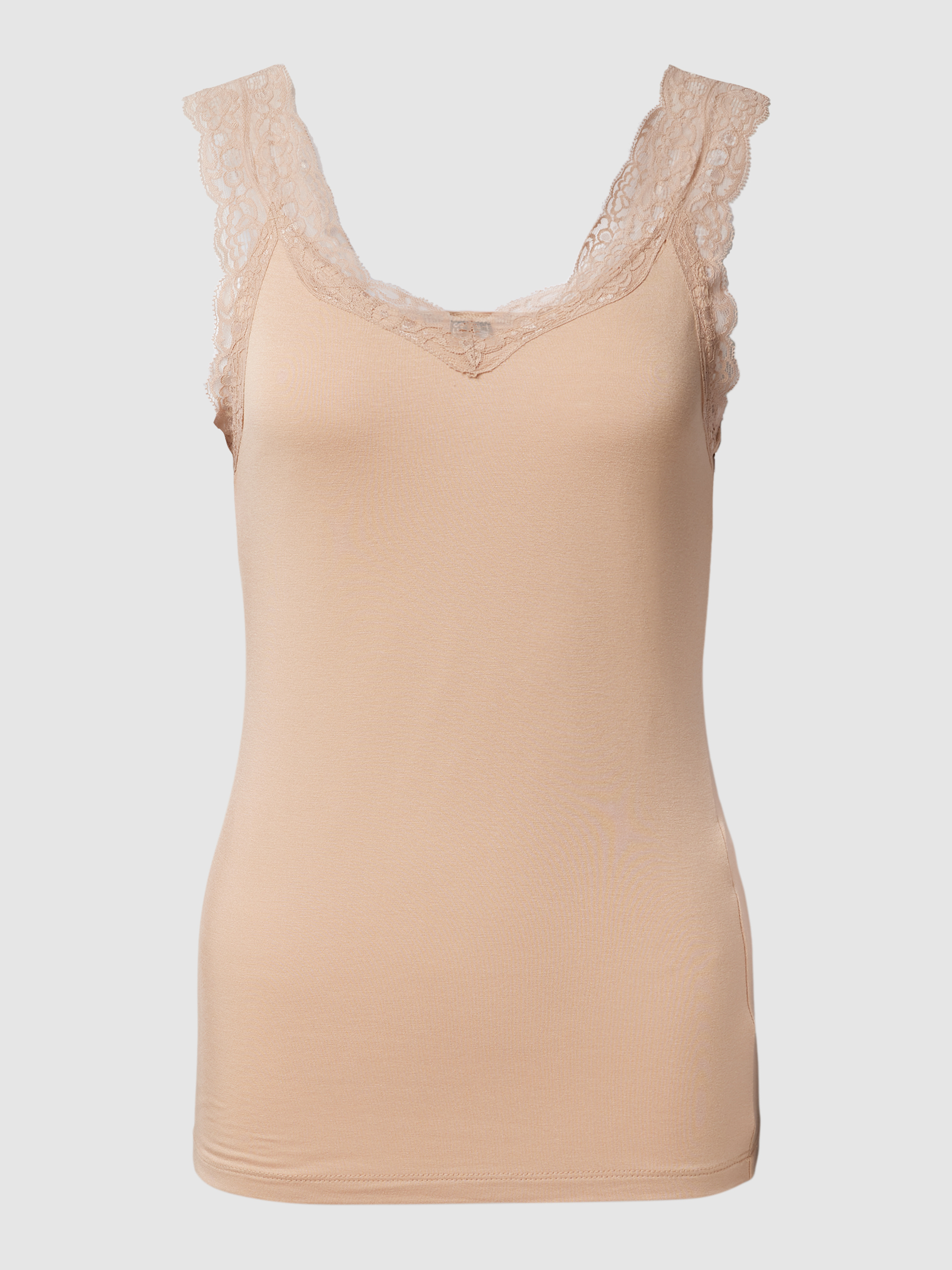 Top mit Spitzenbesatz Modell 'PCBARBERA' in taupe