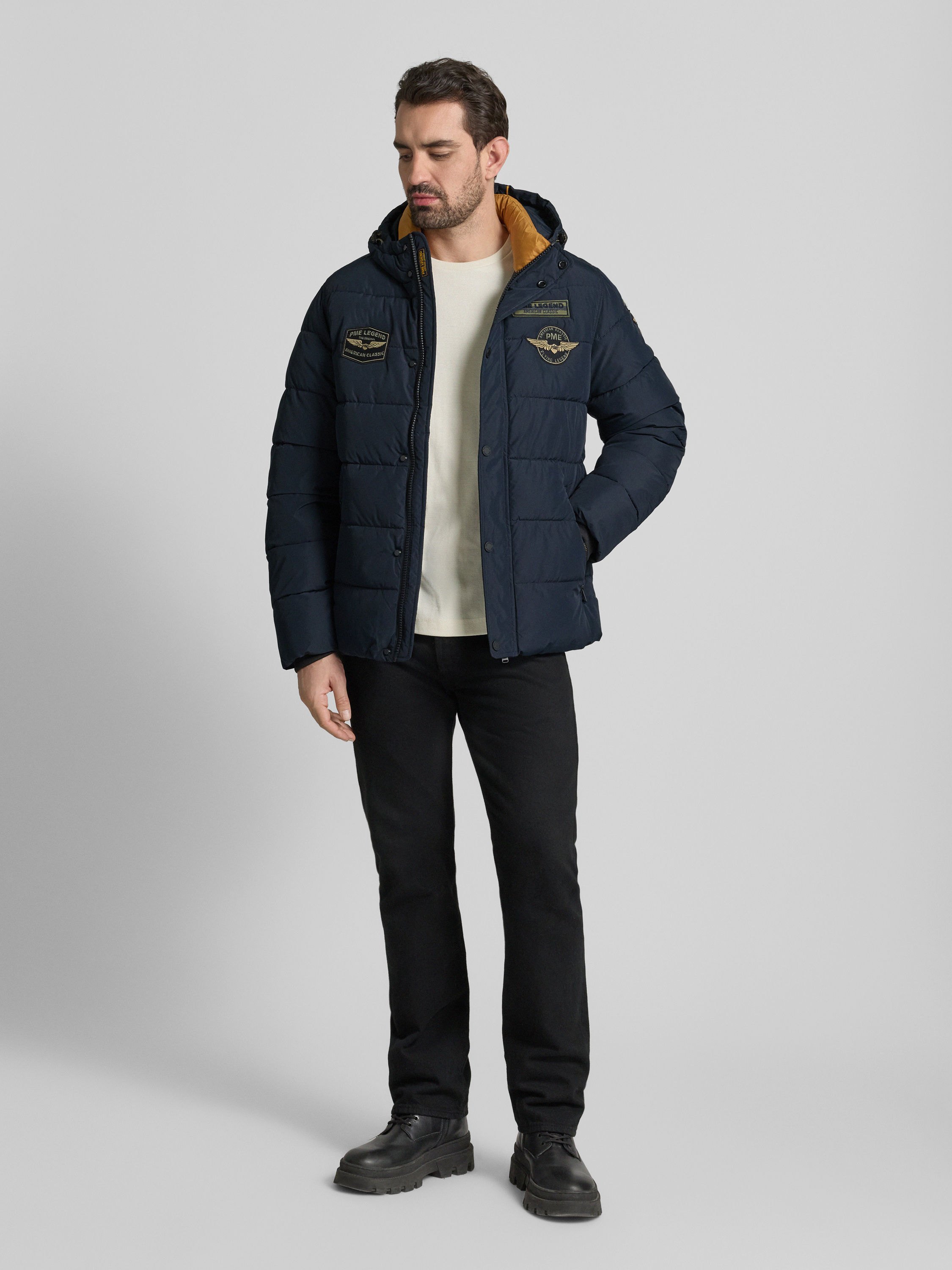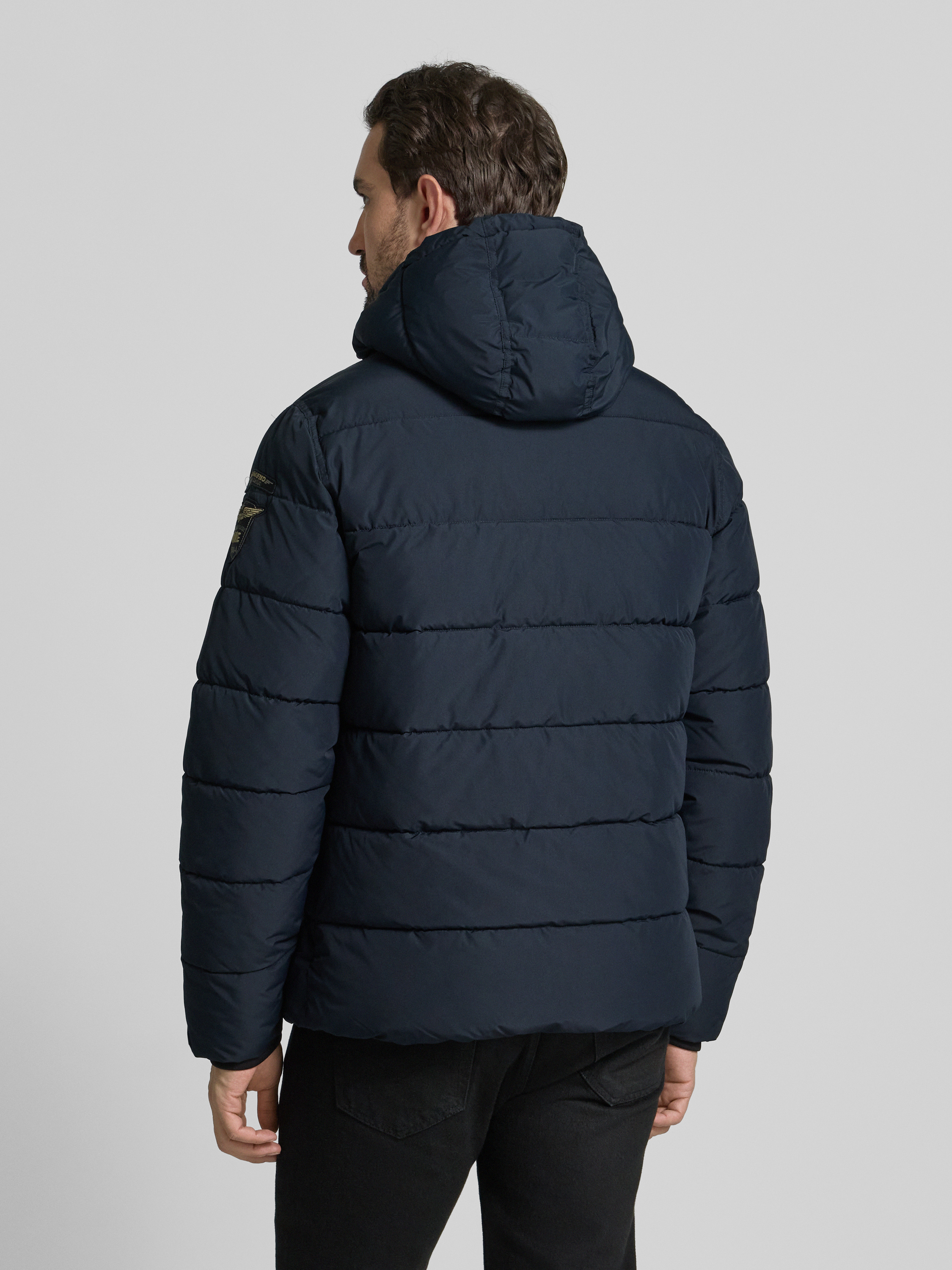 Die Herren Steppjacke von PME Legend zeichnet sich durch ihren Regular Fit aus, wodurch sie angenehm sitzt und ausreichend Bewegungsfreiheit lässt. Die Kapuze schützt bei wechselhaftem Wetter, während praktische Taschen das Verstauen kleiner Gegenstände ermöglichen. Dezente Label-Details runden das Gesamtbild dezent ab.