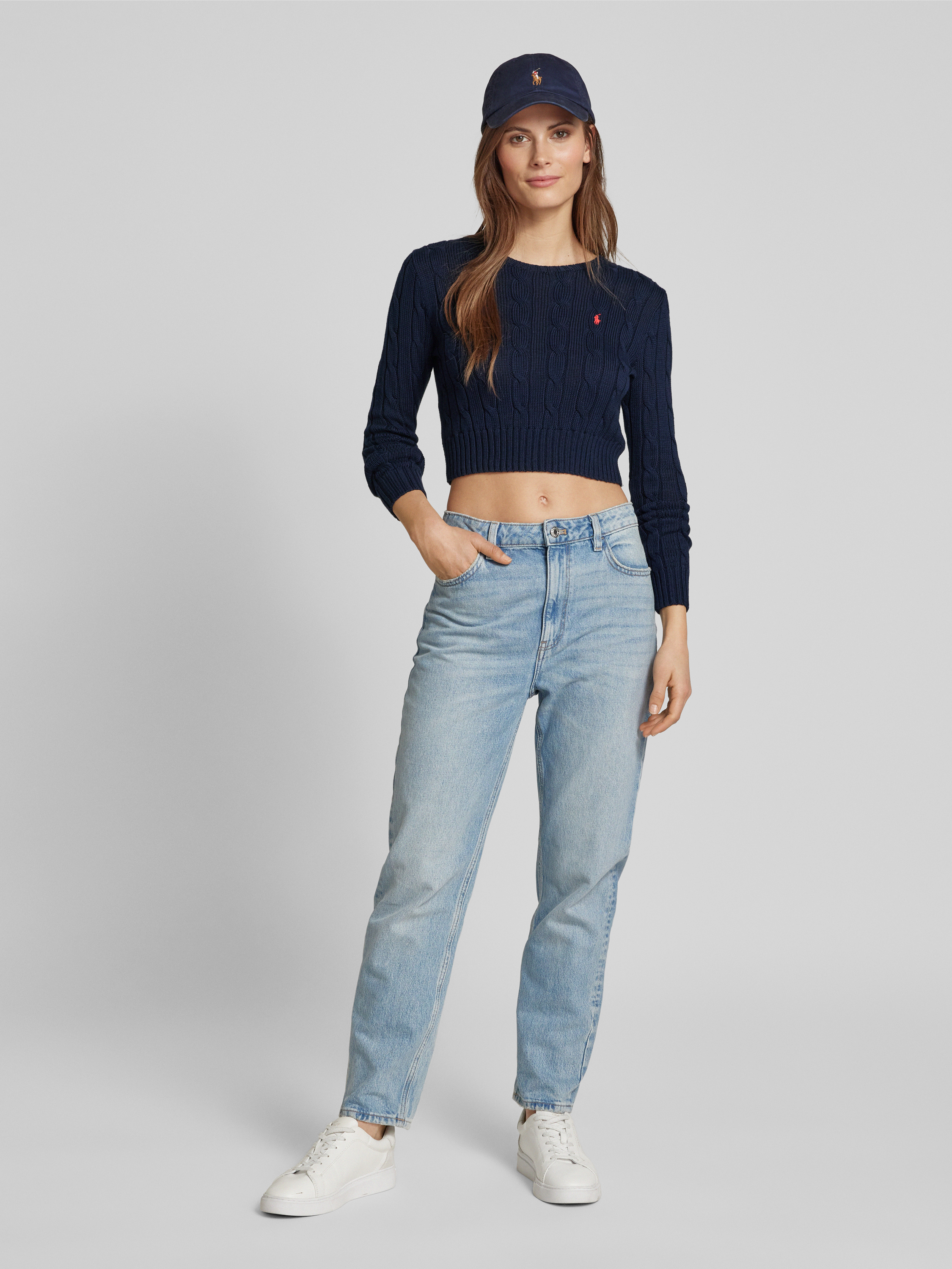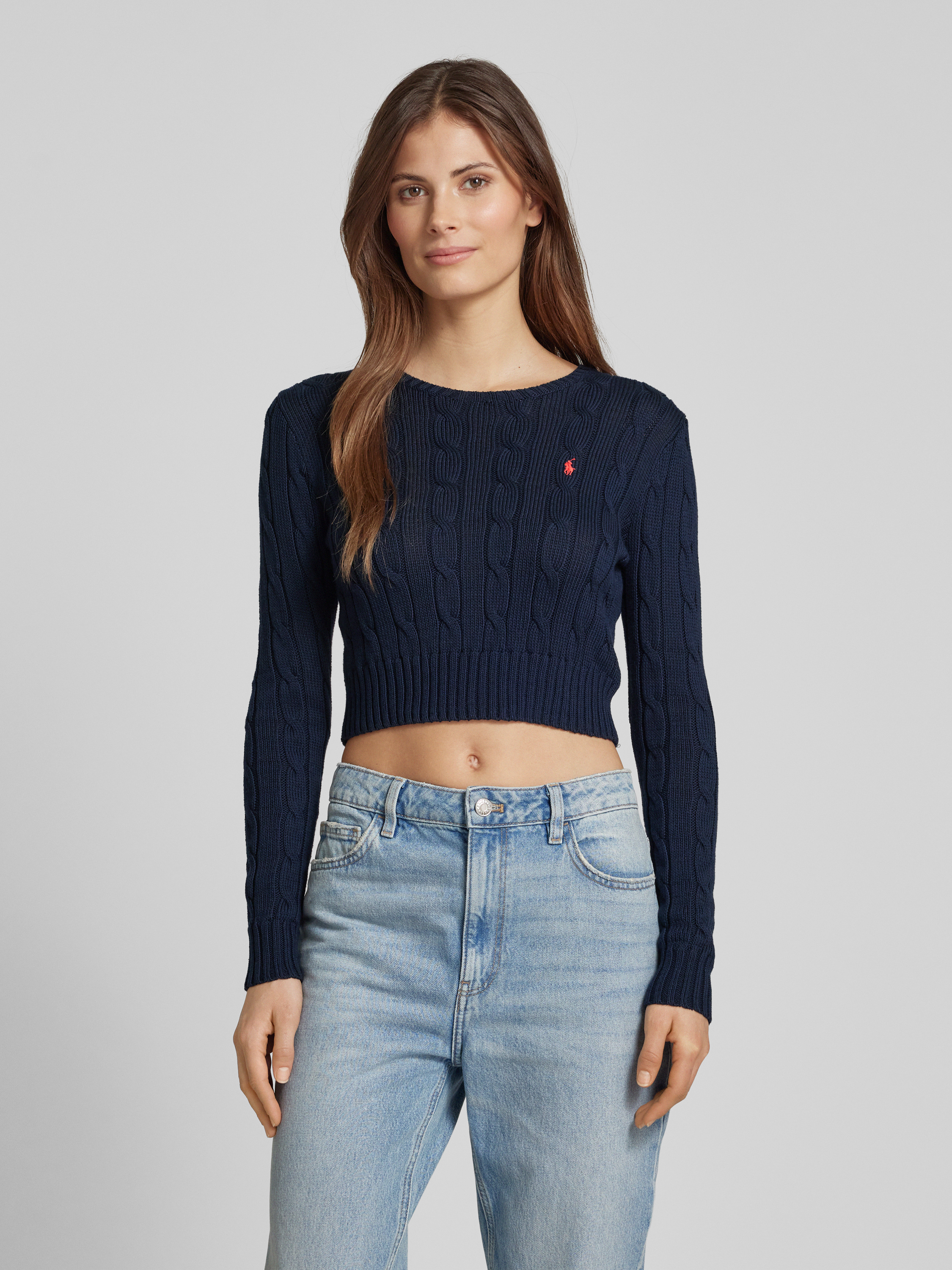Polo Ralph LaurenCropped Strickpullover mit gerippten Abschlüssen in marine