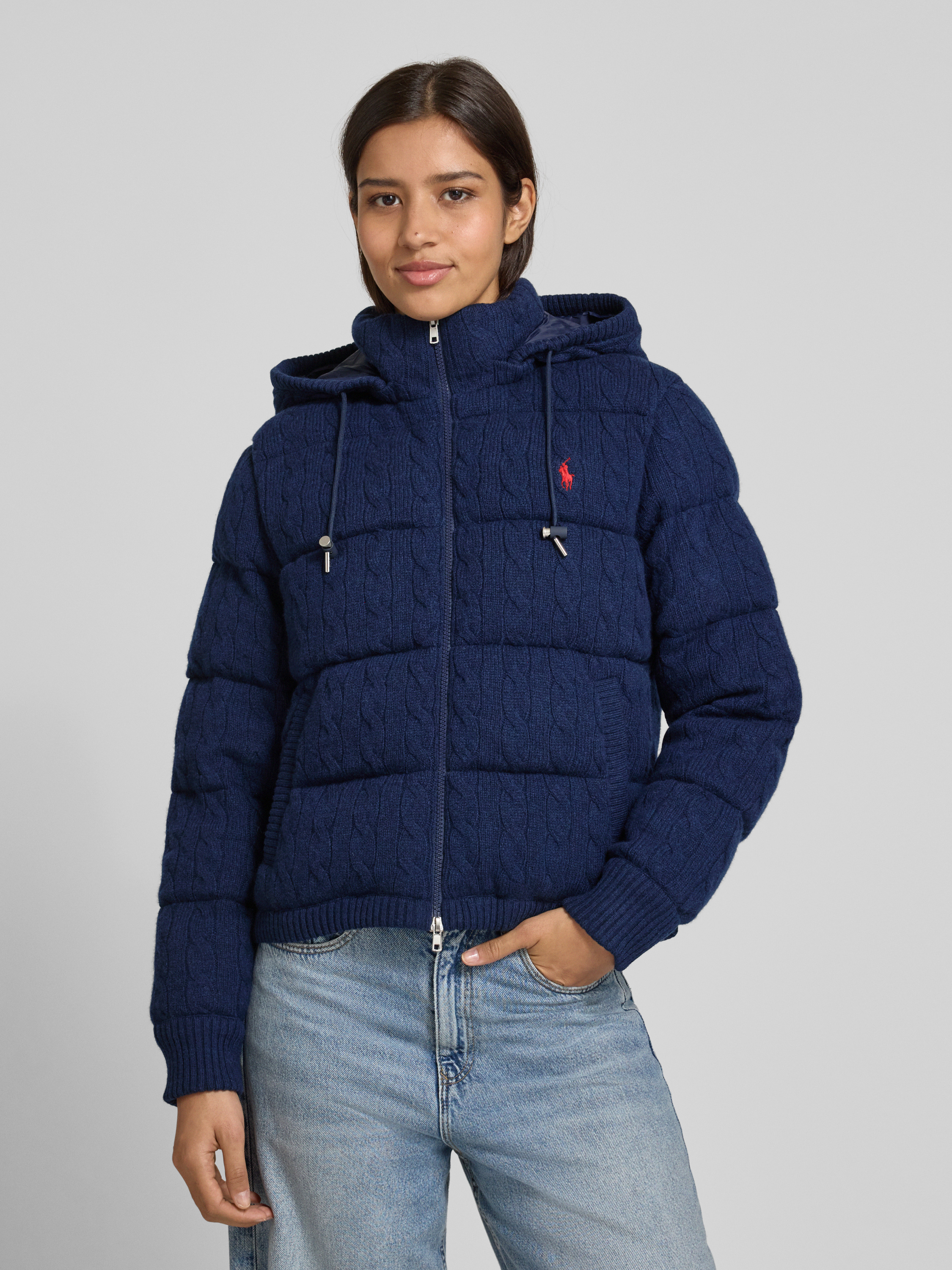 Die Damen Steppjacke von Polo Ralph Lauren zeichnet sich durch einen geraden Schnitt aus, der Bewegungsfreiheit und einen lässigen Look miteinander verbindet. Der Woll-Kaschmir-Mix verleiht dem Modell eine angenehme Haptik und sorgt für ein komfortables Tragegefühl. Durch Kapuze mit Tunnelzug und Stehkragen eignet sich die Jacke besonders für wechselhaftes Wetter.