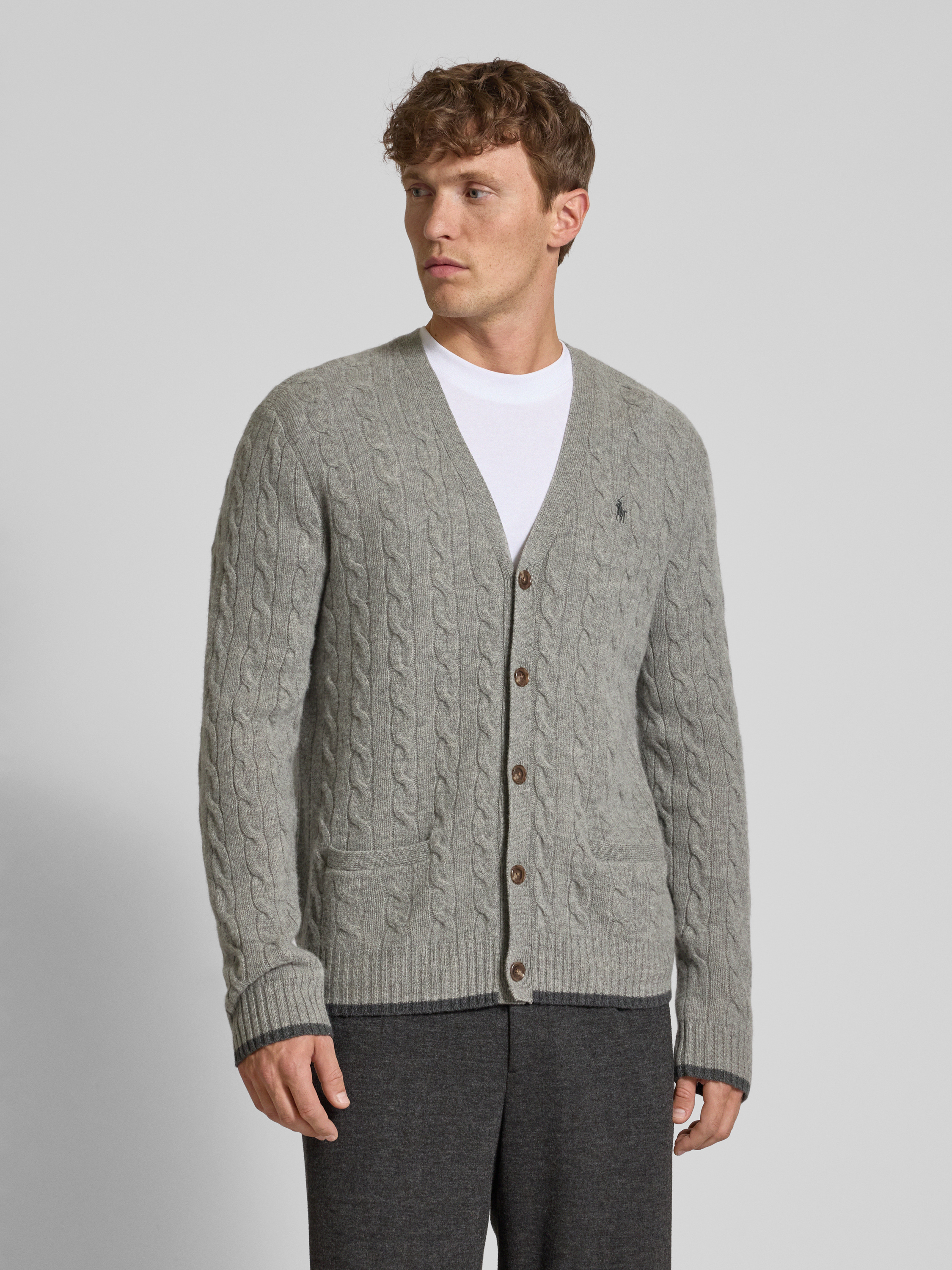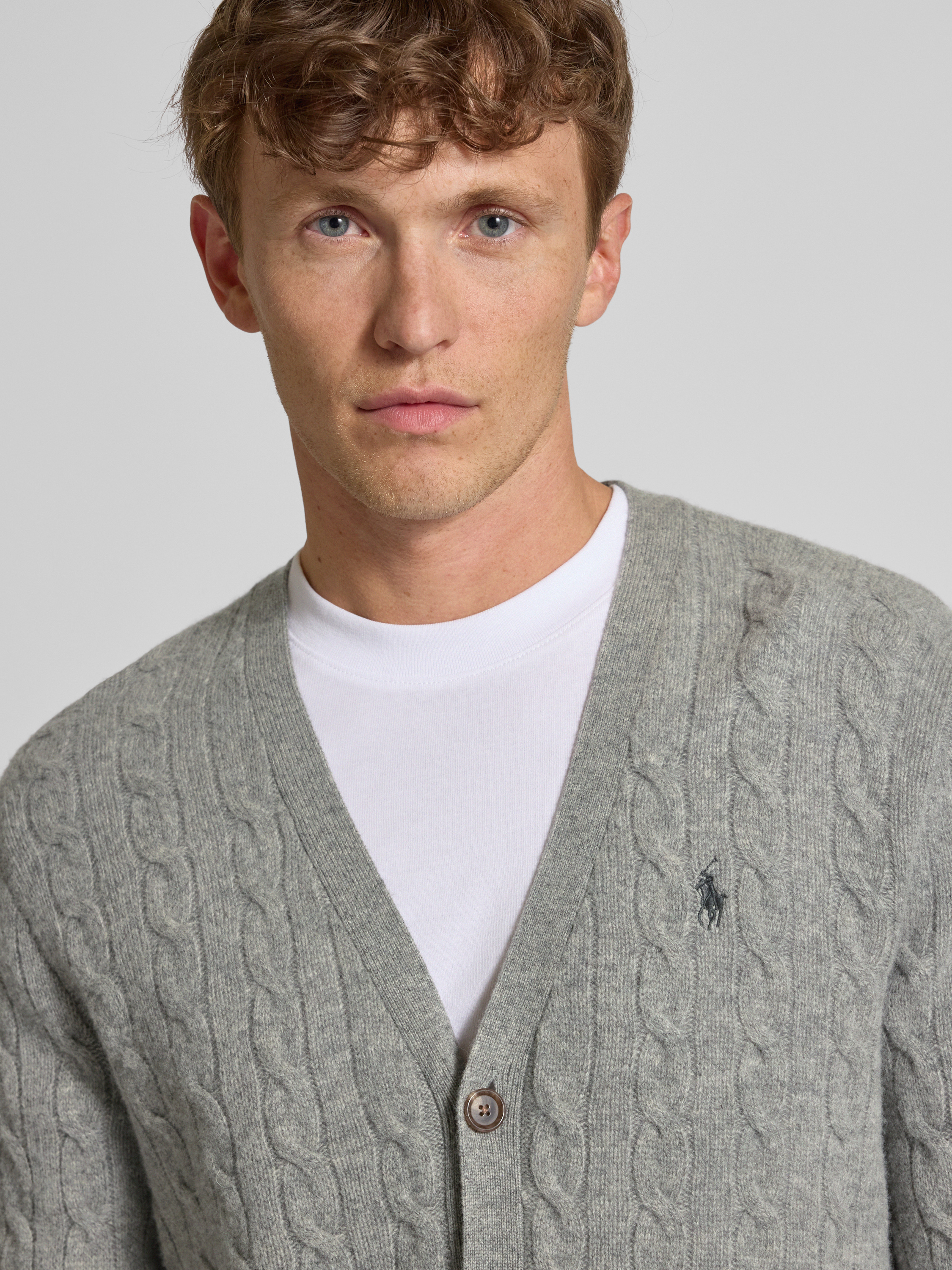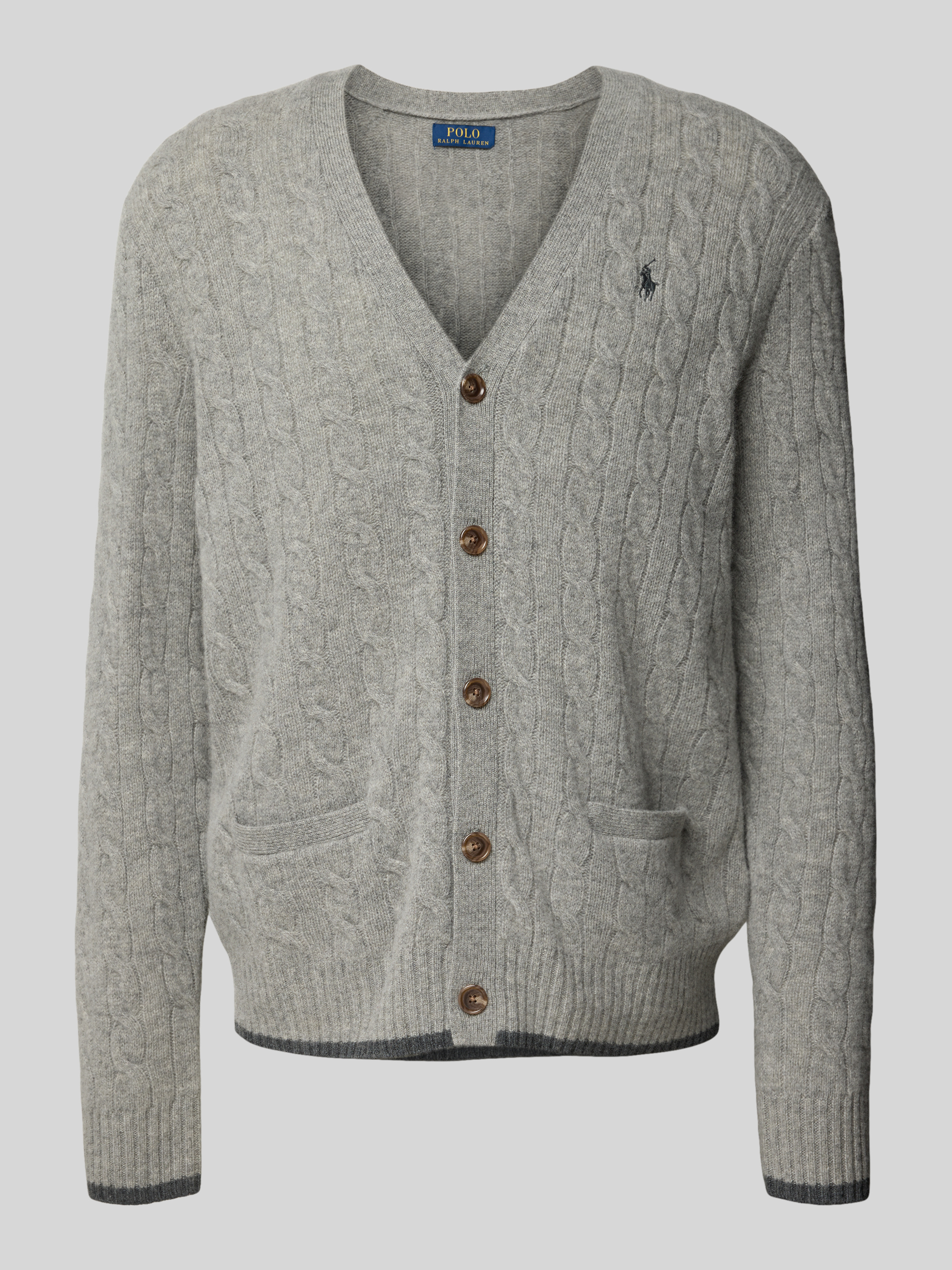 Polo Ralph LaurenStrickjacke mit V-Ausschnitt und Eingrifftaschen in mittelgrau