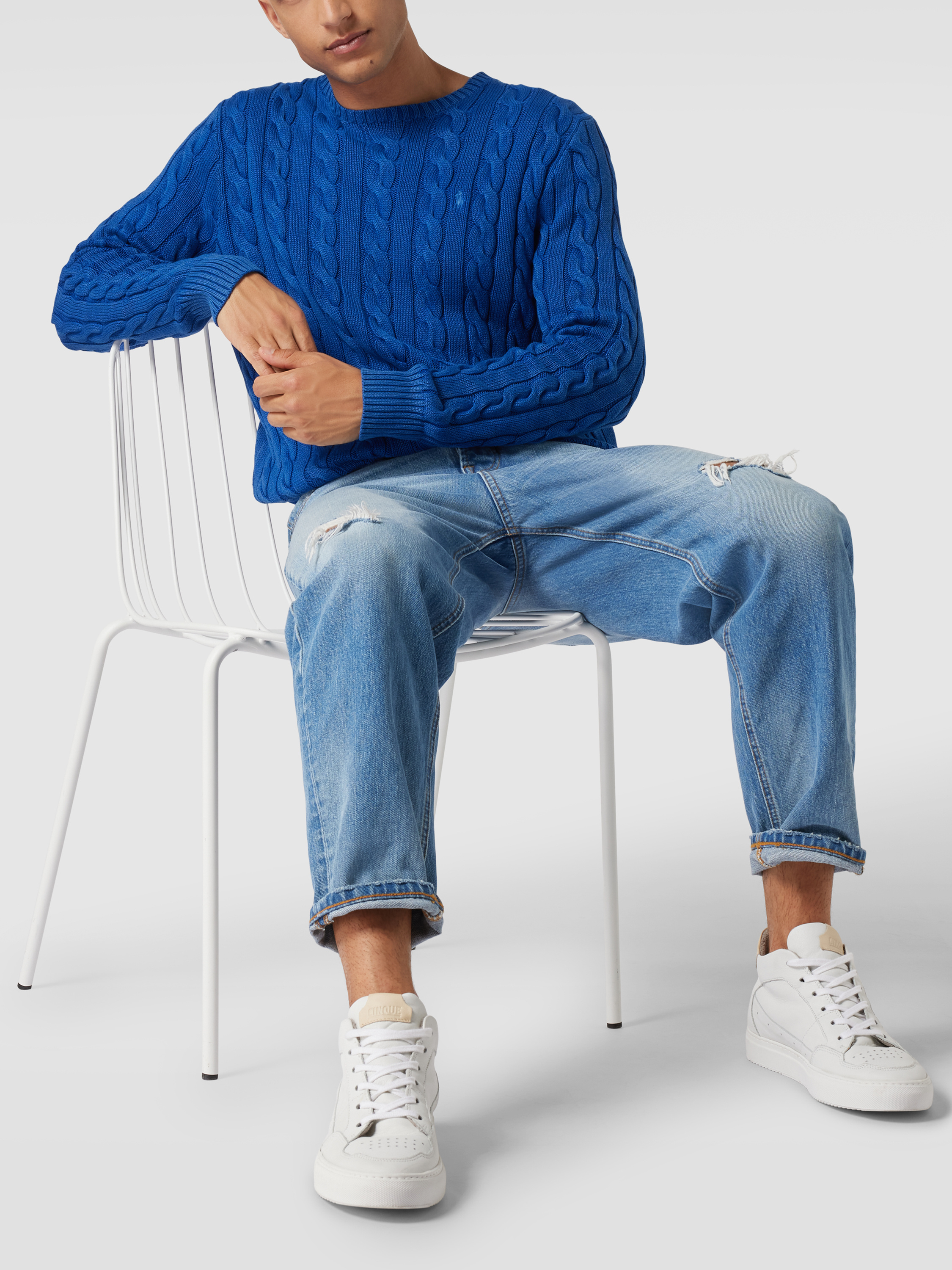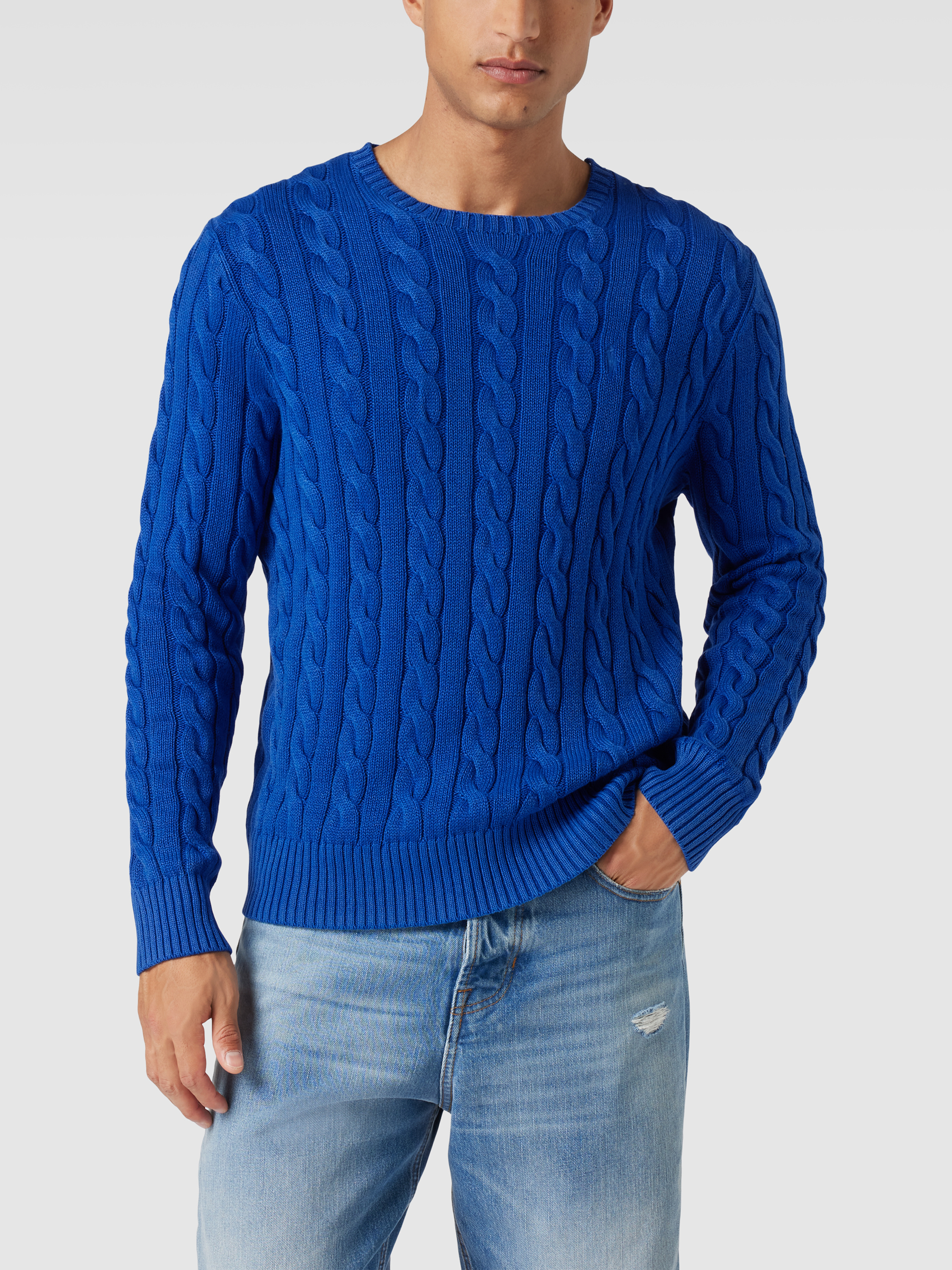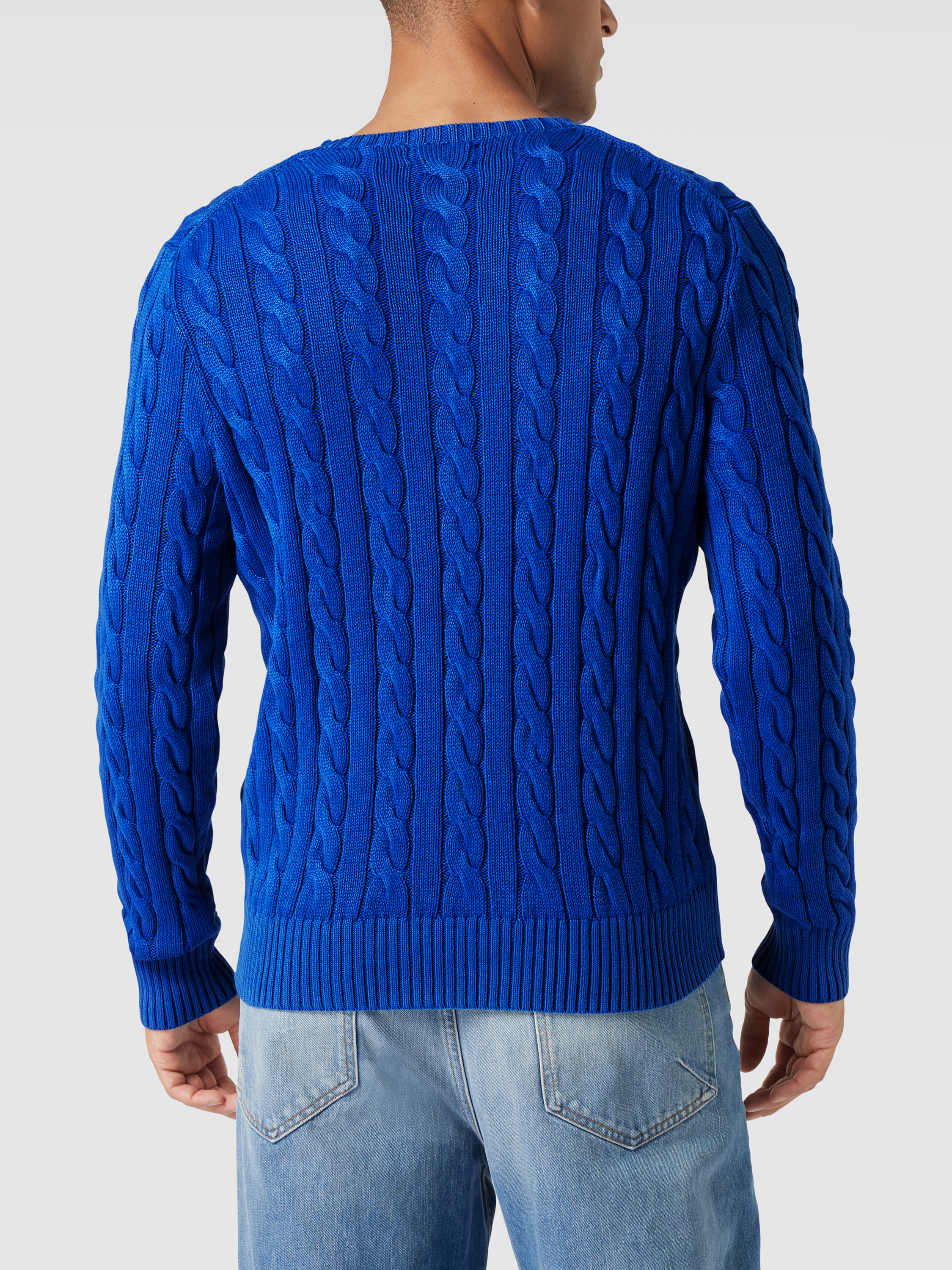 Polo Ralph LaurenStrickpullover aus Baumwolle mit Zopfmuster in blau