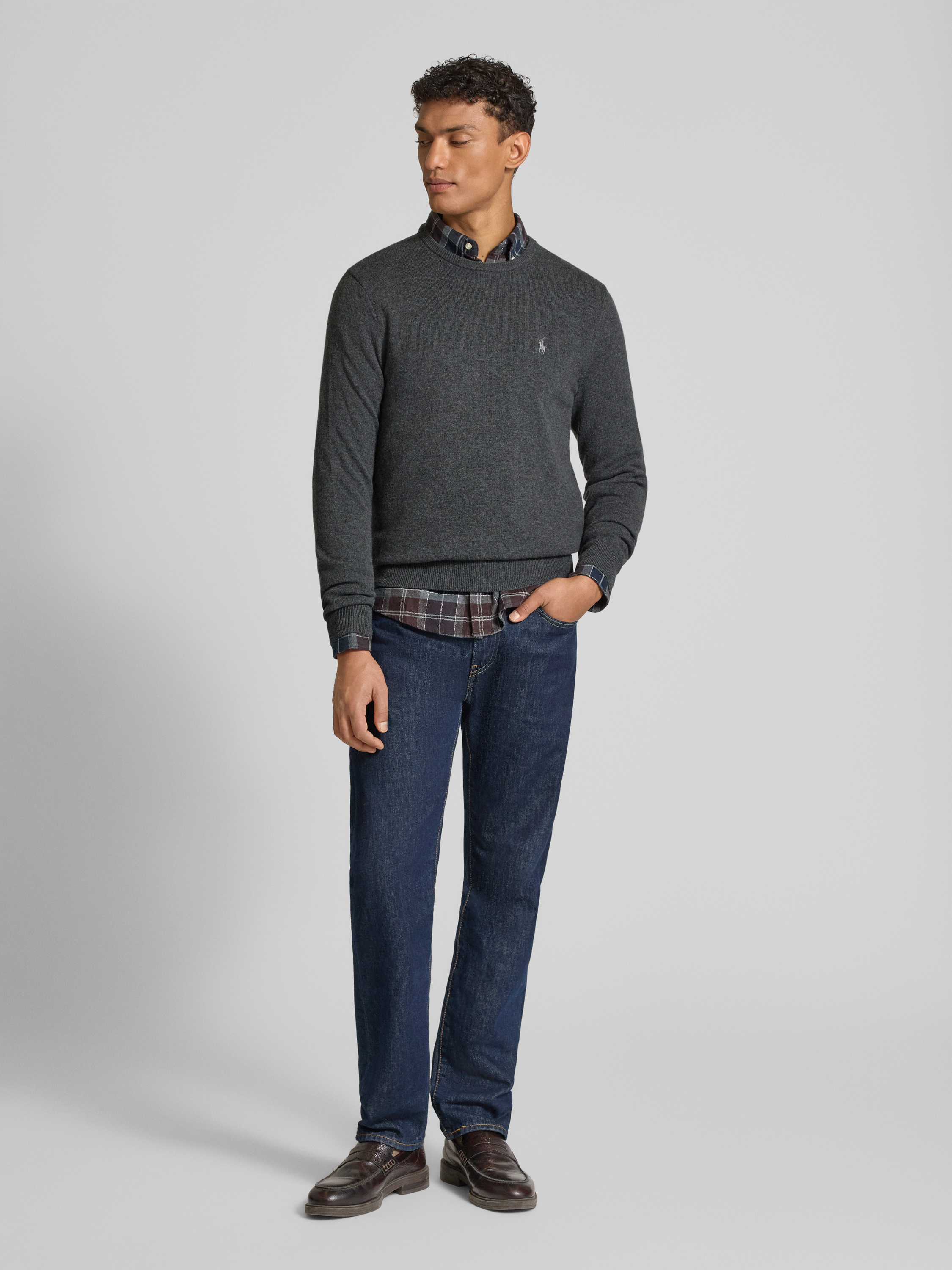 Polo Ralph LaurenStrickpullover mit gerippten Abschlüssen in anthrazit