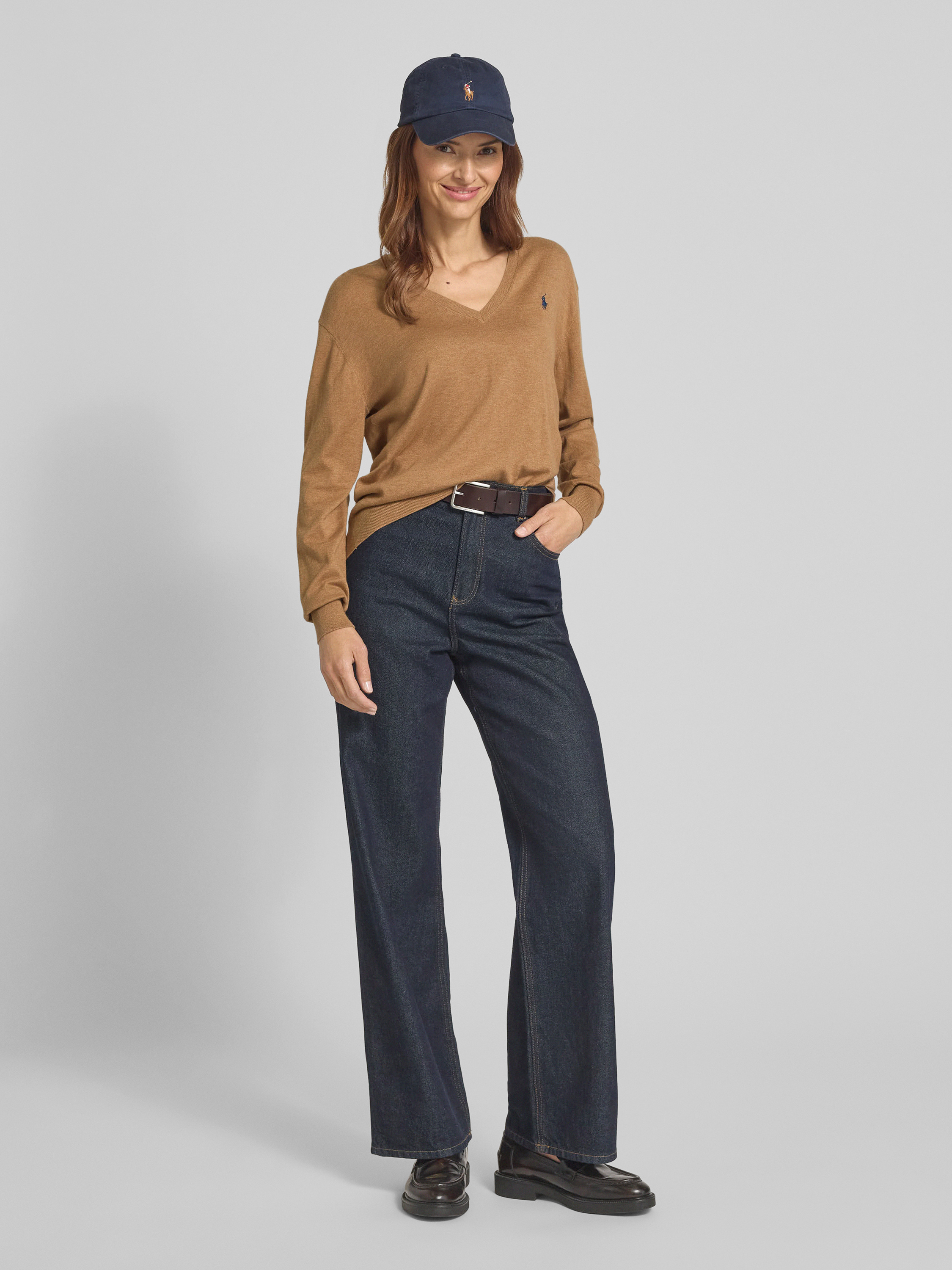 Polo Ralph LaurenStrickpullover mit Logo-Stitching und V-Ausschnitt in camel
