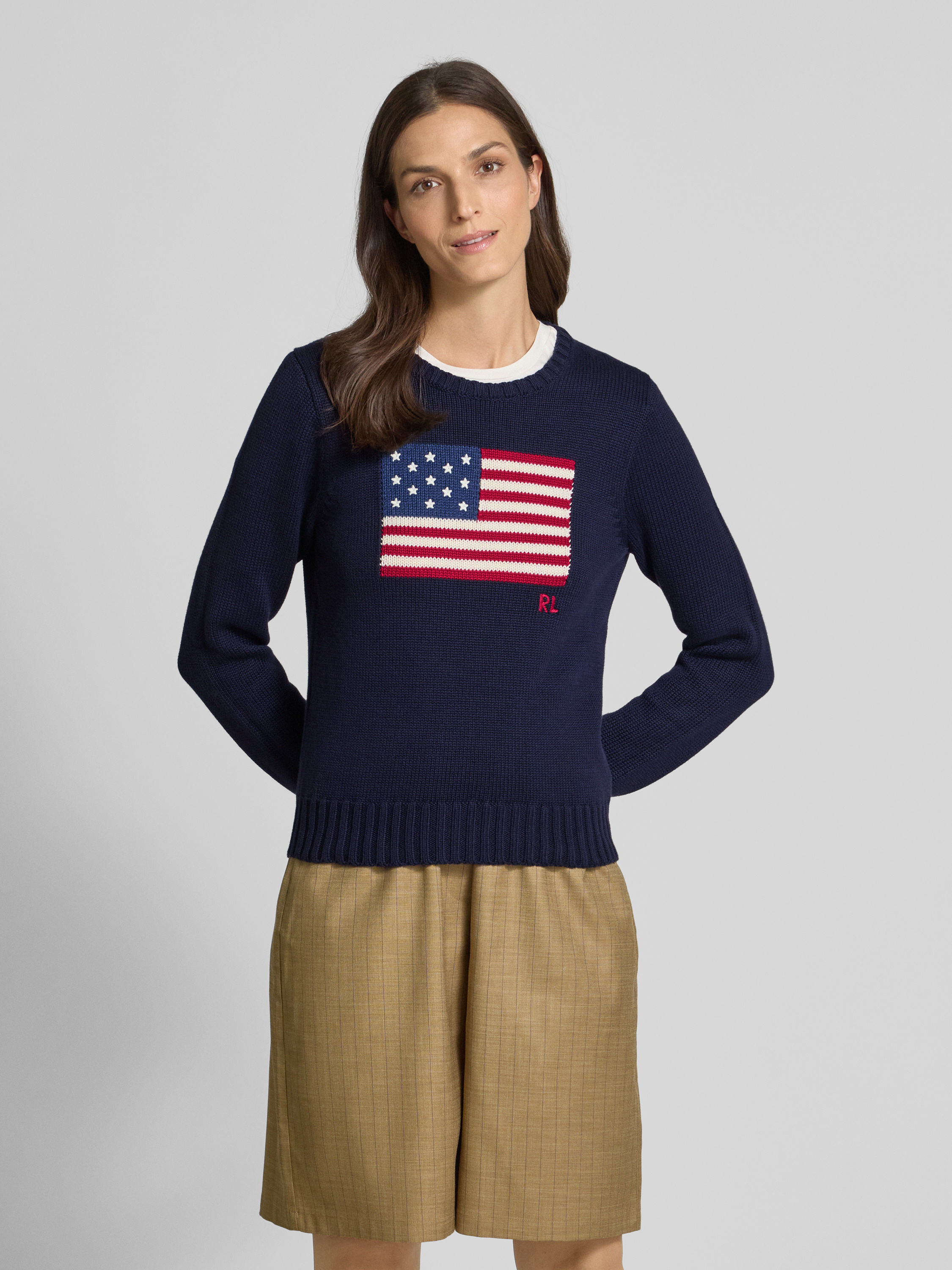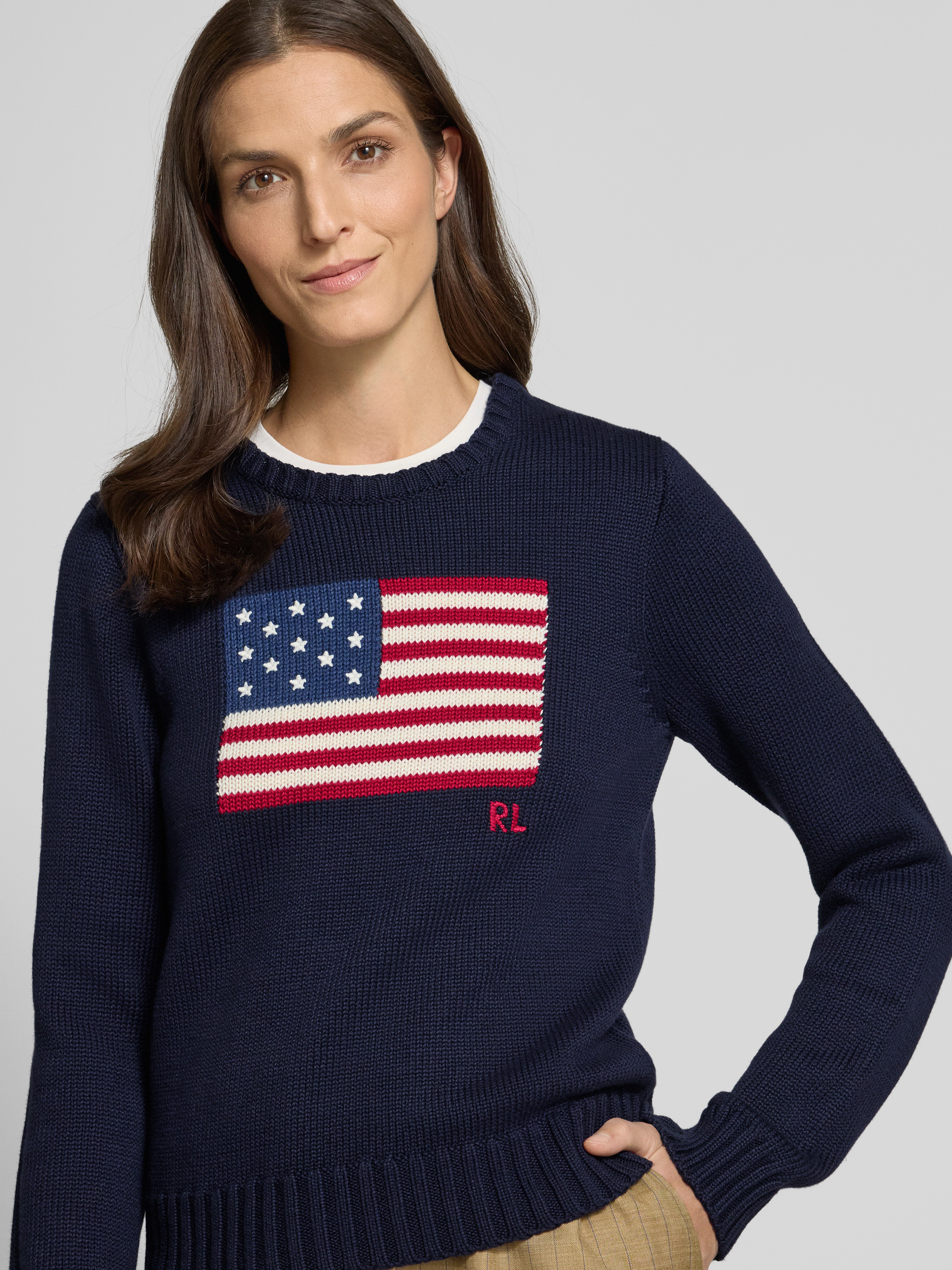 Der Damen Strickpullover von Polo Ralph Lauren präsentiert sich mit einem geraden Schnitt und liegt angenehm auf der Haut. Reine Baumwolle sorgt für ein weiches Tragegefühl, während das Motiv-Stitching dem Pullover einen individuellen Akzent verleiht. Durch den Rundhalsausschnitt entsteht eine klassische Silhouette.