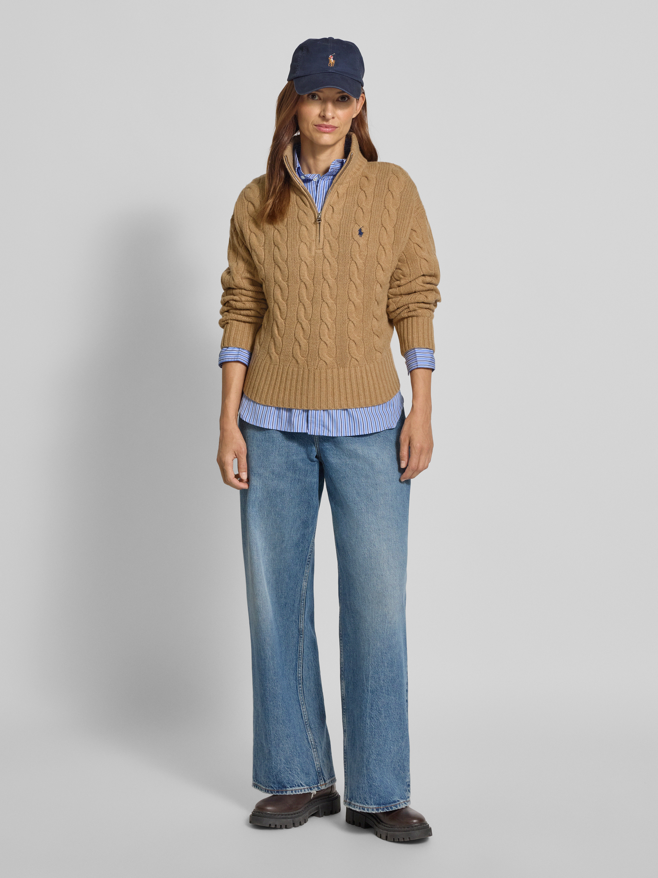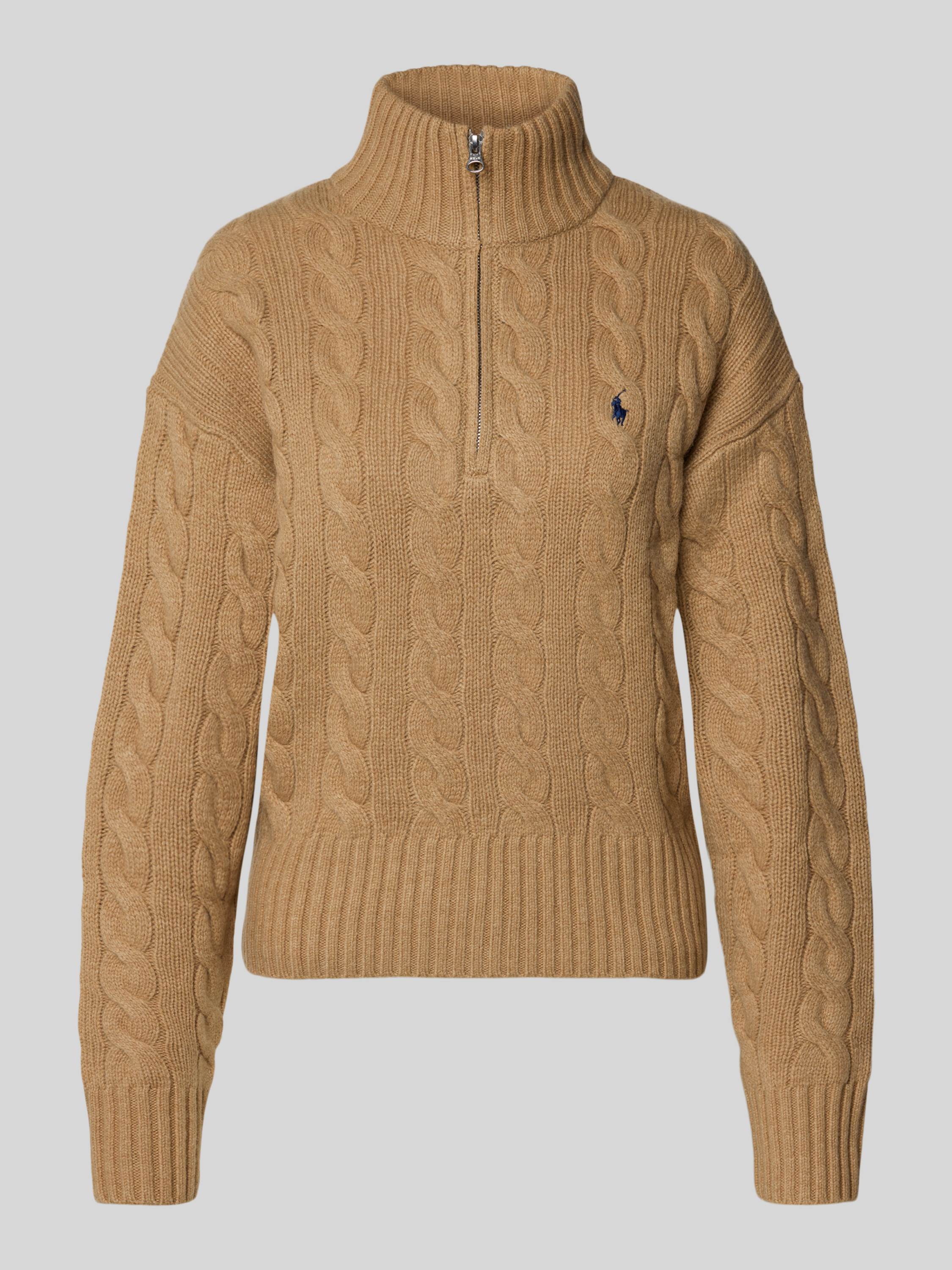 Der Damen Troyer von Polo Ralph Lauren kombiniert einen geraden Schnitt mit einem klassischen Zopfmuster und wirkt durch den hohen Woll-Mix mit Kaschmir-Anteil besonders weich. Der markante Troyer-Kragen sorgt für eine angenehme Passform, während dezentes Logo-Stitching das Design abrundet. So entsteht ein vielseitiges Kleidungsstück, das Komfort und dezente Eleganz miteinander verbindet.