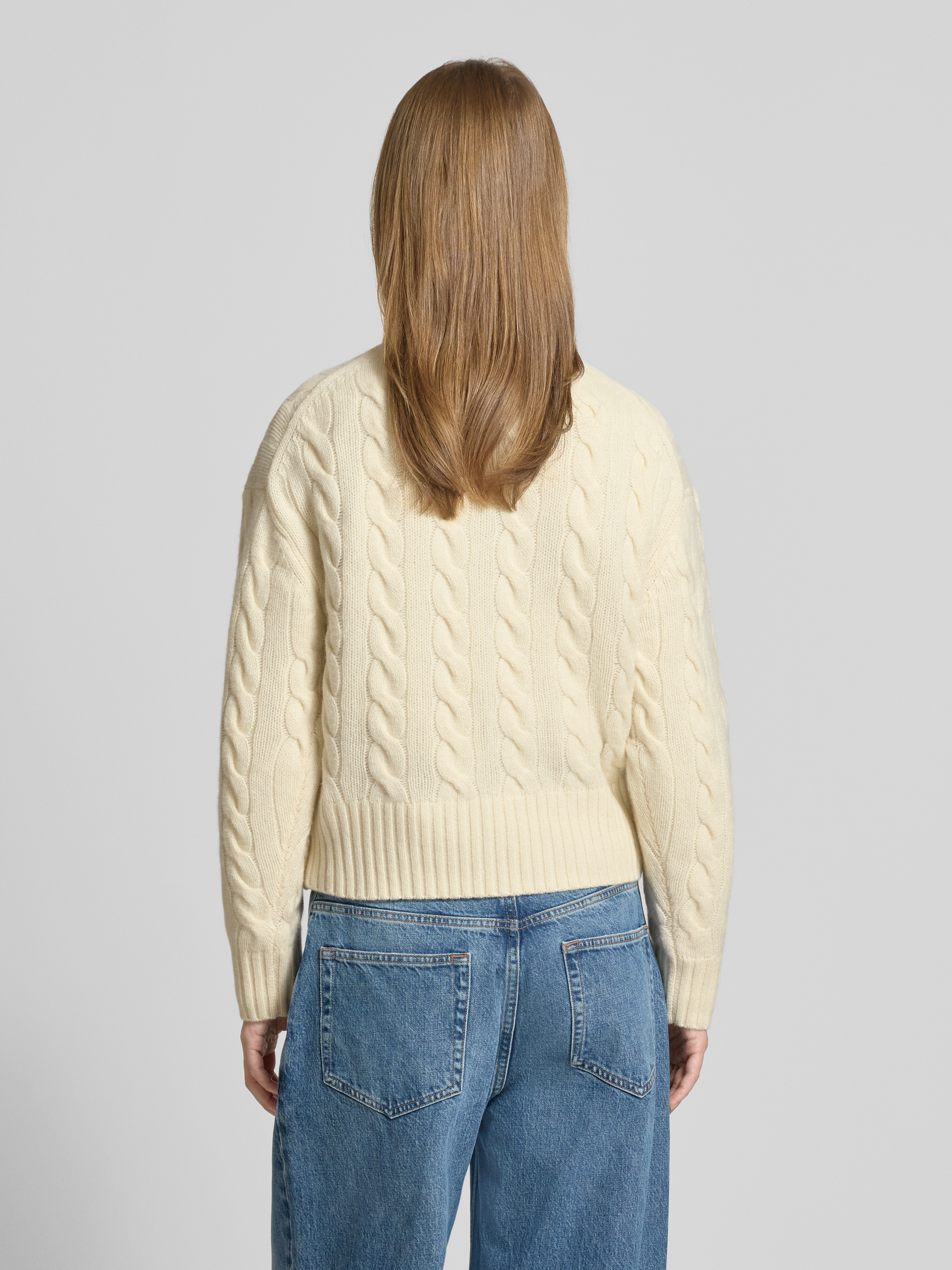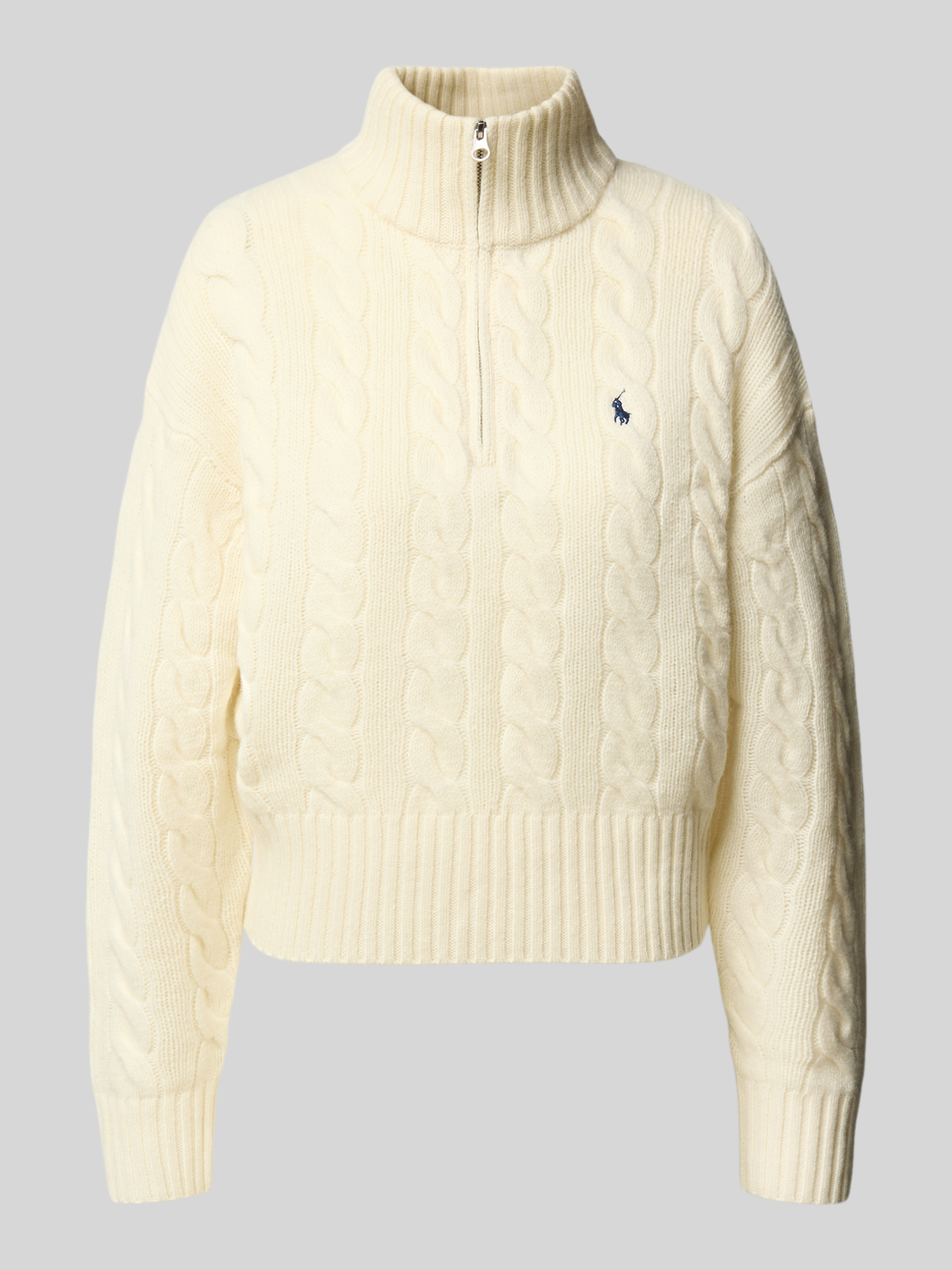Der Damen Troyer von Polo Ralph Lauren kombiniert einen geraden Schnitt mit einem klassischen Zopfmuster und wirkt durch den hohen Woll-Mix mit Kaschmir-Anteil besonders weich. Der markante Troyer-Kragen sorgt für eine angenehme Passform, während dezentes Logo-Stitching das Design abrundet. So entsteht ein vielseitiges Kleidungsstück, das Komfort und dezente Eleganz miteinander verbindet.