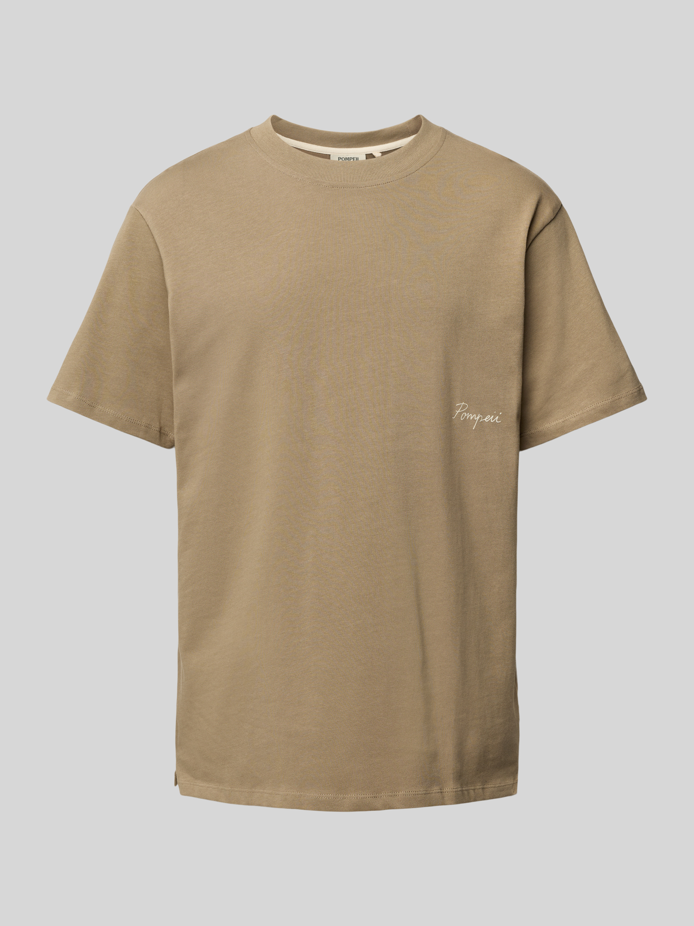 Das Herren T-Shirt von POMPEII BRAND, gefertigt aus reiner Baumwolle, überzeugt durch seinen Regular Fit, der sich angenehm an den Körper anpasst. Der gerippte Rundhalsausschnitt bietet zusätzlichen Tragekomfort. Ein markanter Label-Print verleiht dem T-Shirt eine moderne Note.