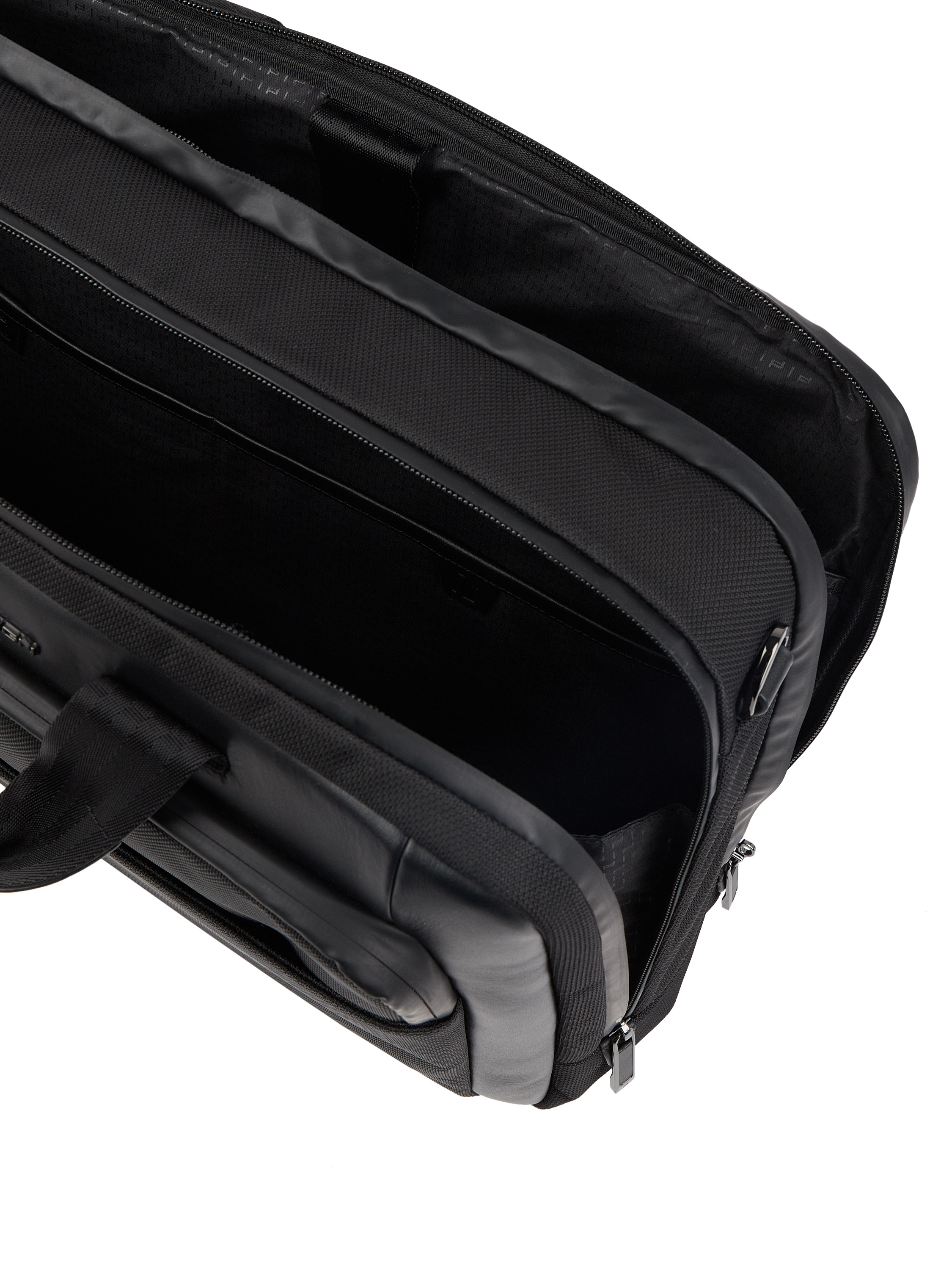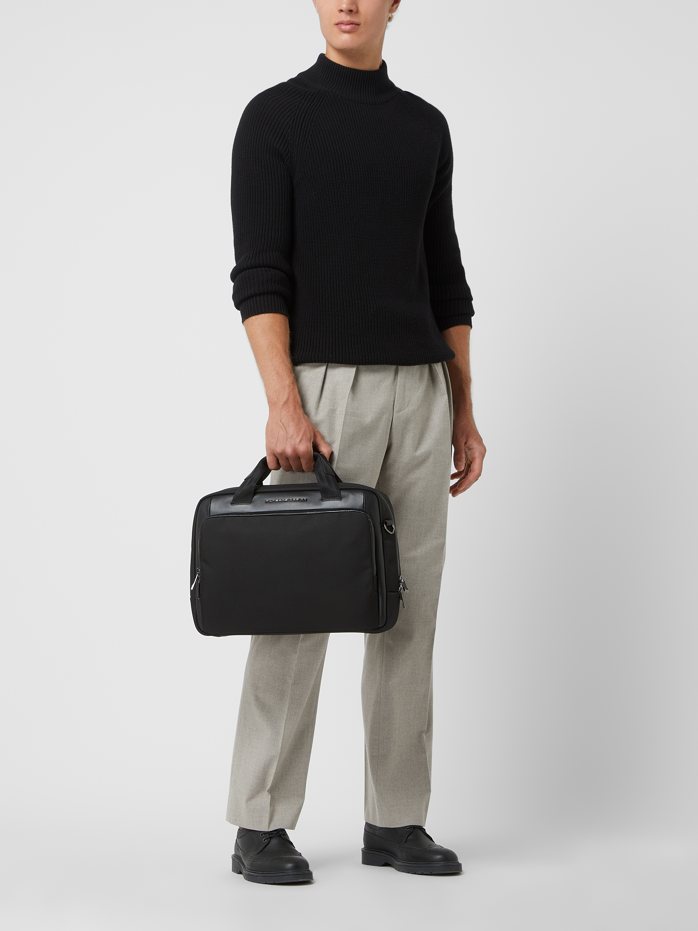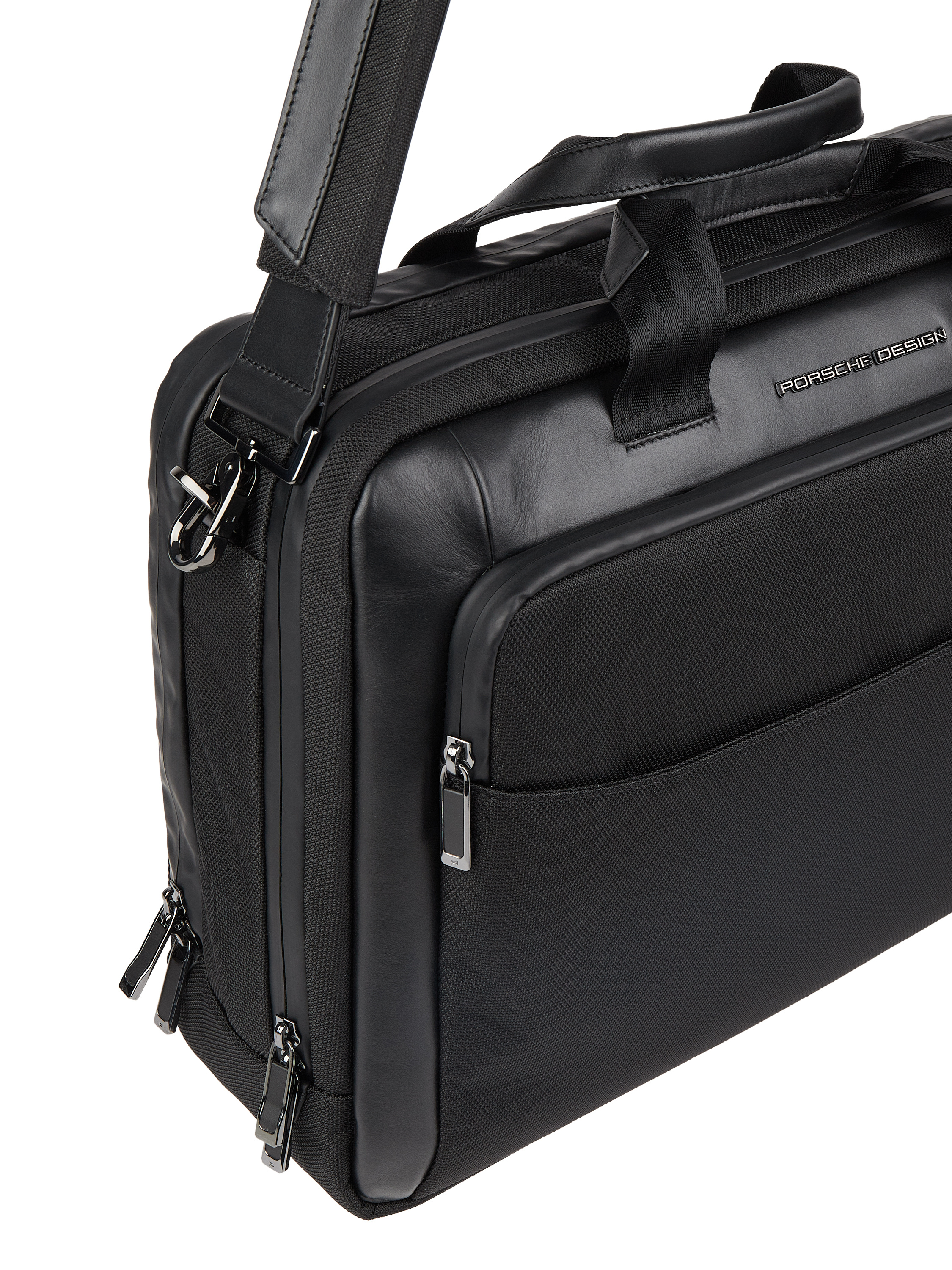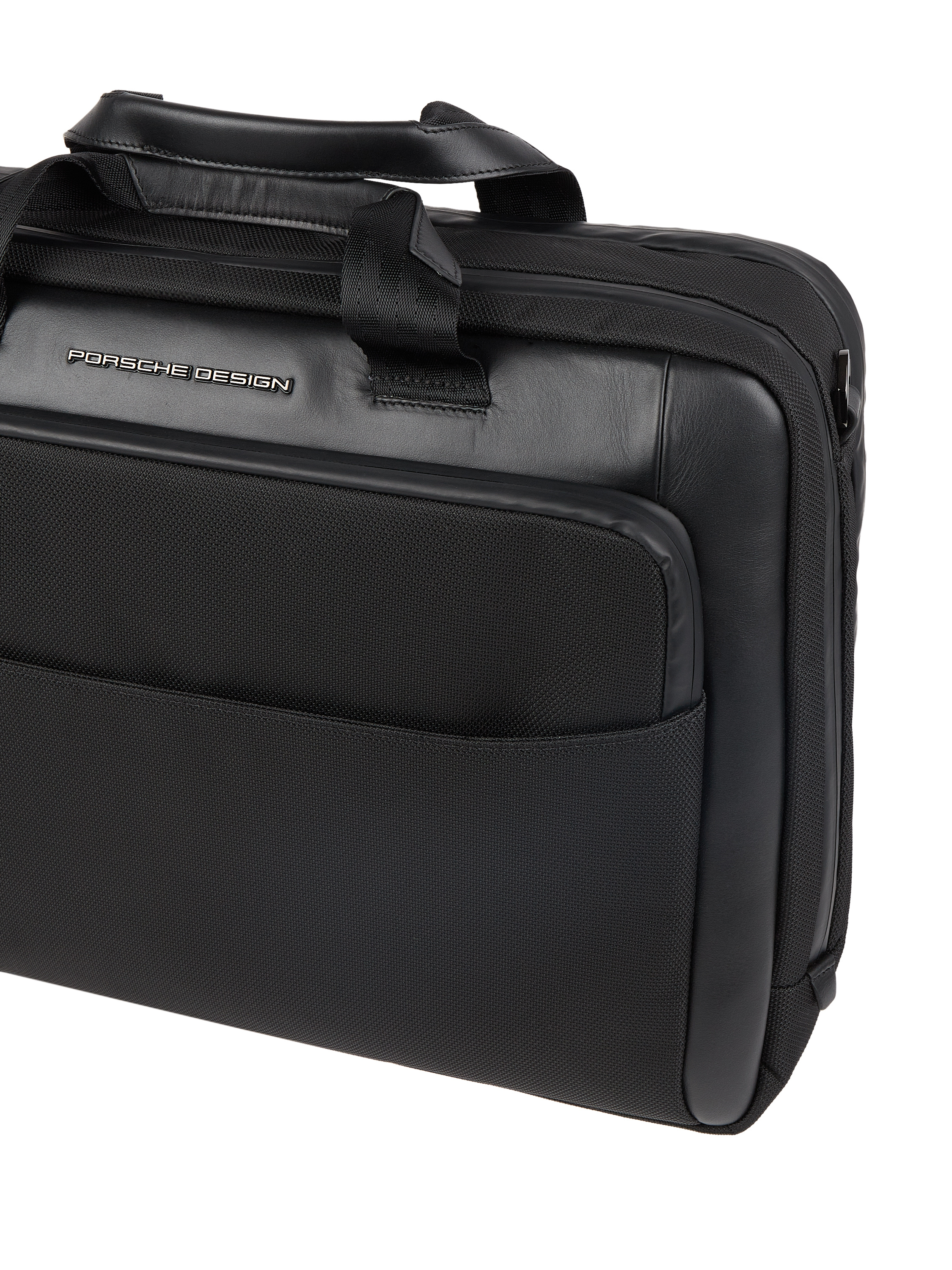 Die elegante Laptoptasche von Porsche Design kombiniert strapazierfähiges Material mit edlen Lederdetails, die für einen stilvollen und robusten Auftritt sorgen. Dank abnehmbaren Schulterriemen und praktischen Tragegriffen lässt sie sich flexibel nutzen. Das gepolsterte Laptopfach schützt Geräte bis 15 Zoll zuverlässig.