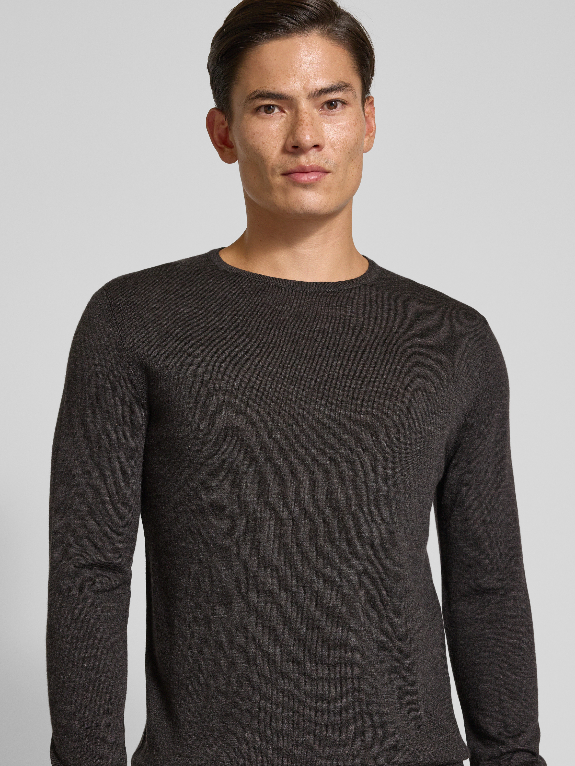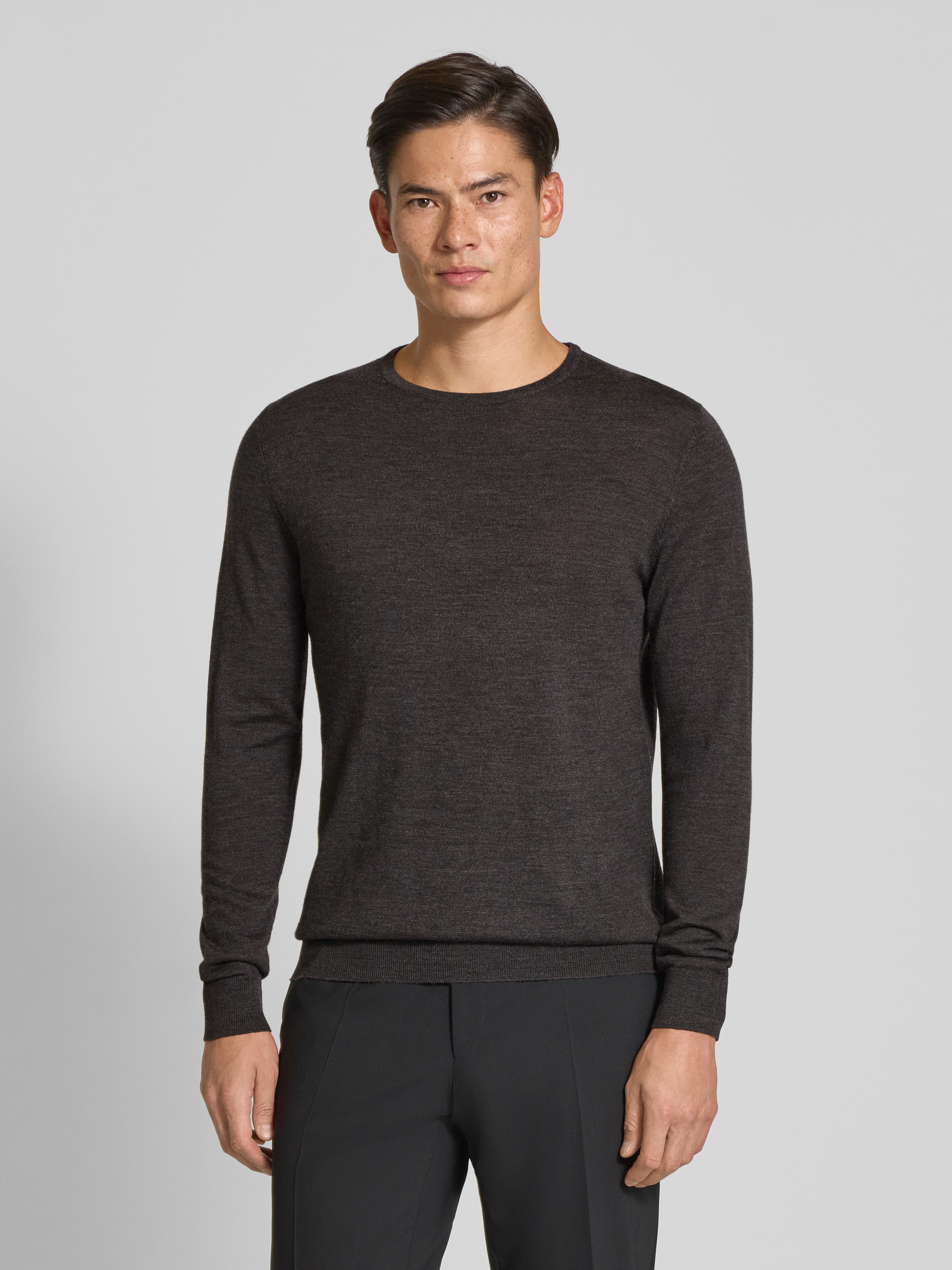 ProfuomoPullover aus Merinowolle mit Rundhalsausschnitt in schoko