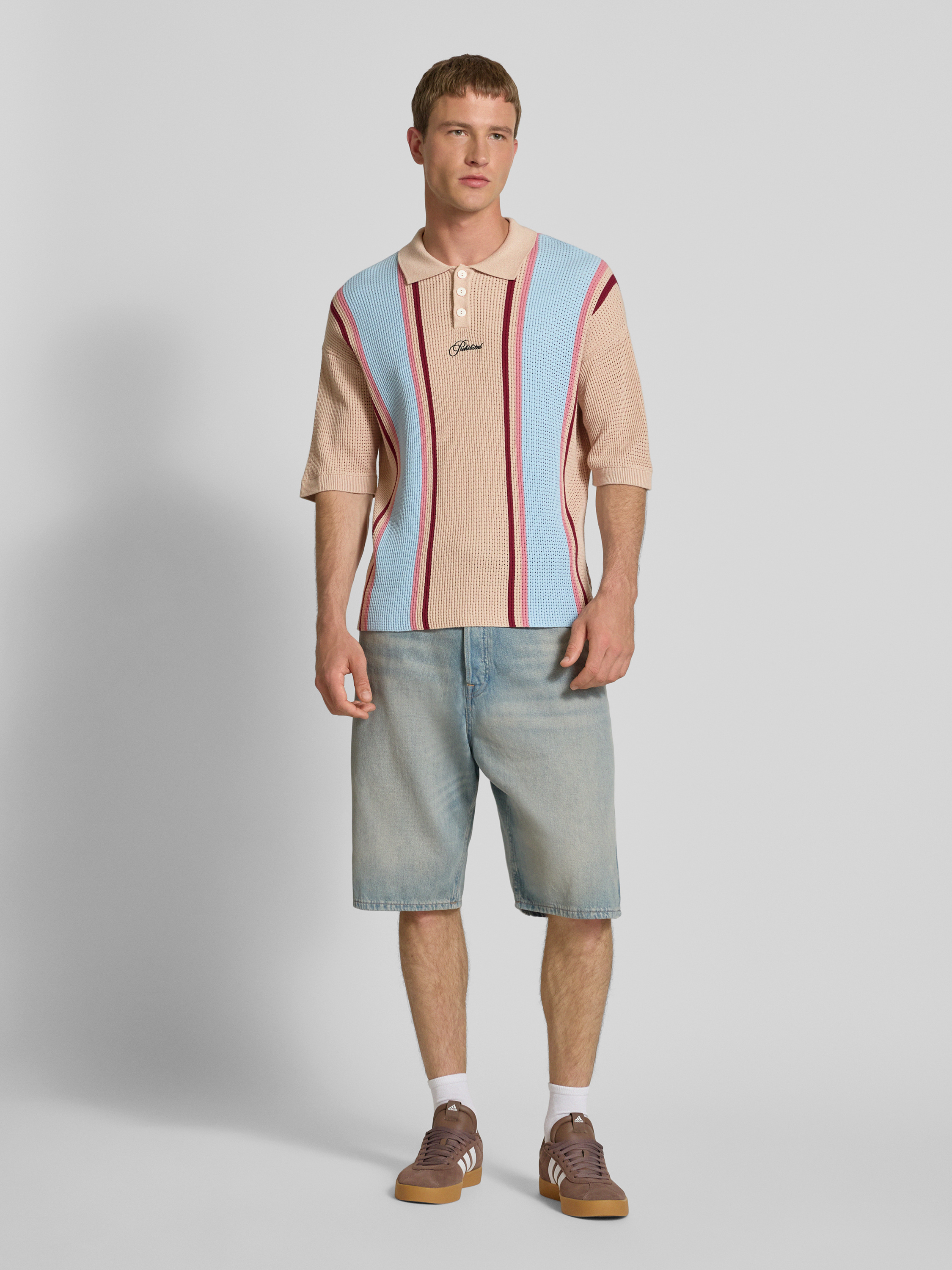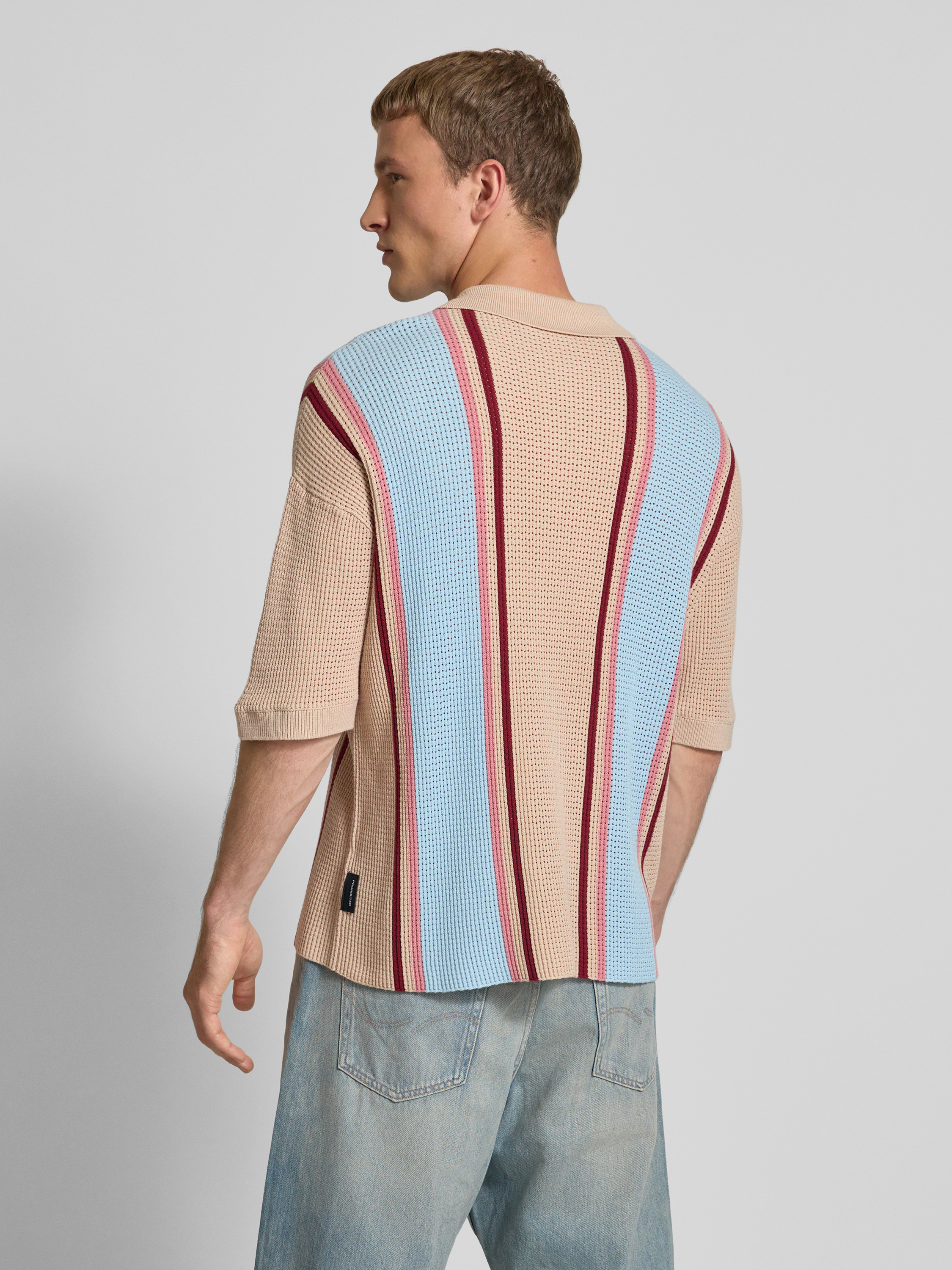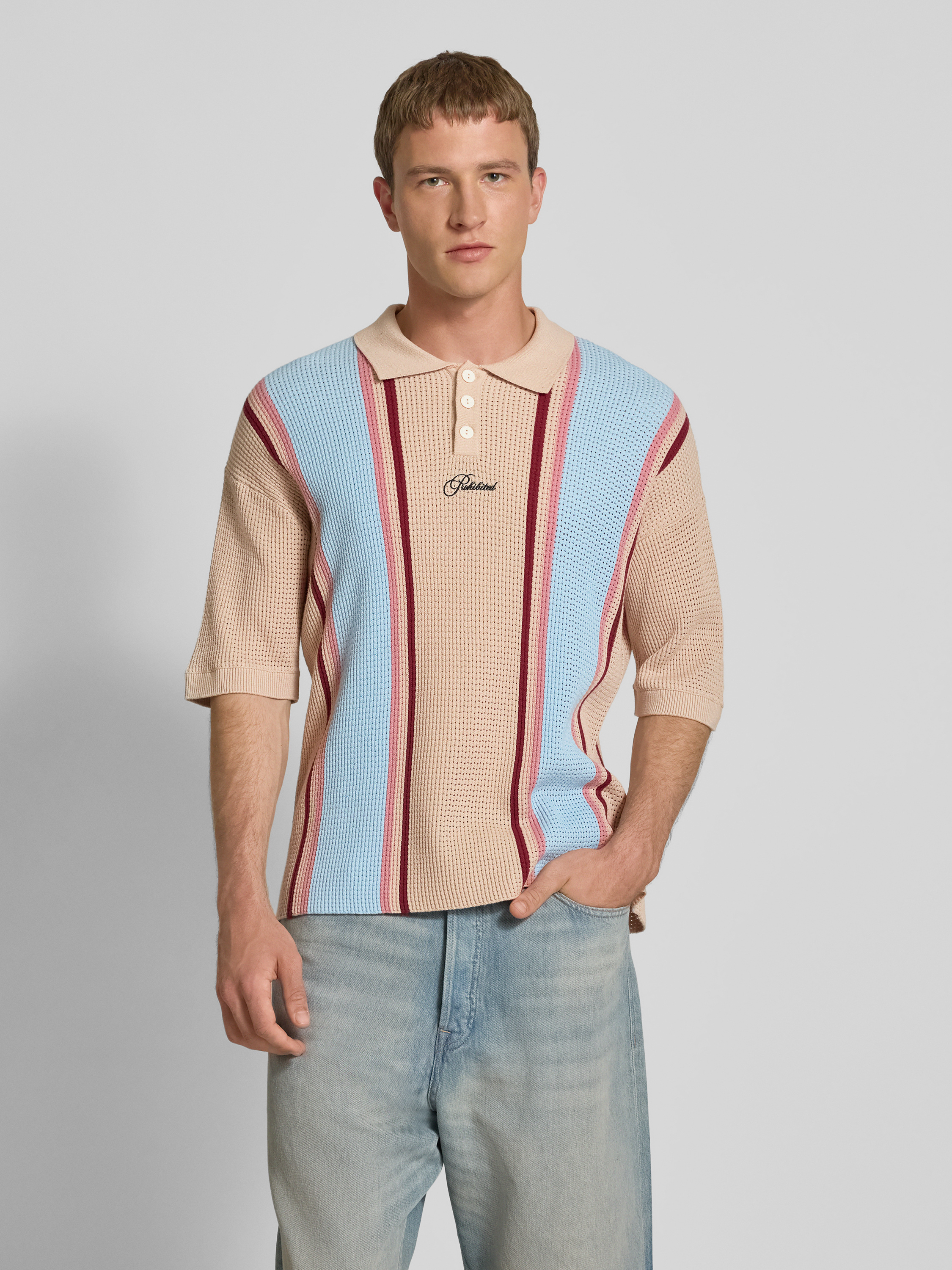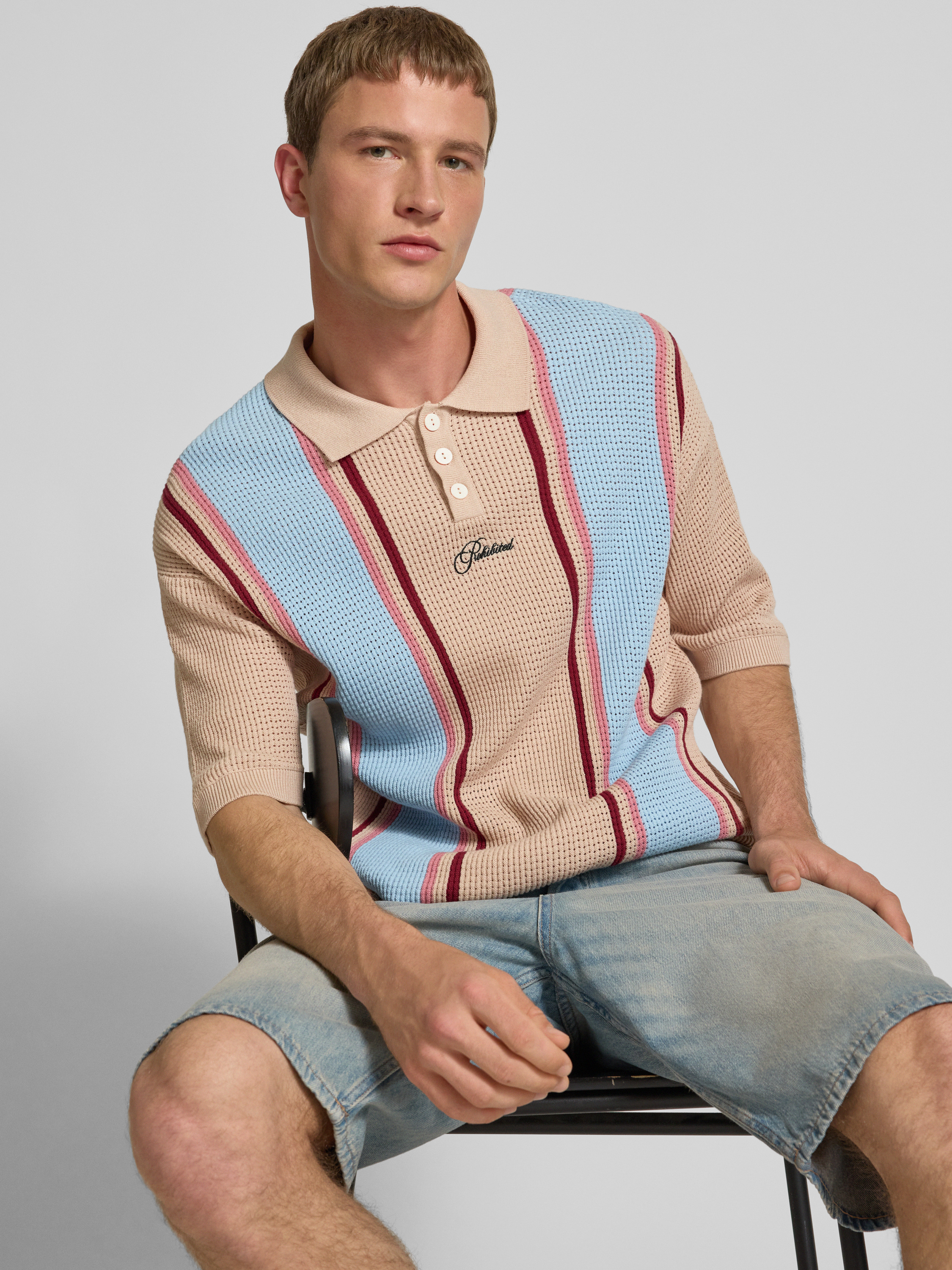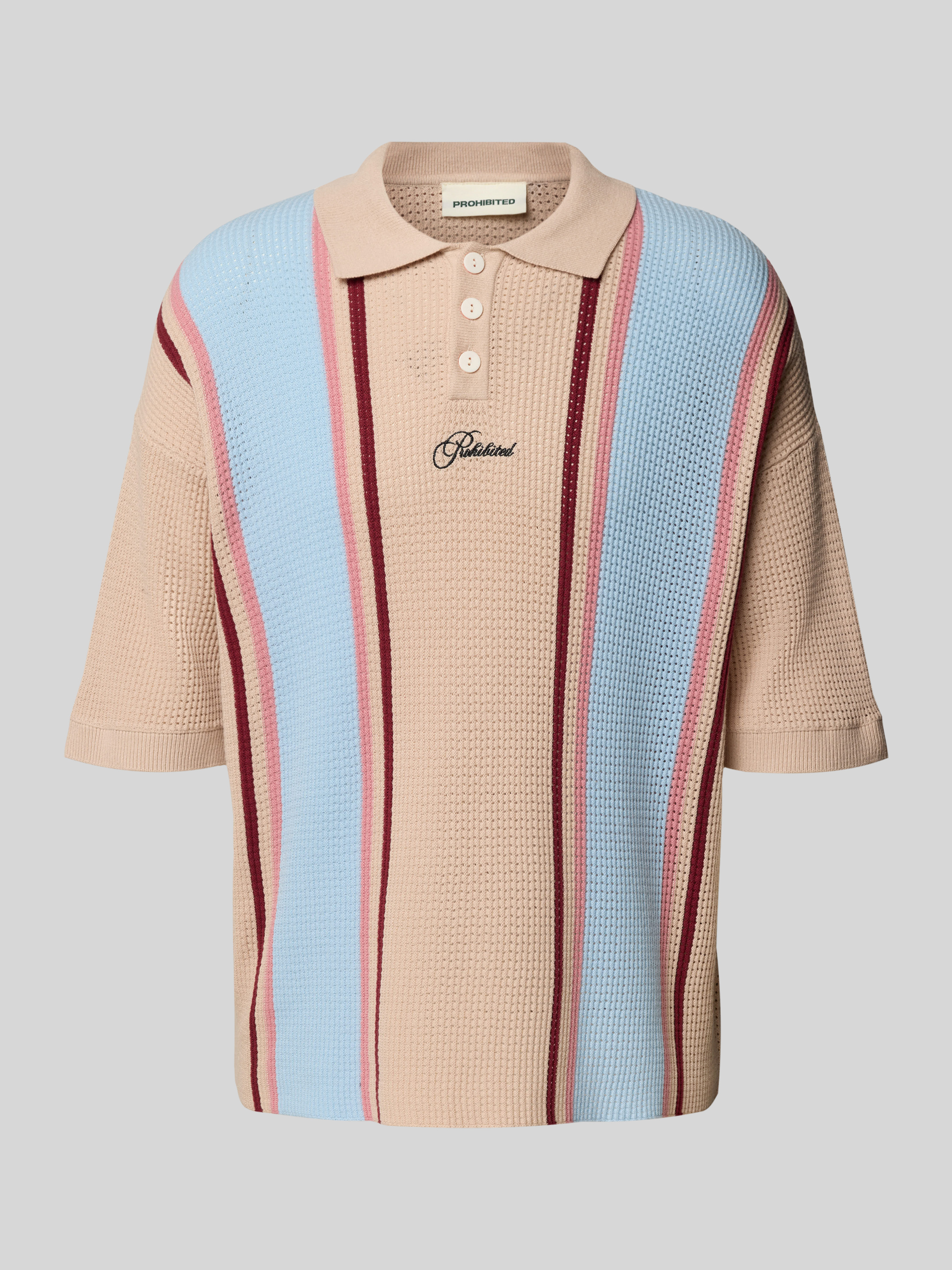 PROHIBITEDRelaxed Fit Strick-Poloshirt mit Label-Stitching in hellblau