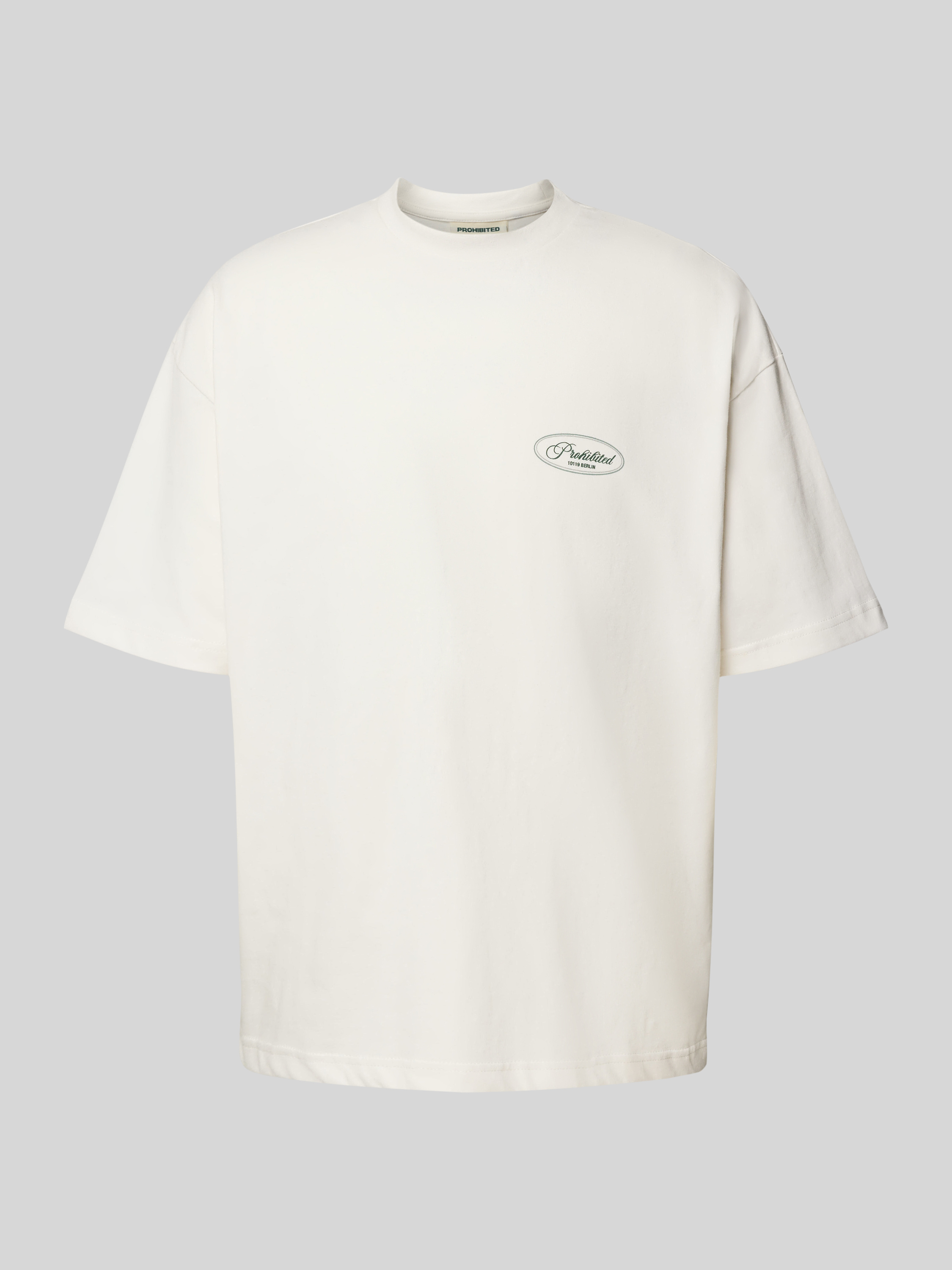 PROHIBITEDT-Shirt mit Label-Stitching und Rundhalsausschnitt in offwhite