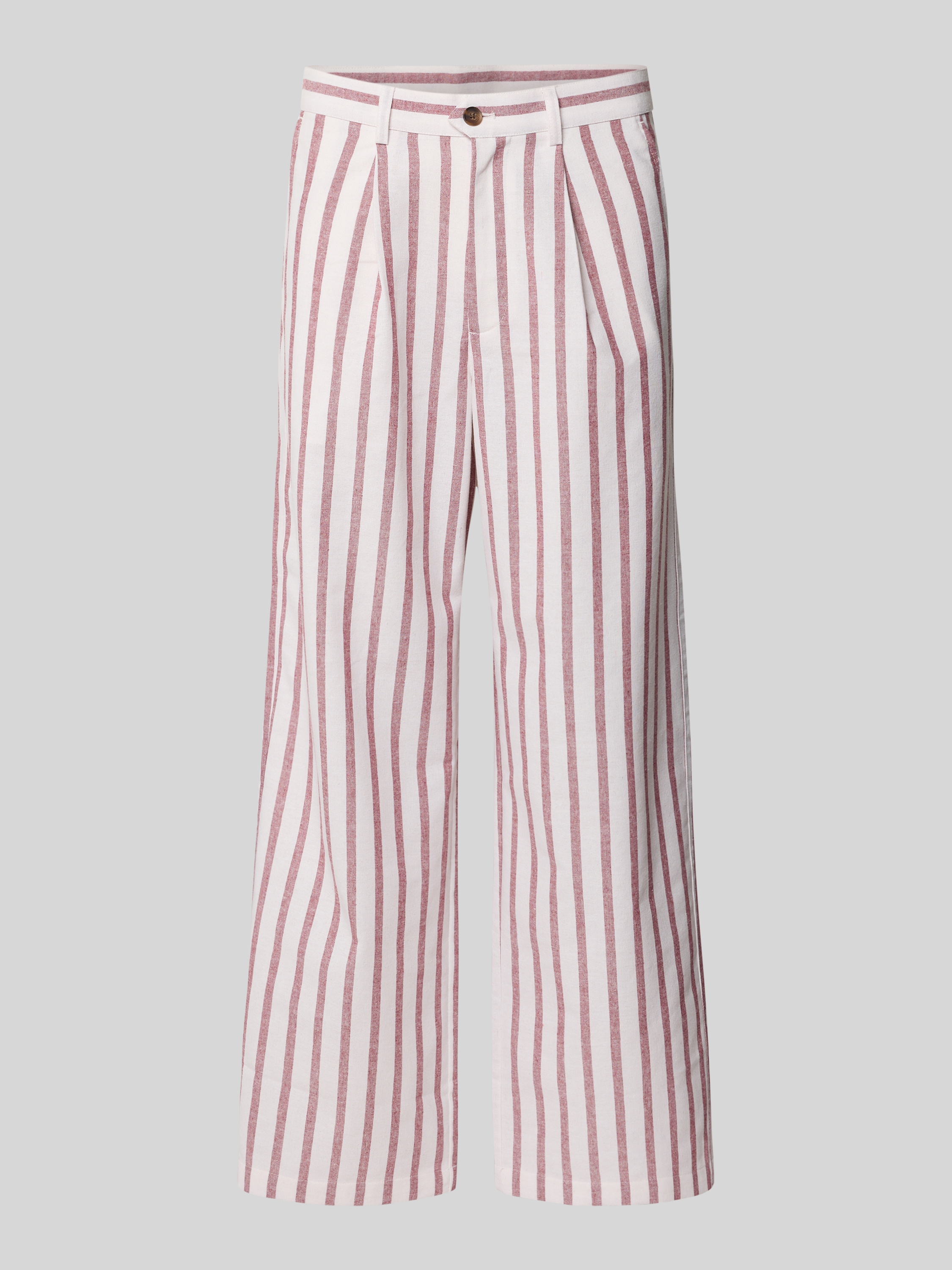 Die Wide Leg Stoffhose von PROHIBITED kombiniert einen luftigen Leinen-Anteil mit einem markanten Streifenmuster, das jedem Outfit eine elegante Note verleiht. Ihr weiter Schnitt sorgt für angenehme Bewegungsfreiheit, während die praktischen Gesäßtaschen zusätzlichen Stauraum bieten. Ideal für vielseitige Tragemöglichkeiten.