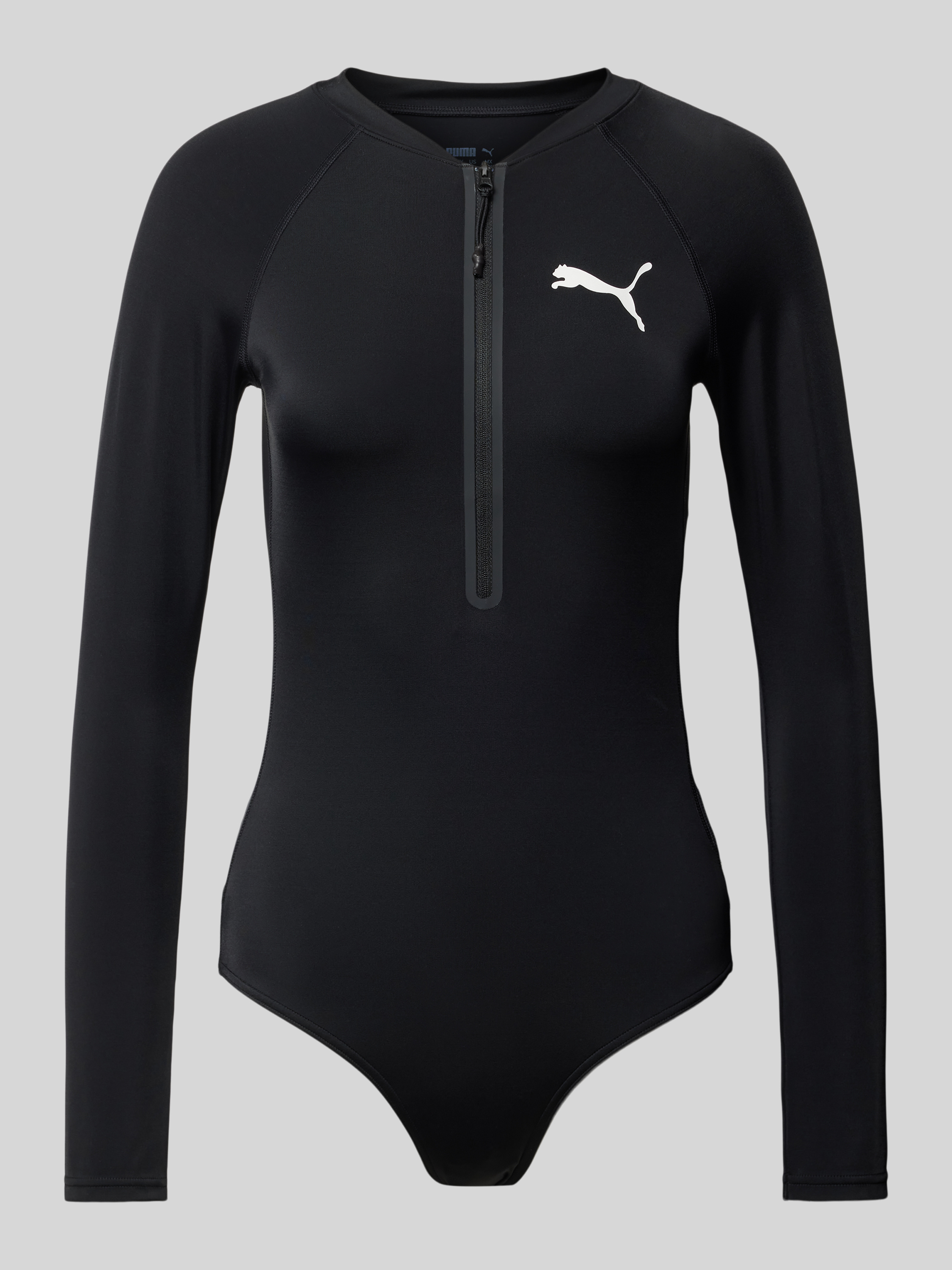 Der Badeanzug von PUMA, aus einem hochwertigen Material-Mix mit Stretch-Anteil, bietet durch seinen körpernahen Schnitt und das langärmelige Design optimalen Tragekomfort. Der eingearbeitete UV-Schutz von 50+ schützt effektiv vor Sonneneinstrahlung, während die Chlorresistenz eine lange Haltbarkeit gewährleistet.