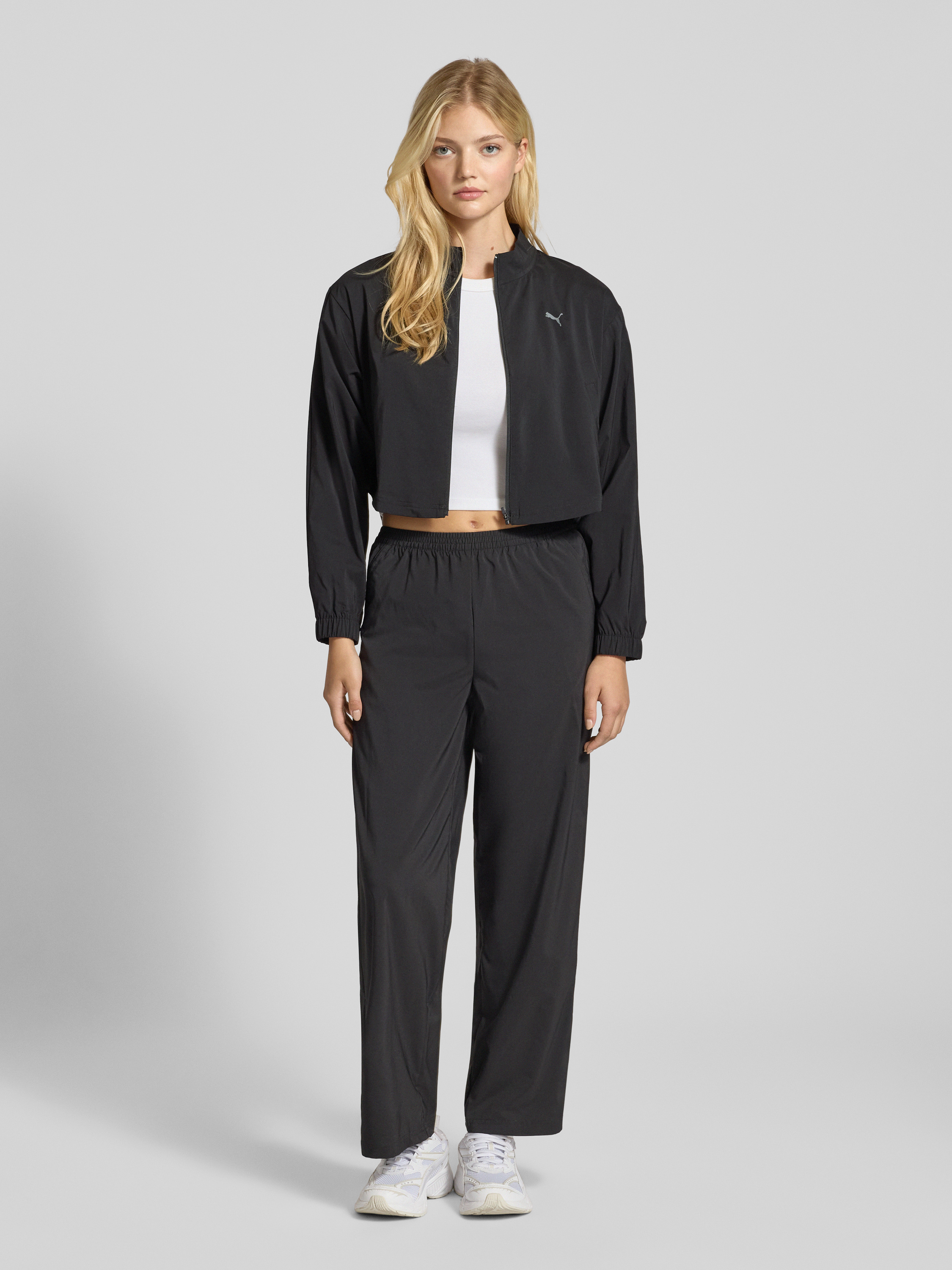 Die Damen Jacke von PUMA fällt durch ihren geraden Schnitt auf und lässt sich vielseitig kombinieren. Ein Stehkragen sorgt für angenehmen Tragekomfort, während der Logo-Print einen sportlichen Akzent setzt. So eignet sich die Jacke mit Logo-Print für entspannte Freizeitlooks.