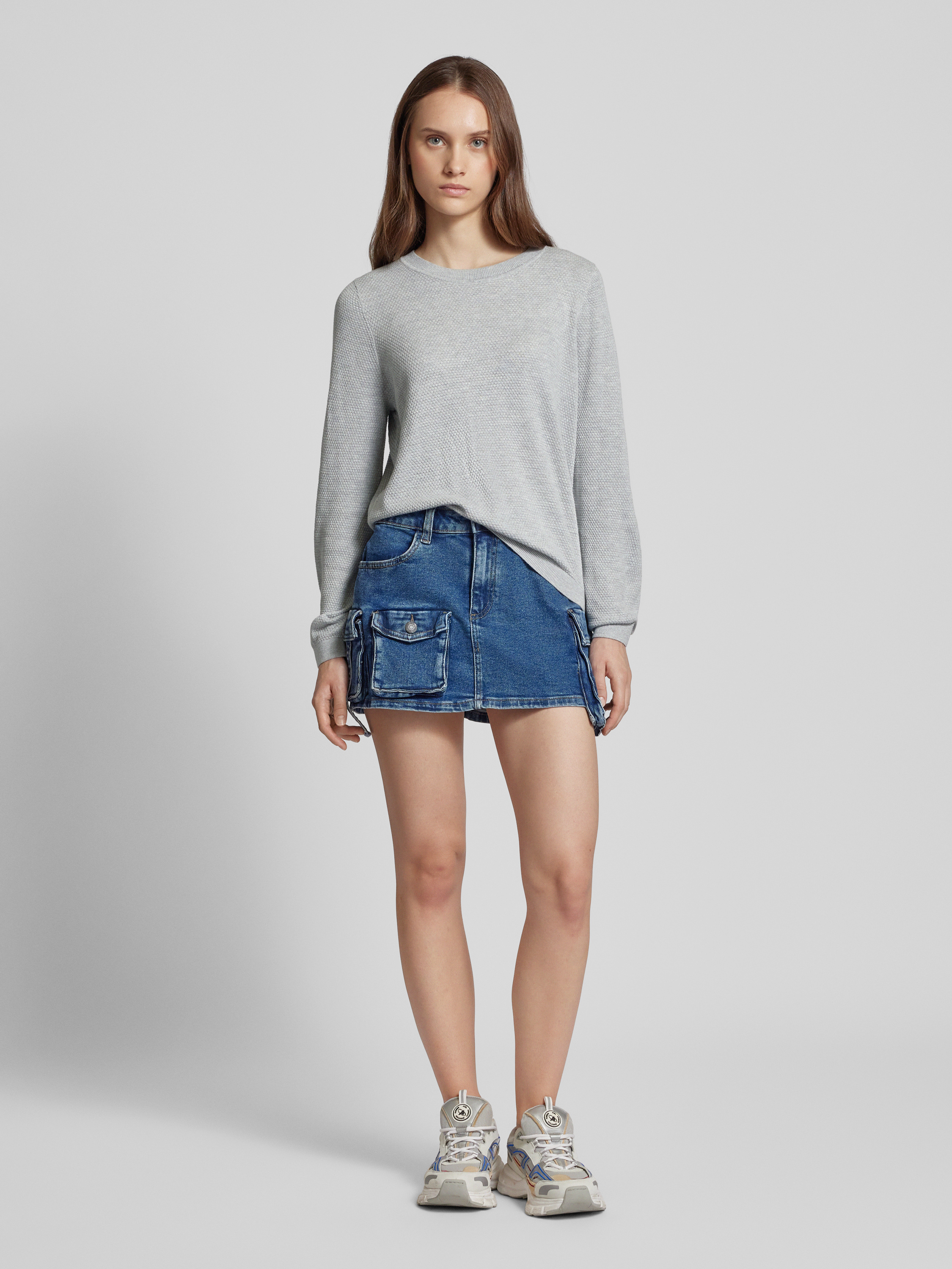 Der Strickpullover von QS by s.Oliver kombiniert einen Viskose-Baumwoll-Mix mit einem geraden Schnitt, der sich angenehm tragen lässt. Das Strukturmuster und die Puffärmel verleihen dem Pullover einen besonderen Charme. Der Rundhalsausschnitt sorgt für eine zeitlose Silhouette.