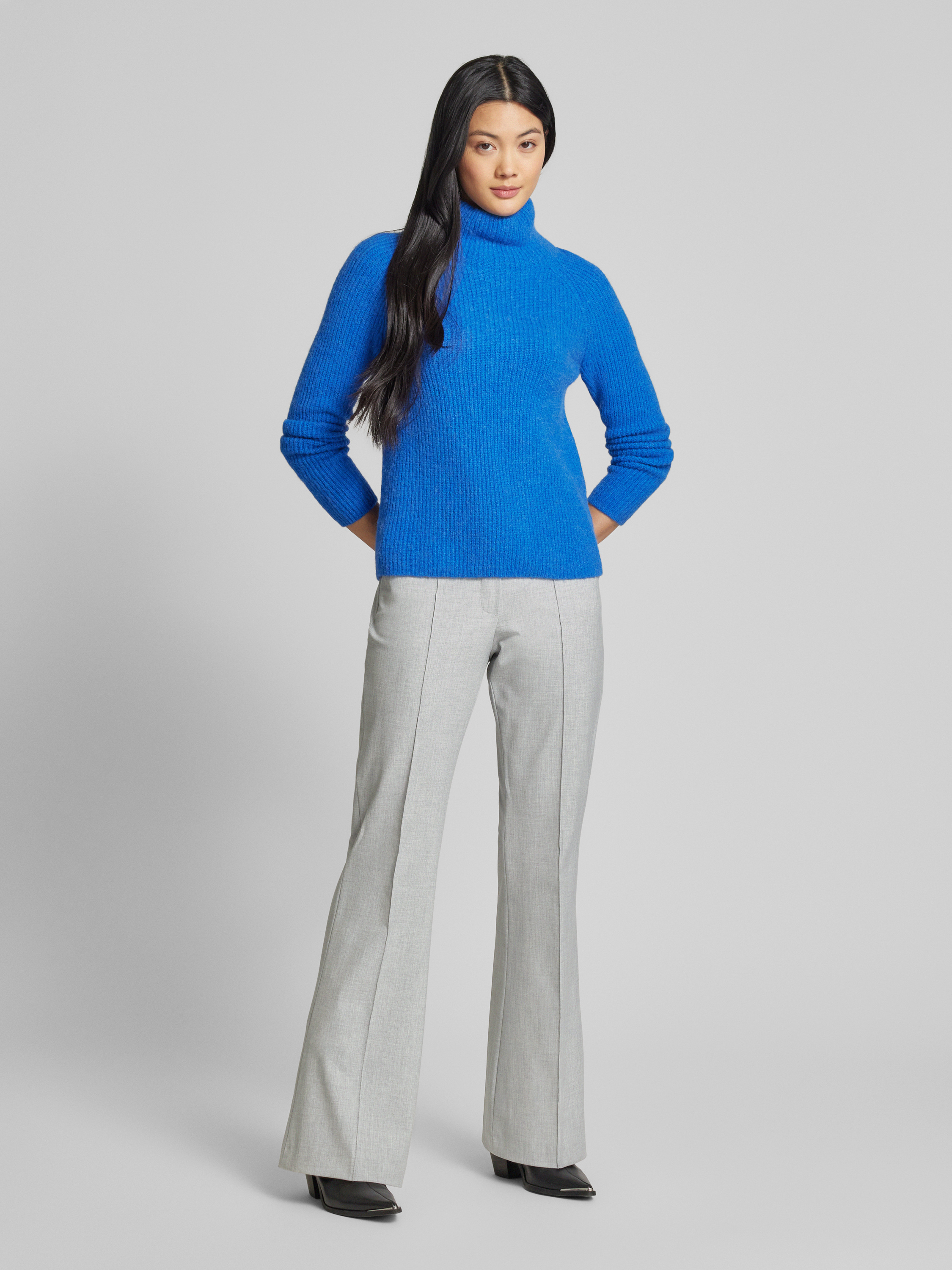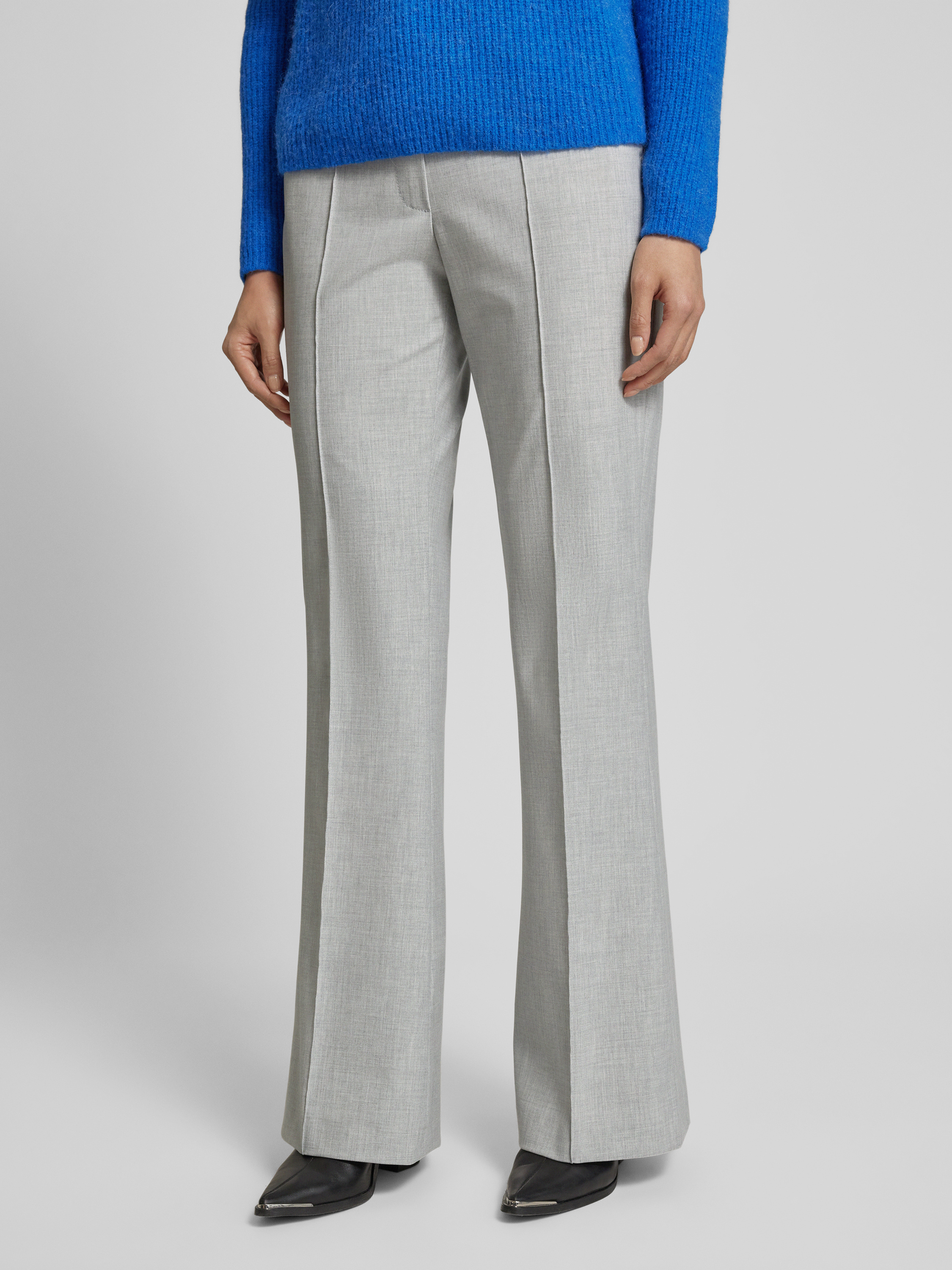 Raffaello RossiFlared Stoffhose mit Ziernähte und Viskose-Anteil Modell 'DORO' in hellgrau melange