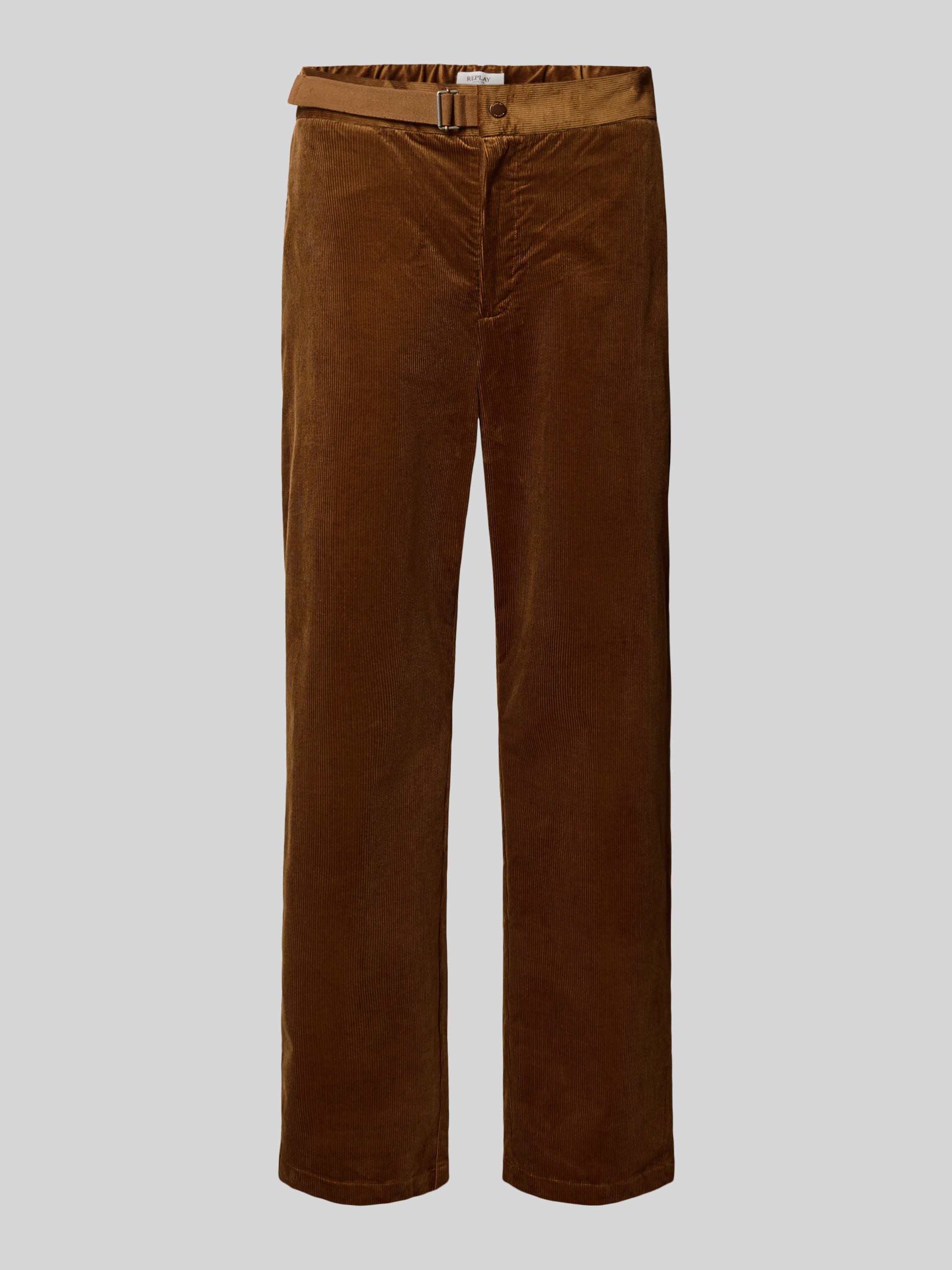 Tapered Fit Cordhose mit Gürtel in cognac