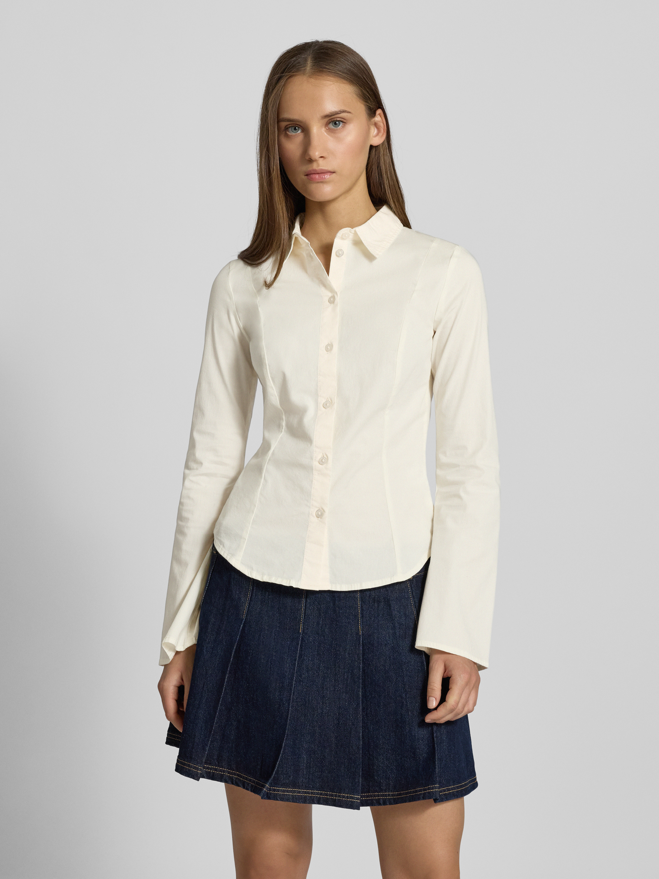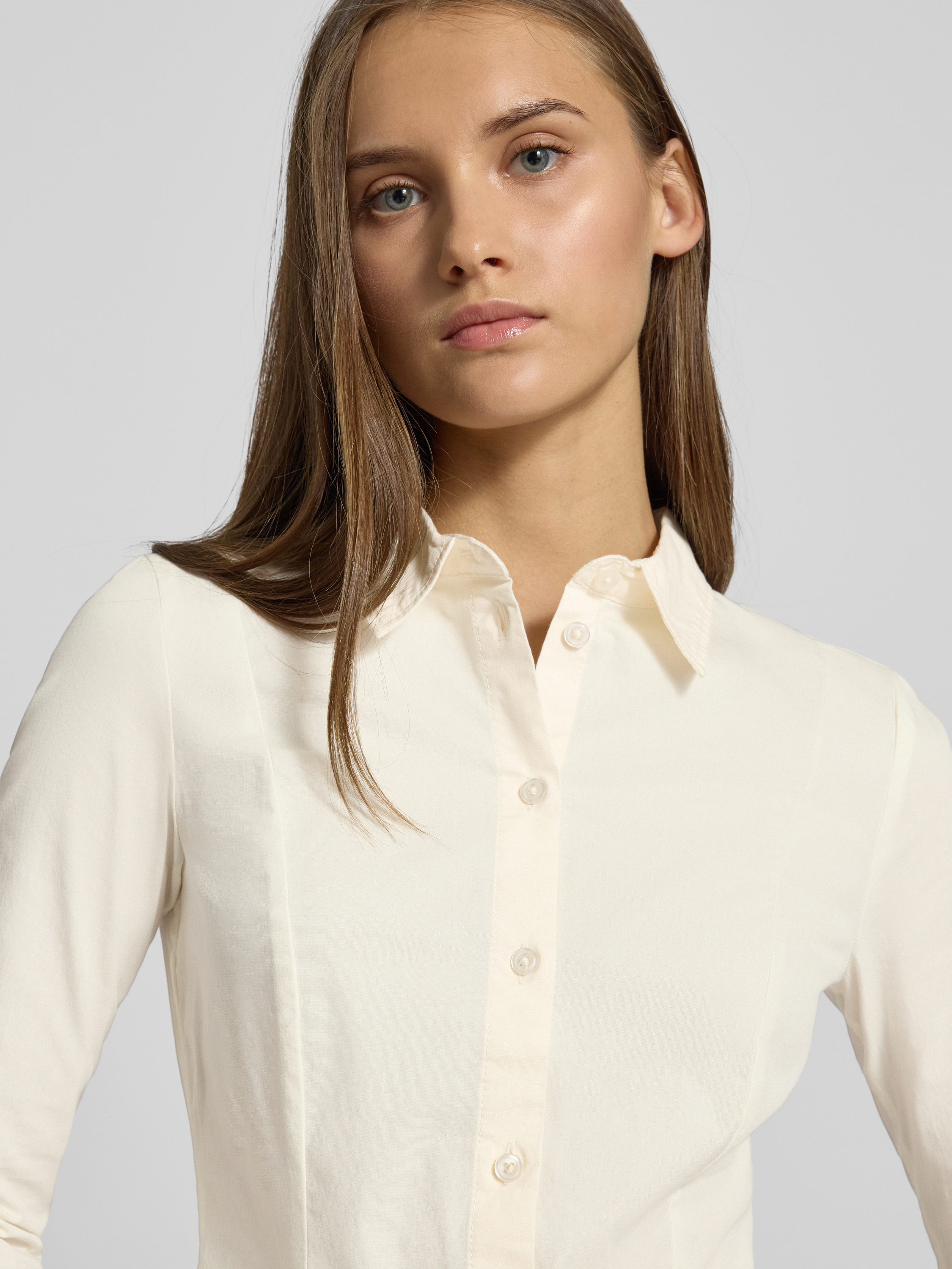 Die Damen Hemdbluse von Review verbindet einen lockeren Schnitt mit dem klassischen Hemdblusenkragen, wodurch Bewegungsfreiheit erhalten bleibt und gleichzeitig ein strukturierter Look entsteht. Durch den Baumwoll-Elasthan-Mix liegt die Hemdbluse mit Knopfleiste angenehm auf der Haut und lässt sich vielseitig kombinieren. Mit ihrer unkomplizierten Passform eignet sie sich sowohl für entspannte Anlässe als auch für den Alltag.