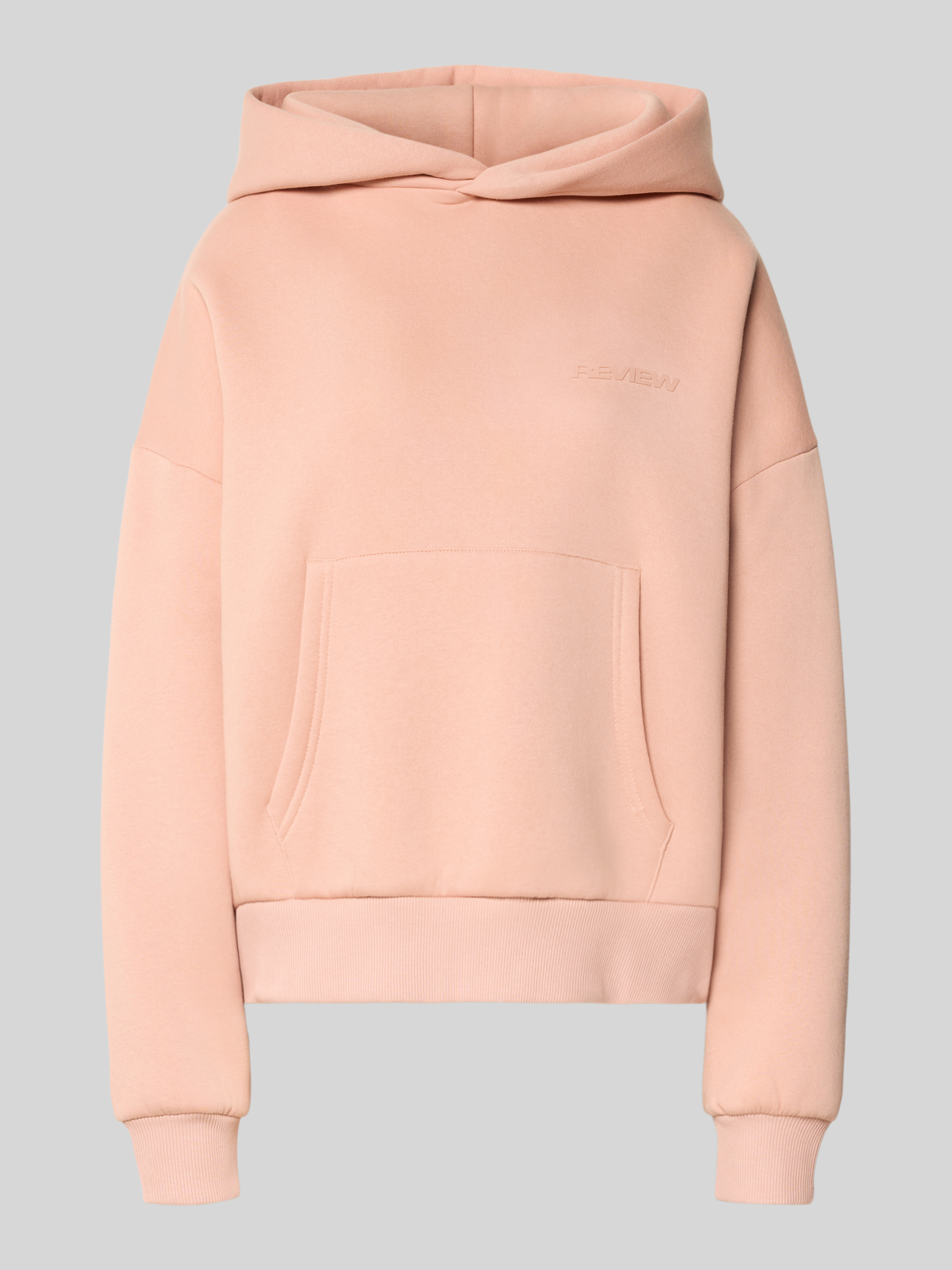 ReviewHoodie mit überschnittenen Schultern und Känguru-Tasche in altrosa